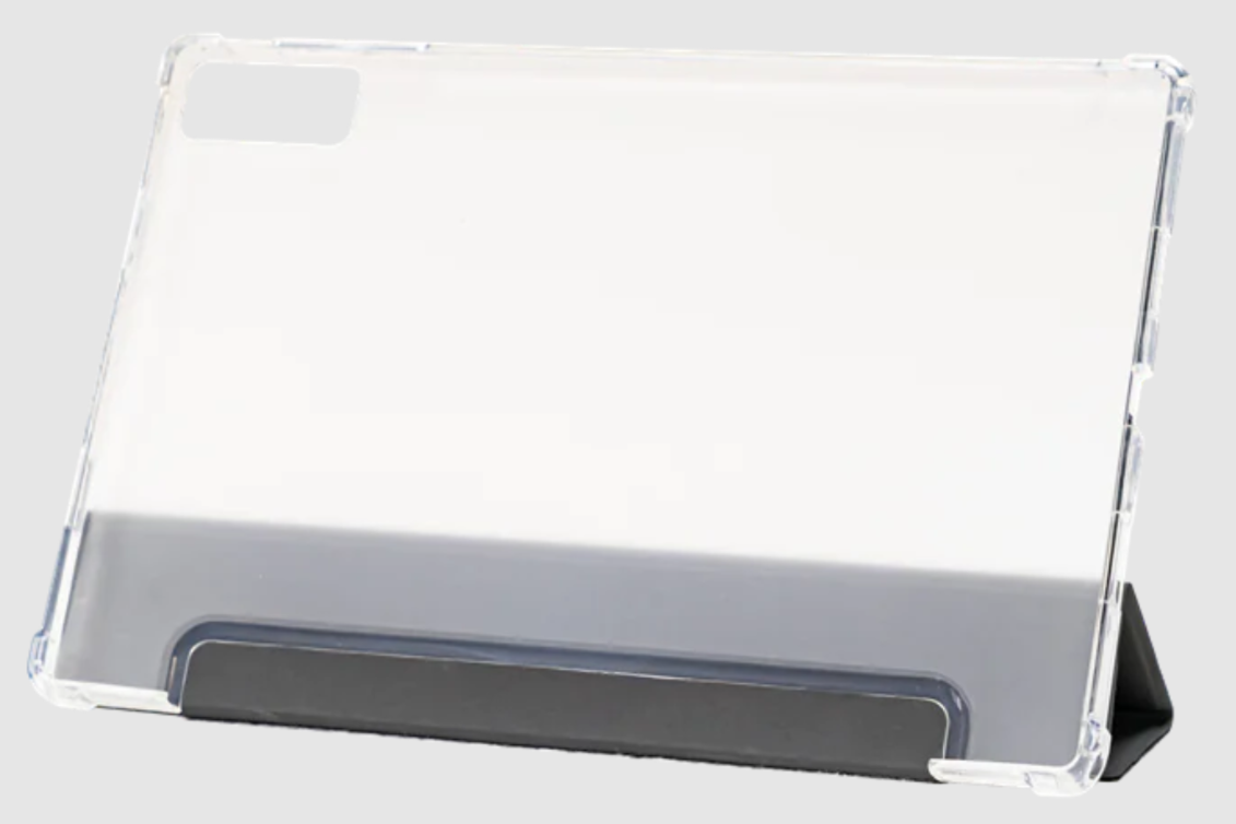 Das Teclast T45HD hüllt sich in einen Metall-Unibody und bringt 505 Gramm auf die Waage. Mit dem 10,51 Zoll großem Display misst das Tablet 247 x 162 x 7,5 Millimeter. Hinten sind die prägnante Dual-Kamera und der Kontraststreifen auffällig platziert. Am Rahmen finden sich die drei typischen Android-Buttons, USB-C-Anschluss und 3,5mm Kopfhöreranschluss sowie zwei Lautsprecher. Teclast hat für das T45 HD auch eine Hülle mit Standfunktion im Angebot.
