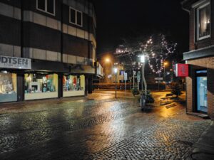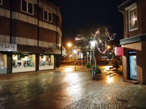 Für Nachtaufnahmen gibt es einen speziellen Modus in der Kamera-App, den ich dringend empfehle. Im ersten Vergleichsbild sieht man die Unterschiede deutlich. Überraschend gut schlägt sich das T-Phone 3 in der Nacht. Der Dynamikumfang könnte größer sein, aber es sind Details zu erkennen und Bildrauschen wird gut vermieden. Die Schärfe ist der Preisklasse angemessen. Der Fokus wurde auch nachts gut gefunden und die Farben gehen in Ordnung.