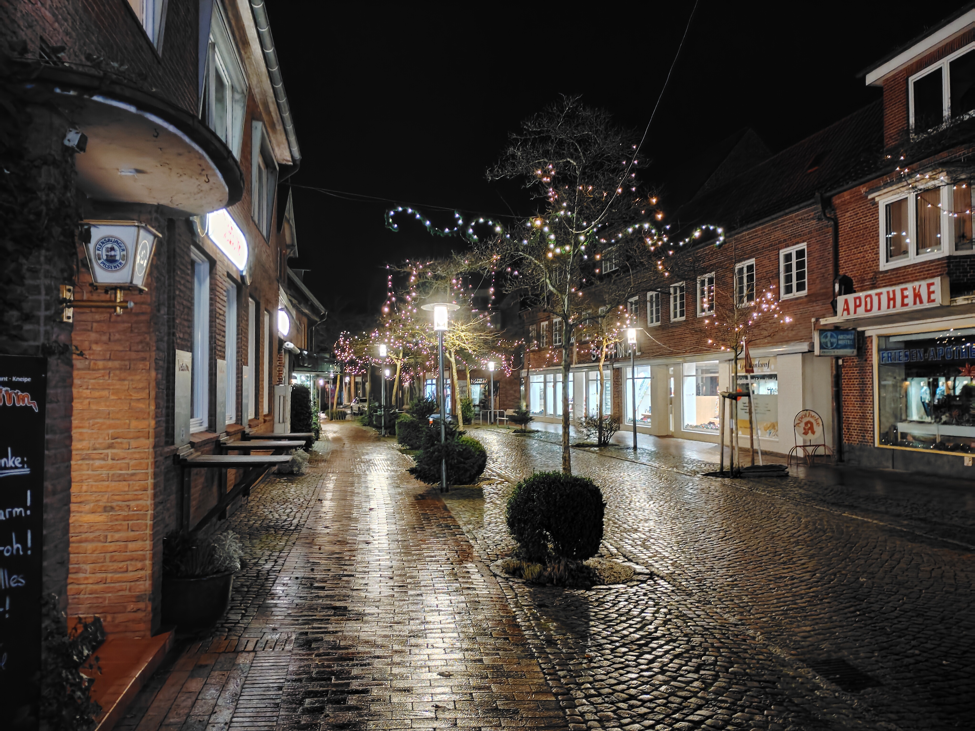 Für Nachtaufnahmen gibt es einen speziellen Modus in der Kamera-App, den ich dringend empfehle. Im ersten Vergleichsbild sieht man die Unterschiede deutlich. Überraschend gut schlägt sich das T-Phone 3 in der Nacht. Der Dynamikumfang könnte größer sein, aber es sind Details zu erkennen und Bildrauschen wird gut vermieden. Die Schärfe ist der Preisklasse angemessen. Der Fokus wurde auch nachts gut gefunden und die Farben gehen in Ordnung.
