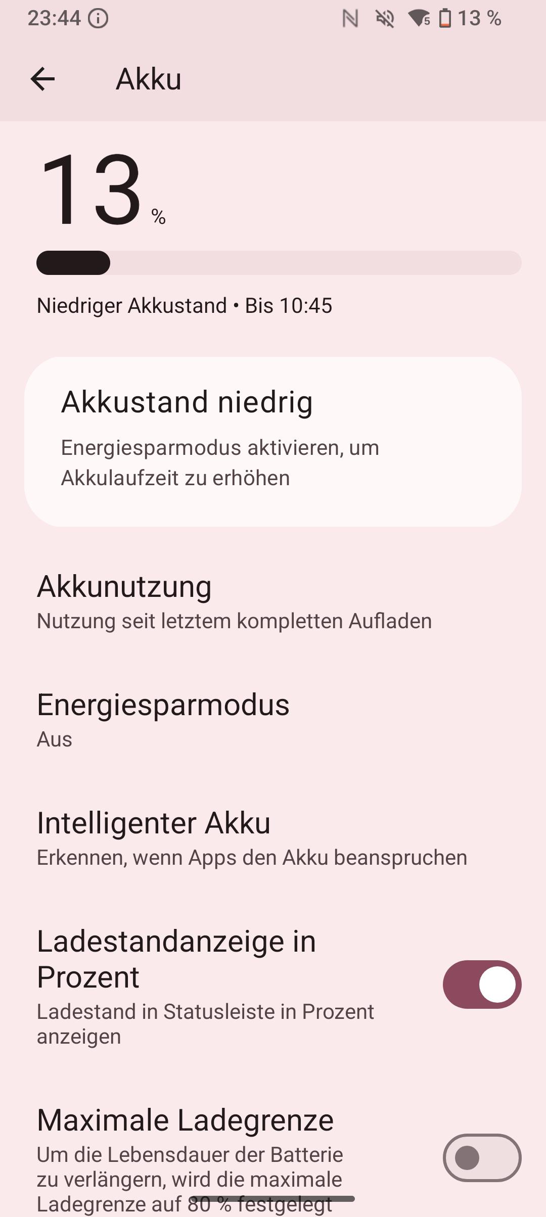Im Alltag bewegt sich die Helligkeit der Anzeige immer nahe den 100% und verbraucht daher viel Energie. Der Energiespeicher reicht zwar aus, um sicher über den Tag zu kommen – mehr jedoch nicht. Auch der Stand-by-Verbrauch ist mit 8% über Nacht relativ hoch. Ein Samsung Galaxy A17 5G ist hier allerdings auch nicht besser.
