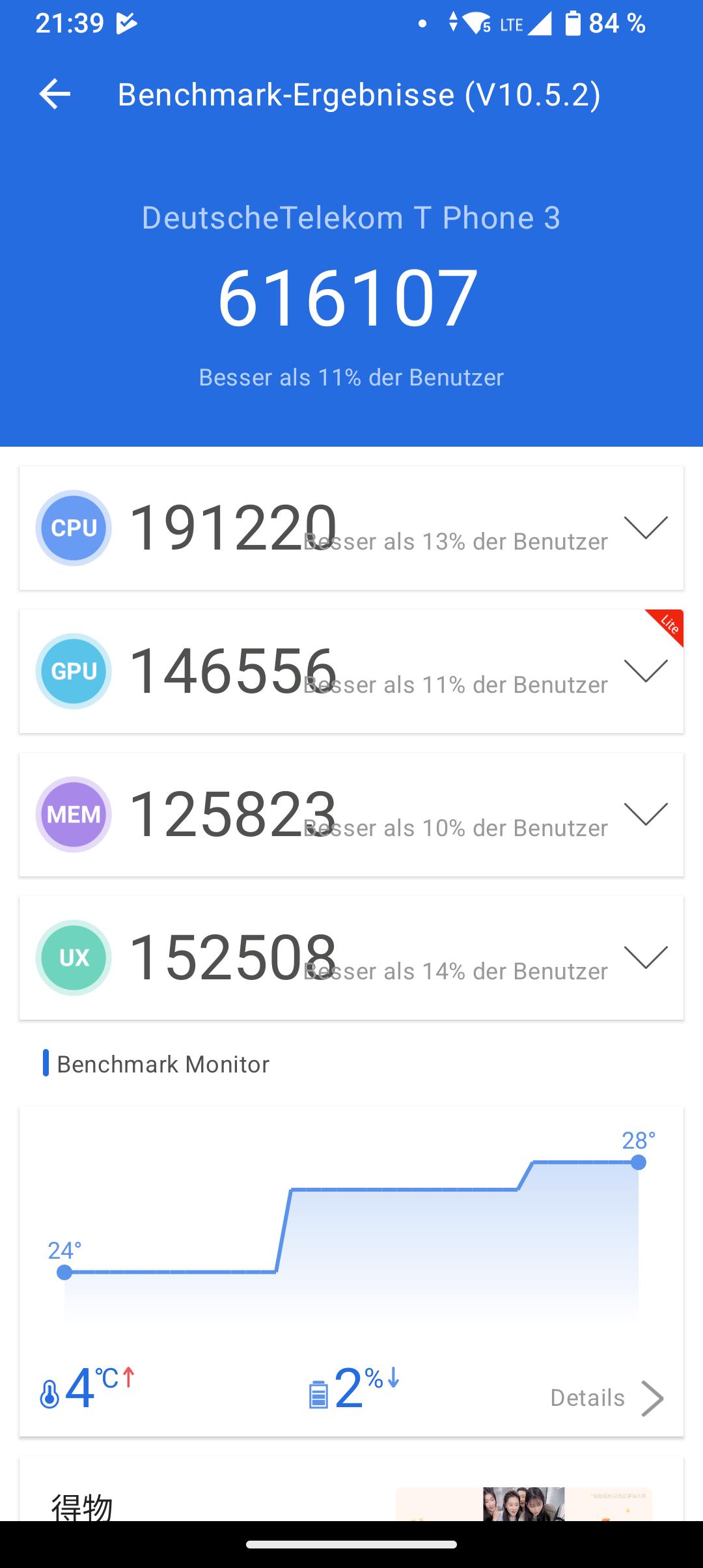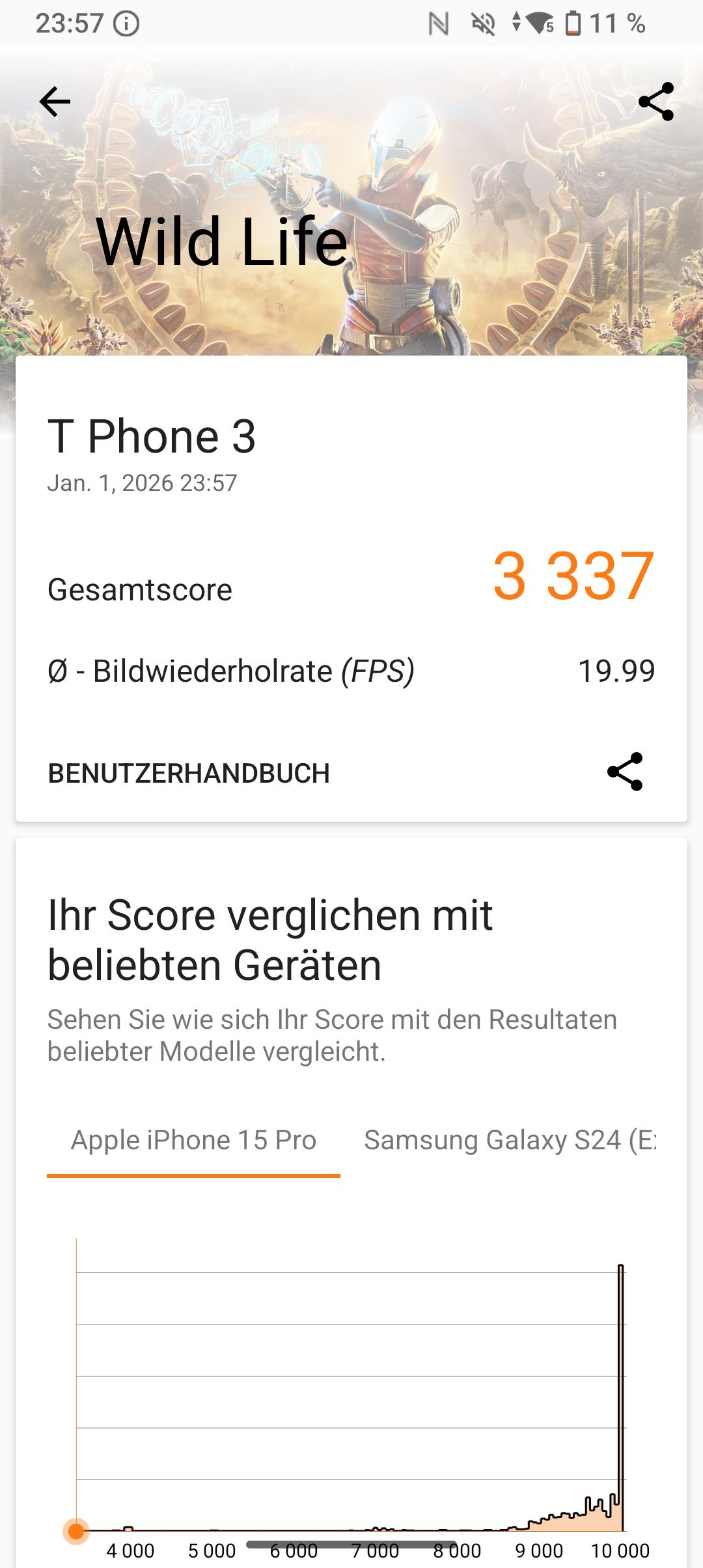 Als einzige Option sind 6GB RAM und 128GB UFS 2.2 Speicher erhältlich. Zumindest lässt sich der Festspeicher mit einer Micro-SD-Speicherkarte erweitern. Die Bedienung ist recht flüssig und die verbaute Adreno 710 als GPU reicht für einfache Spiele aus. Im Vergleich zur Konkurrenz steht das T-Phone 3 als Einstiegs-Smartphone gut da und liegt auf einem Niveau mit dem Redmi Note 15 5G.