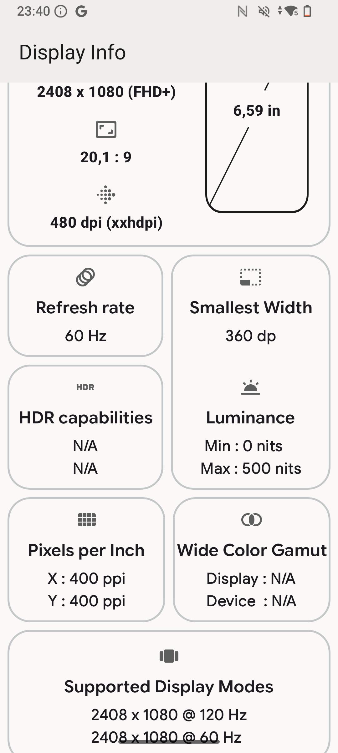 | Display | 2408 x 1080, 6,6 Zoll 120Hz (IPS) |