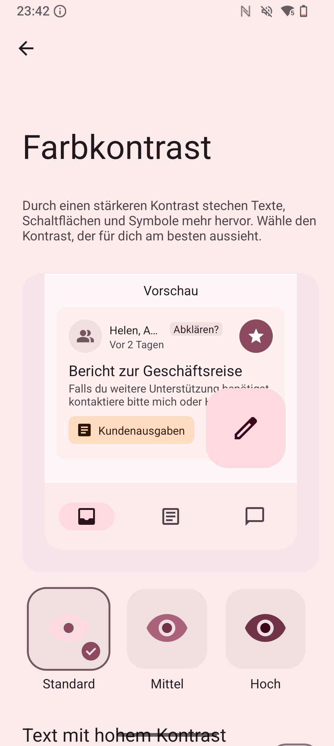 Allerdings ist keine Anpassung des Bildschirms möglich, außer beim Kontrast. Mit den recht warmen Farben müsst ihr leben. Immerhin kann der Blaulichtanteil zur Nacht reduziert werden, ebenso wird ein Dunkelmodus unterstützt. Der Bildschirmschoner ist überflüssig. Zusammenfassend ist die Anzeige des T-Phone 3 bis auf die zu geringe Bildschirmhelligkeit okay.