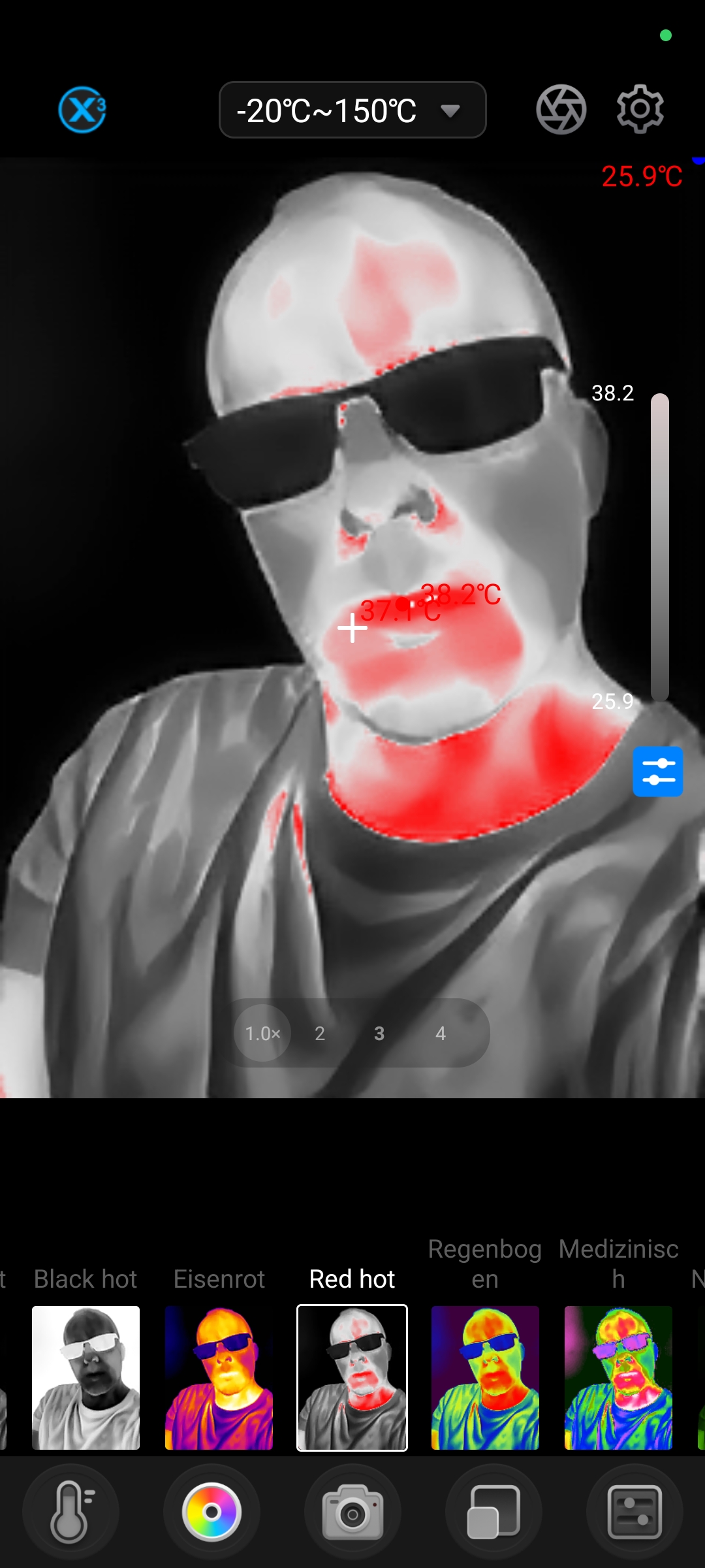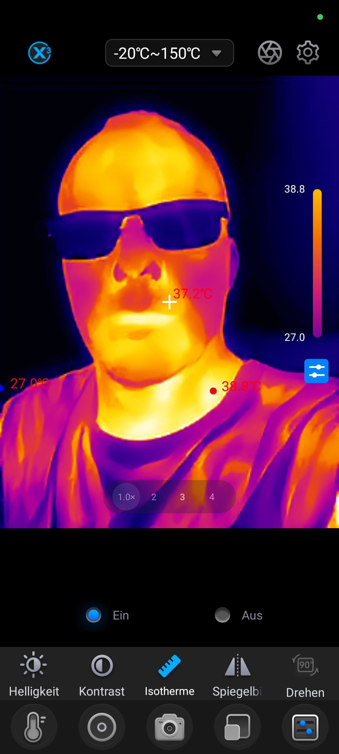 Wie auch im Test der Thermal Master P3 funktionierte die App nicht auf allen Testgeräten stabil. Während die Software auf diversen Samsung, Poco und Oukitel Smartphones problemlos funktionierte, traten bei Honor nicht reproduzierbare Abstürze auf. Zudem zeigen sich bei den Thermografieaufnahmen gelegentliche Artefakte im Bild. Diese sind allerdings nur in der Live-Ansicht sichtbar und auf dem endgültig erstellten Bild nicht mehr vorhanden.