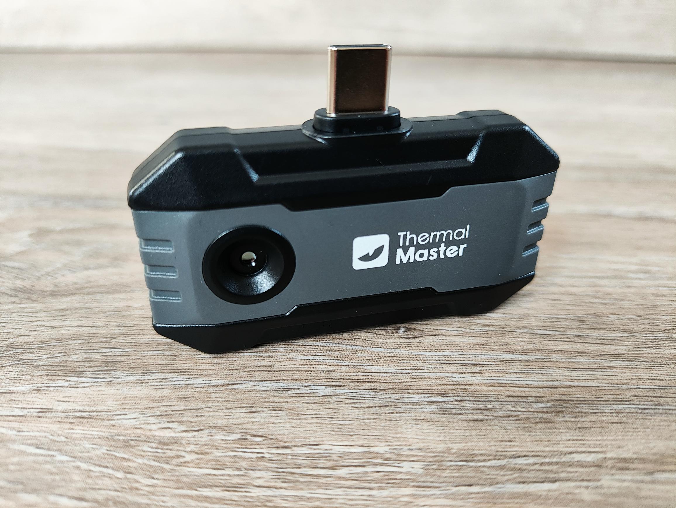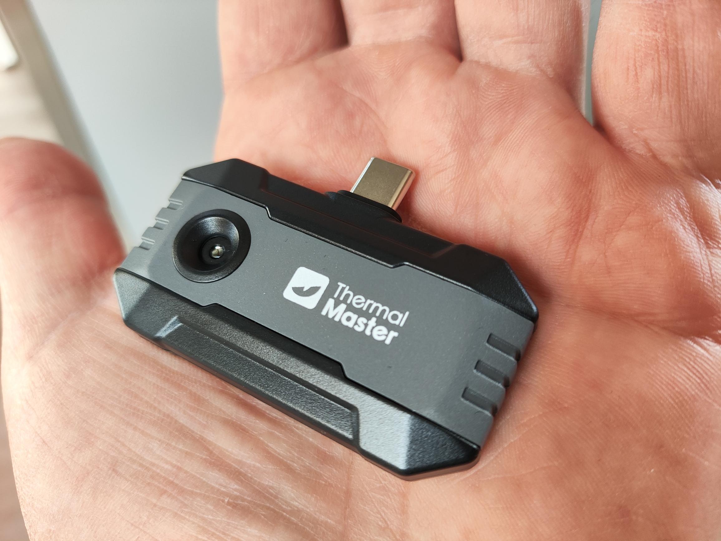 Mit Abmessungen von 59 x 27 x 17,2 Millimeter und einem Gewicht von nur 18 Gramm ist die Thermal Master P1 so leicht, dass man sie kaum als Zusatzgewicht wahrnimmt. Das Gehäuse besteht vollständig aus schwarzem und grauen Kunstoff und ist exzellent verarbeitet.