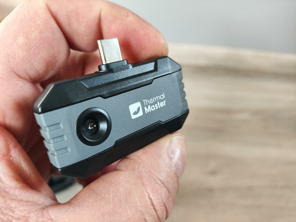 Die Verbindung zum Smartphone wird mittels des USB-C-Steckers auf der Oberseite realisiert. Dieser ist etwas länger als gewöhnliche USB-C Stecker, damit auch trotz Handyhülle ausreichend Kontakt gegeben ist. Alternativ kann auch das beiliegende USB-C-Verlängerungskabel verwendet werden. Somit könnt ihr die Kamera flexibel ausrichten, müsst dafür aber auf eine Fixierung am Handy verzichten. Die Thermal Master P1 ermöglicht keine Montage auf einem Stativ. Daher müsst ihr die Kamera stets am Smartphone oder mit der Hand fixieren.