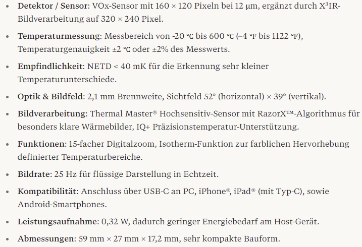Technische Daten der Thermal Master P1