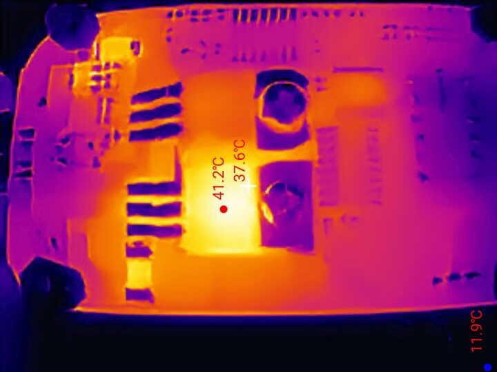 Wie man erkennen kann, sind die Aufnahmen keinesfalls schlecht. Normale Transistoren, Widerstände und Dioden lassen sich mit der Thermal Master P1 problemlos erkennen und thermisch auswerten. Im extremen Nahbereich oder bei sehr kleine SMD-Bauteilen kommt die Wärmebildkamera dann aber doch an ihre Grenzen. Dennoch können die Makro Aufnahmen trotz festem Fokus überzeugen.