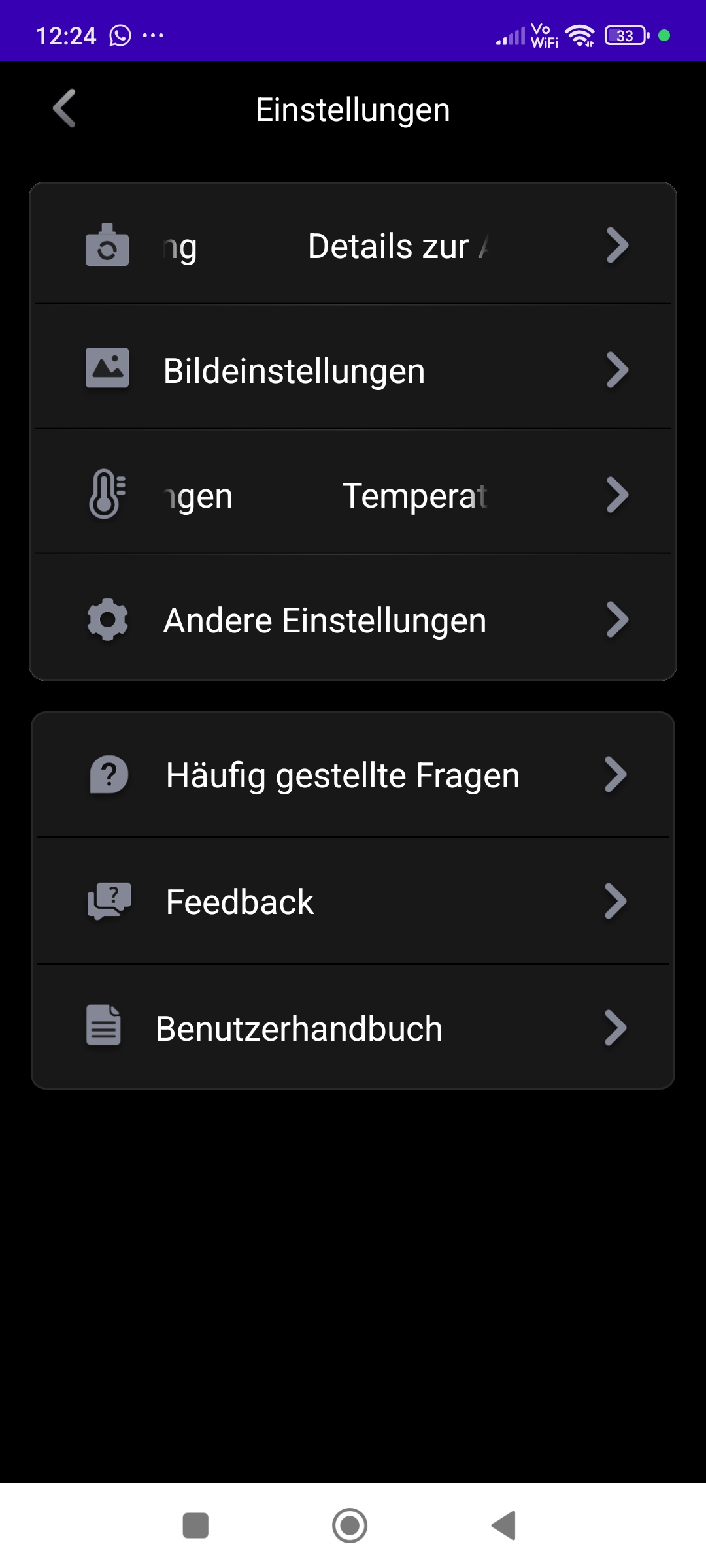 Die erweiterten Einstellungen bieten euch eine Menge nützliche Features. Ihr könnt beispielsweise das Bild in Sektoren aufteilen oder für eure Wärmebildaufnahmen Temperaturalarme konfigurieren. Bei Über- oder Unterschreiten bestimmter Temperaturschwellen wird dann in der App ein akustischer Alarm mit Alarmbeschreibung ausgelöst. Weiterhin habt ihr die Möglichkeit, diverse Korrekturmaßnahmen für die Optimierung der Temperaturerfassung durchzuführen. Je nach Oberflächenbeschaffenheit, Reflexion, Raumtemperatur oder Entfernung wirken sich die Parameter auf die Genauigkeit des Thermografiebildes aus.