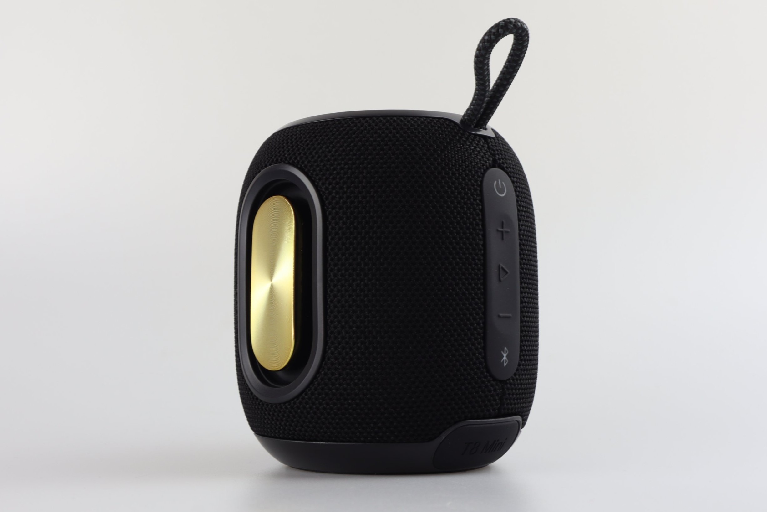 Der kleine, große T8 Mini misst 99 x 99 x 119 Millimeter und wiegt rund 600 Gramm. Er ist nicht so winzig wie etwa ein Edifier ES20 (zum Test), aber deutlich weniger voluminös als das Vorgängermodell T7 Mini. Der Lieferumfang beschränkt sich auf das Nötigste, dafür wird der T8 Mini schon jetzt in vier Farben angeboten: Schwarz, Blau, Grau und Rot. Bei der schwarzen Version sind die Passivstrahler golden eingefärbt.