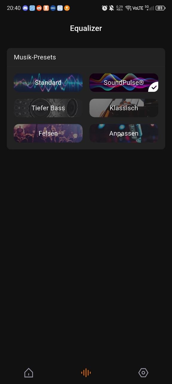 Mit den beiden Equalizer-Einstellungen „Standard“ und „SoundPulse“ fahrt ihr beim T8 deutlich besser als beim T8 Mini. Einziges Manko ist hier, dass bei einer Anpassung des freien Equalizers oder dem Wechsel der verfügbaren Modi immer kurz die Audioausgabe unterbrochen wird.