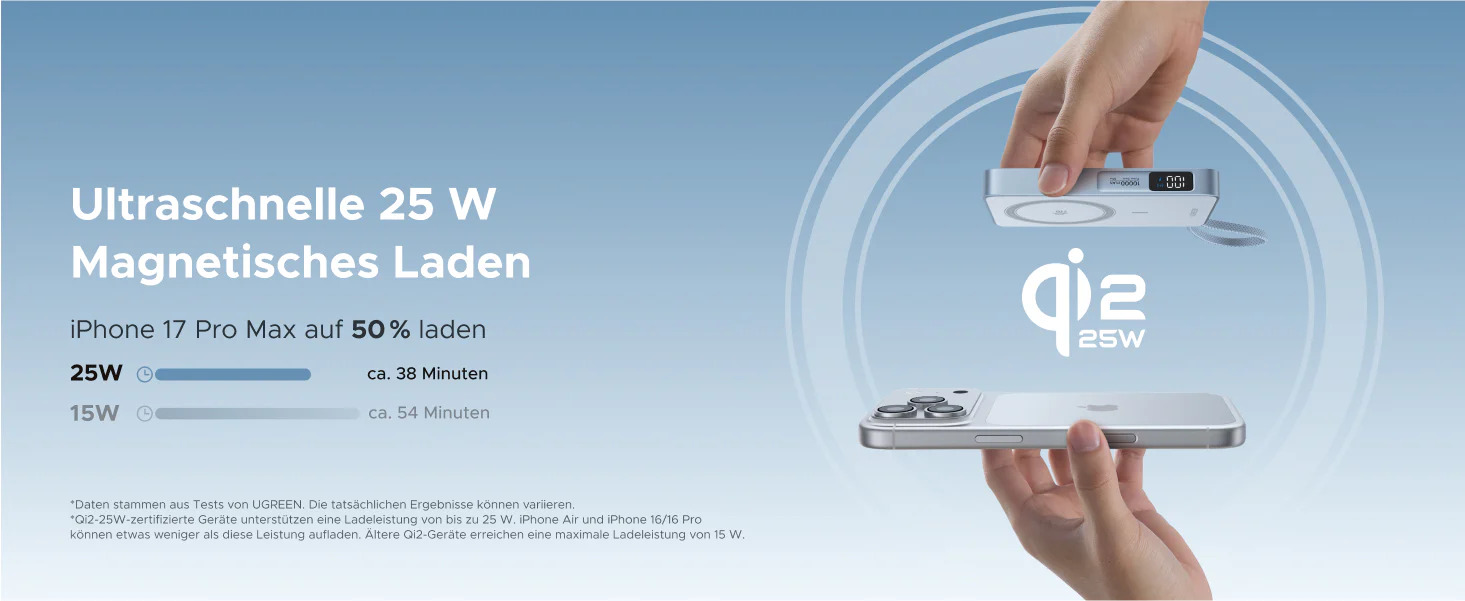 - gute drahtlose Qi2.2 Ladeleistung