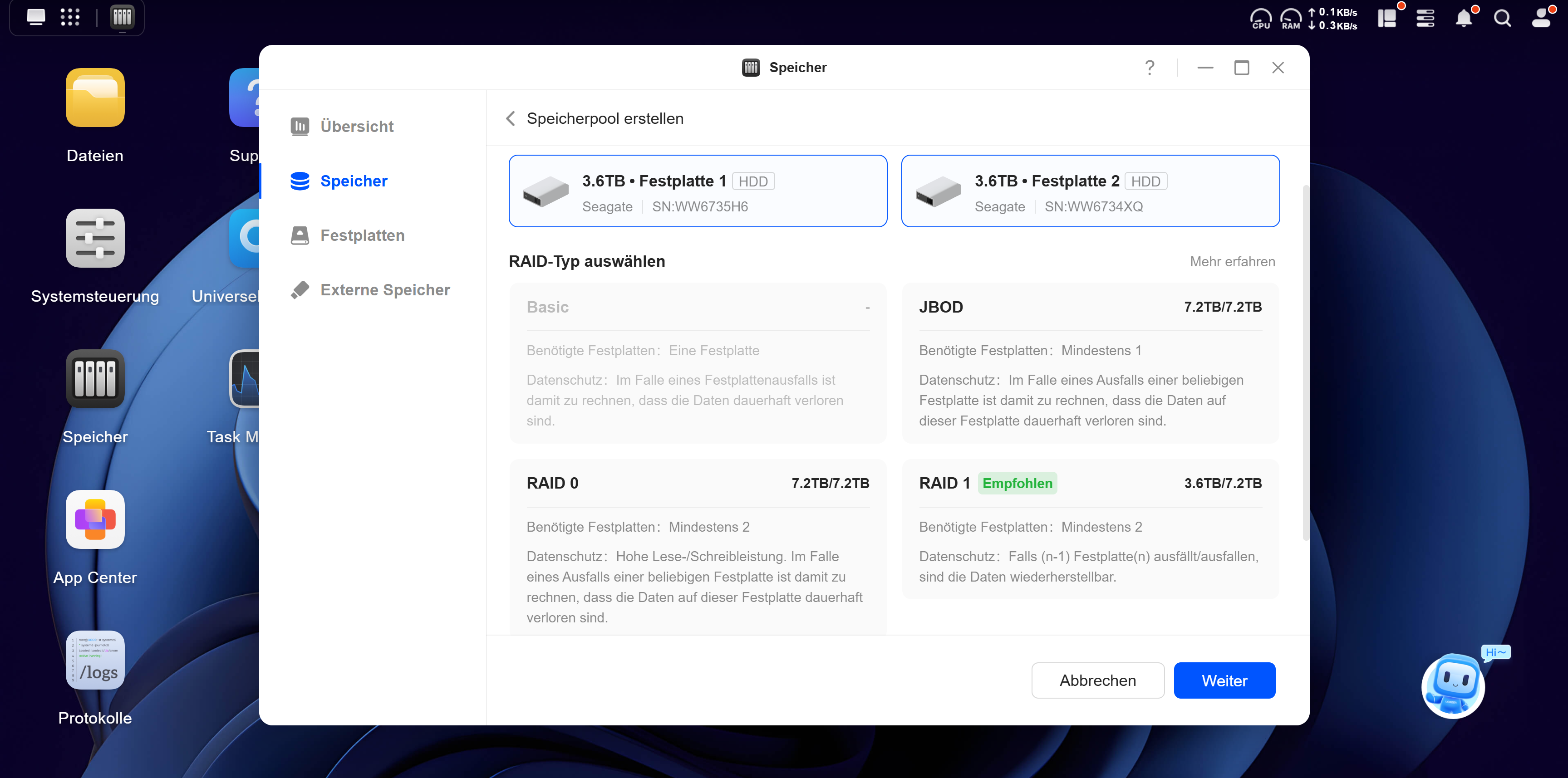 Das Erstellen von RAID-Verbünden geht sehr einfach von der Hand. Ihr könnt einen Dienst wie SMB aktivieren und dann direkt über einen Dateimanager auf eure Daten zugreifen.
