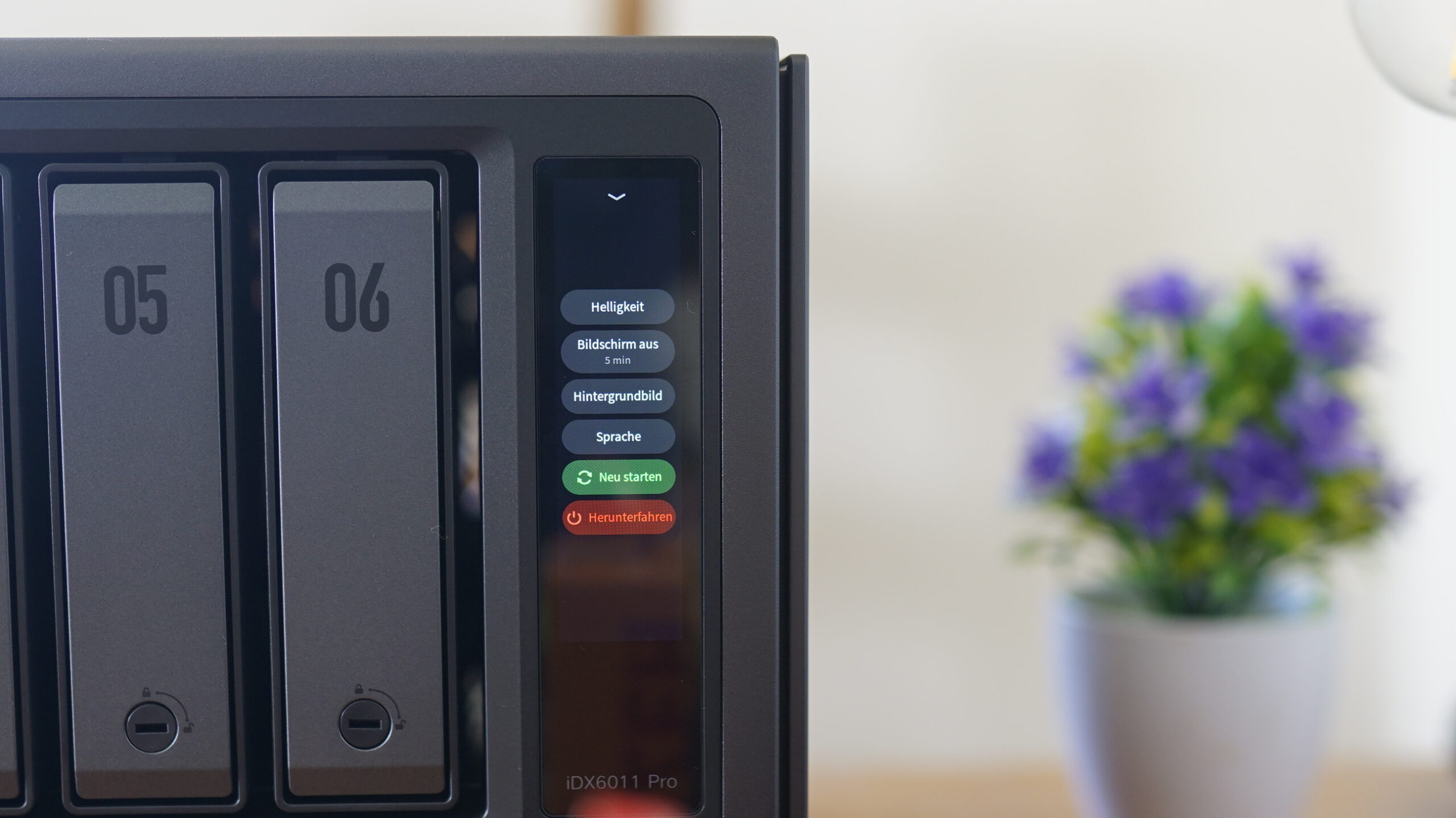 Wir haben das iDX6011 Pro-Modell im Test, das exklusiv mit dem OCuLink-Port und mit einem 3,7 Zoll-Display auf der Vorderseite ausgestattet ist. Jenes LCD ist ein Touch-Display, das sich im Test als weitaus nützlicher erwiesen hat, als ich erwartet hatte. Zwar handelt es sich nicht um viel mehr als eine Status-Anzeige, aber genau das funktionierte hervorragend.