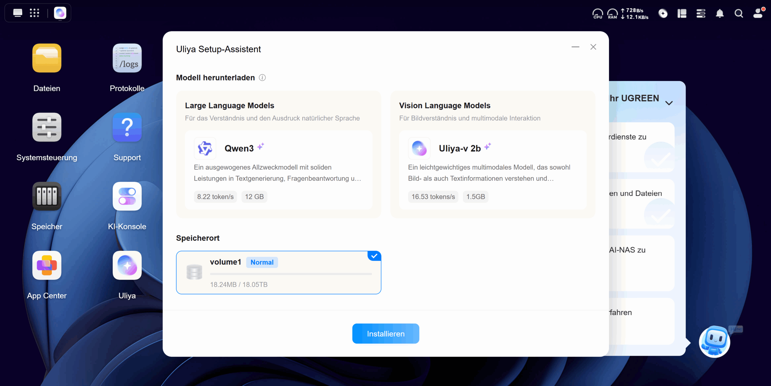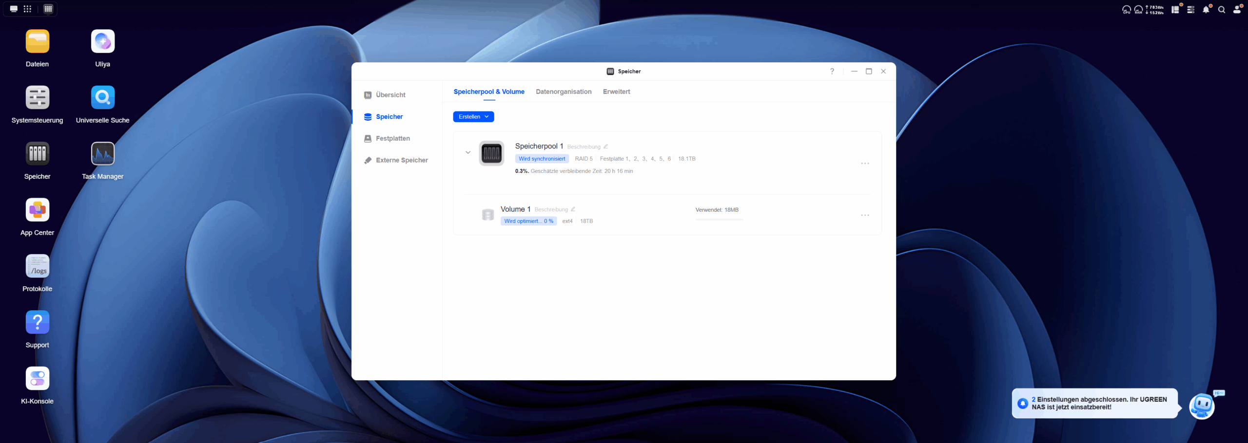 Wie auch schon beim Ugreen DH2300 haben Download und Installation des Betriebssystems relativ lang gedauert. Nach etwa zwei Stunden Wartezeit war das System dann bereit. Dank des Ugreen DH2300 war ich bereits an die Bedienung von UGOS Pro gewöhnt und habe mich sehr schnell zurechtgefunden. Auch für Neueinsteiger ist das System aber sehr intuitiv und einfach zu verstehen. Ein Assistent nimmt euch bei Bedarf kurz an die Hand und zeigt euch die wichtigsten Features.