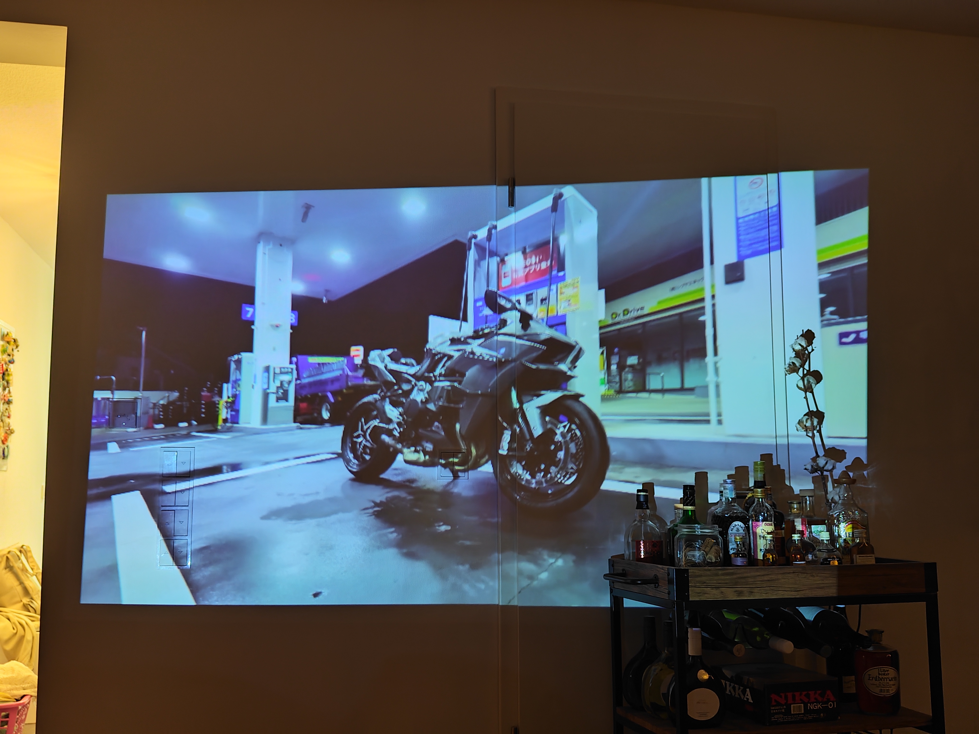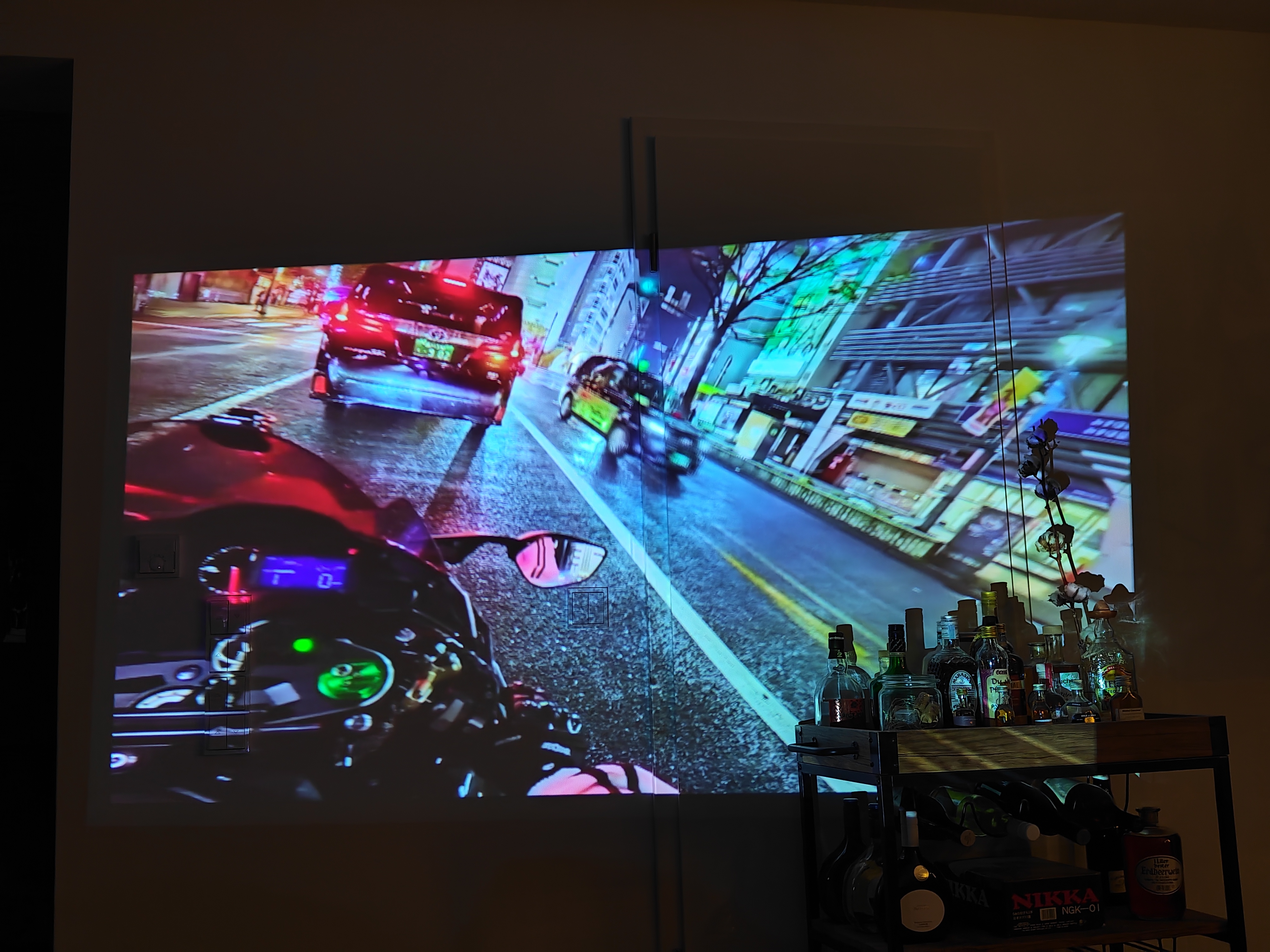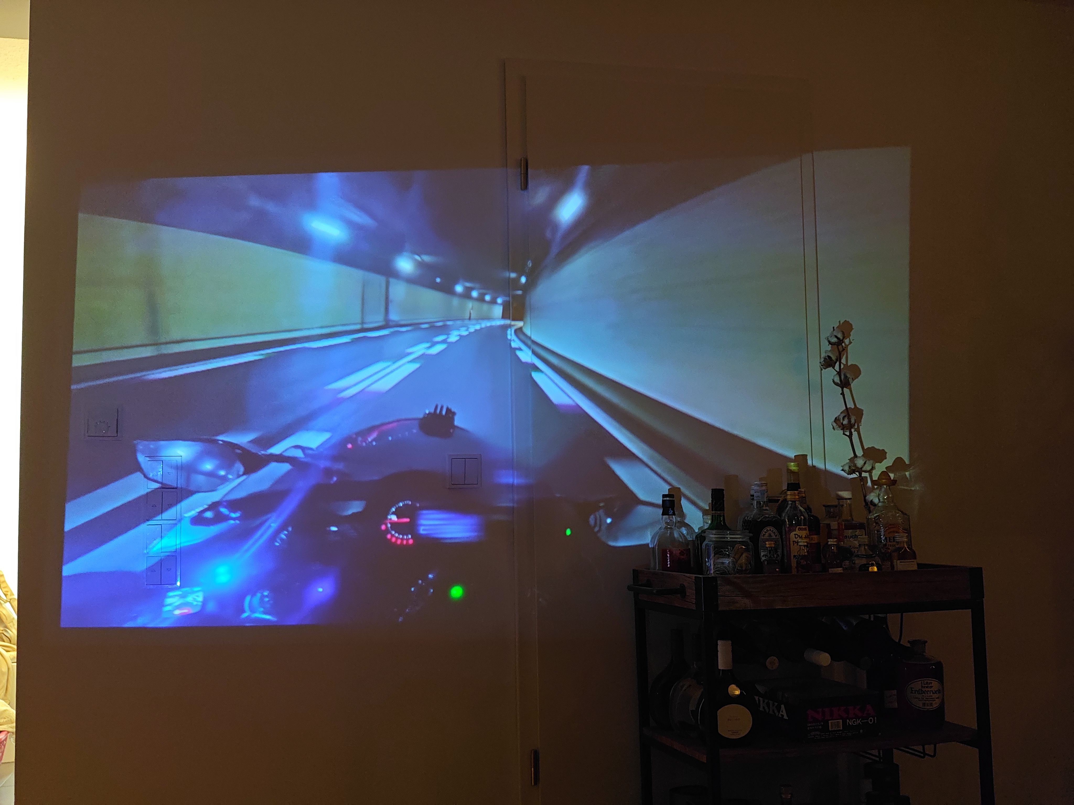 Im besten Fall bewegt ihr euch bei der Entfernung nahe der 1,5- bis 2-Meter-Marke. Das Bild ist dann ausreichend groß und gleichzeitig noch recht kräftig. Wer näher herangeht, bekommt noch sattere Farben, aber die Fläche schrumpft auch schnell zusammen. Schon eine leichte Abdunklung kann zu einer deutlichen Verbesserung führen. Die Lautstärke durch den Lüfter nimmt mit zunehmender Projektionszeit deutlich zu. Der Lüfter von RedMagic-Geräten mag nicht ganz so groß sein, agiert aber dennoch mit großem Abstand leiser. Die niedrige Auflösung spielt erst mal gar nicht so eine große Rolle, und besonders für ein YouTube-Video zwischendurch ist die Qualität ausreichend.