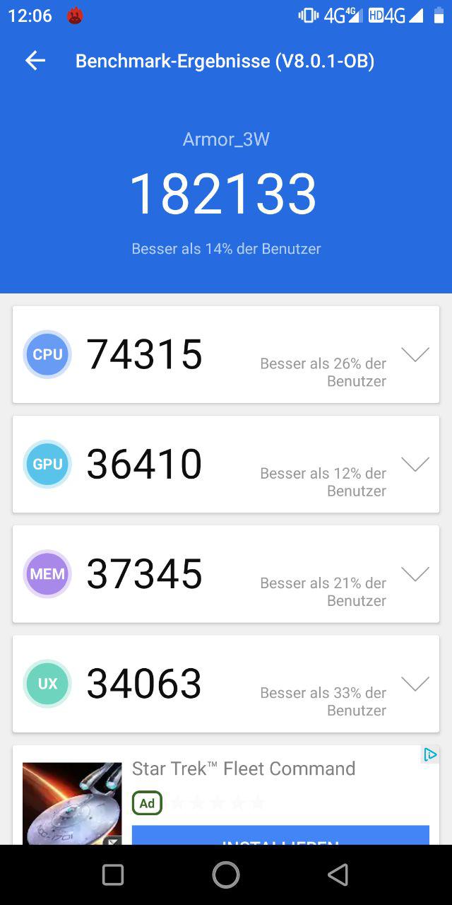In den Benchmarks zur Leistung liegt das Ulefone Armor 3W ganz gut im Rennen. Es handelt sich zwar um keine absoluten Spitzenwerte, doch das erwartet hier auch keiner.