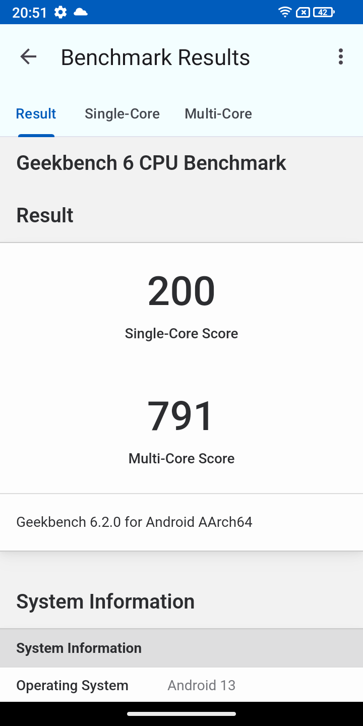 Die Bedienungsgeschwindigkeit ist als ausreichend zu beschreiben. Es ist klar zu merken, dass die CPU mit Android 13 zu kämpfen hat. Im System selbst kommt es zu minimalen Rucklern und Tastatureingaben werden leicht verzögert wiedergegeben. Multitasking ist möglich, führt aber zu Wartezeiten beim Wechsel zwischen Apps. Für einfachste Aufgaben ist die CPU geeignet. WhatsApp und YouTube lassen sich etwa problemlos nutzen.