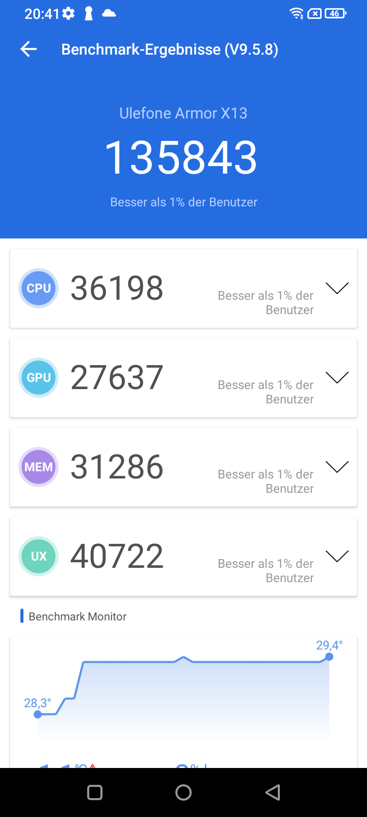 Damit ist die Ausstattung erfreulich komplett. Als weiteres Goodie ist das FM-Radio zu nennen, welches ohne externe Antenne bzw. Kopfhörer auskommt. In Zusammenarbeit mit dem Mono-Lautsprecher hat man ein kleines Baustellenradio. Das verbaute NFC funktioniert reibungslos. Die SAR-Werte betragen 0,692 W/kg (Kopf) und 0,987 W/kg (Körper) für das Ulefone Armor X12Pro und 0,527 W/kg (Kopf) und 0,699 W/kg (Körper) für das Ulefone Armor X13.