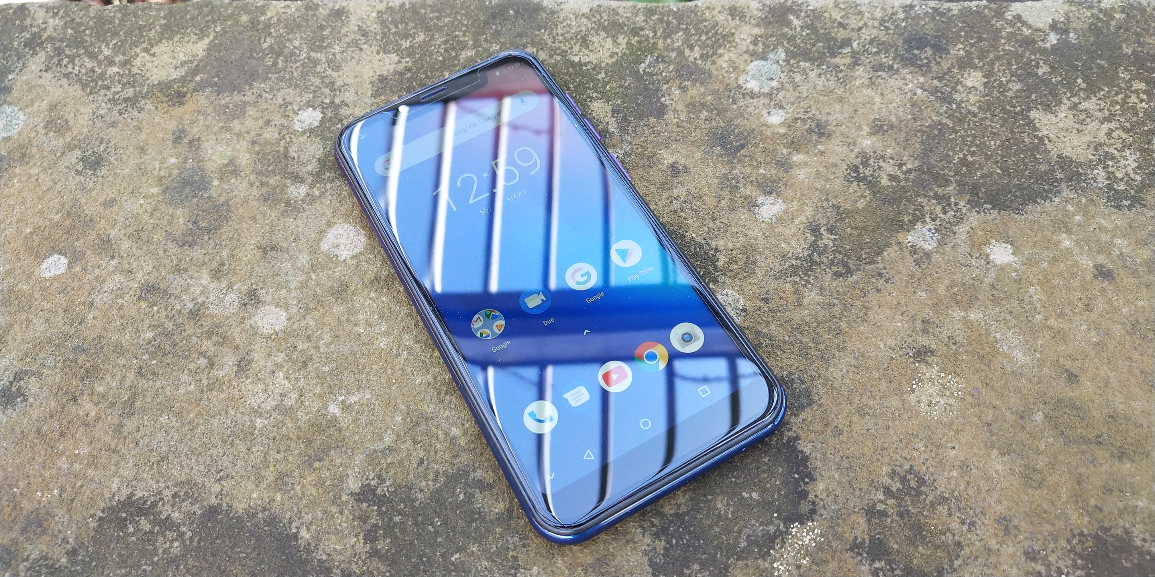 Zum Bildschirm gibt es eigentlich nicht sonderlich viel zu berichten. Das Smartphone verfügt über ein 5,7 Zoll großes IPS Display im 19:9-Format. Dadurch ist es schmal und etwas länglicher. Wie für die IPS-Technologie üblich weist das S10 Pro eine hohe Farbgenauigkeit auf. Die Farbdarstellung ist sehr kräftig die Blickwinkelstabilität ist einfach hervorragend. Völlig gleich aus welchem Winkel man auf das Smartphone schaut. Alle Inhalte sind zu jeder Zeit gut lesbar. Farbveränderungen treten ebenfalls nicht auf. Gut gefällt mir auch der Schwarzwert des Bildschirmes. Klar, hat er keine Chance gegen die OLED-Technologie, aber schwarze Inhalte werden relativ nahe dem Schwarzton wiedergegeben und sind nicht so grau, wie bei vielen (billigen) LC-Displays. Auf „Always-On“ Funktionalität muss man beim Ulefone S10 Pro natürlich verzichten. Dies bleibt den organischen LED Screens vorbehalten. Die Auflösung liegt bei ressourcensparenden 1498 x 720 Bildpunkten (HD+), was in 292 Pixel pro Zoll resultiert. Die tatsächliche Screen-to-Body-Ratio liegt bei 76%. Der Touchscreen kann 5 Berührungspunkte gleichzeitig erkennen und setzt alle Eingaben in gewisser Weise verzögerungsfrei um. Was genau das heißen soll, kläre ich in der nächsten Rubrik. Das Display bietet mit einer Helligkeit von im Schnitt 666 Lux genug Licht um auch bei Tageslicht lesbar zu sein. Das Display selbst spiegelt natürlich ein wenig dabei. Leider kann sich der User über keine Gestensteuerung erfreuen. Auch einen Blaulichtfilter, auch Nachtmodus genannt, der in den Abendstunden verwendet werden sollte um die Augen zu schonen, ist nicht implementiert. Gorilla Glas wird im Ulefone nicht verwendet.