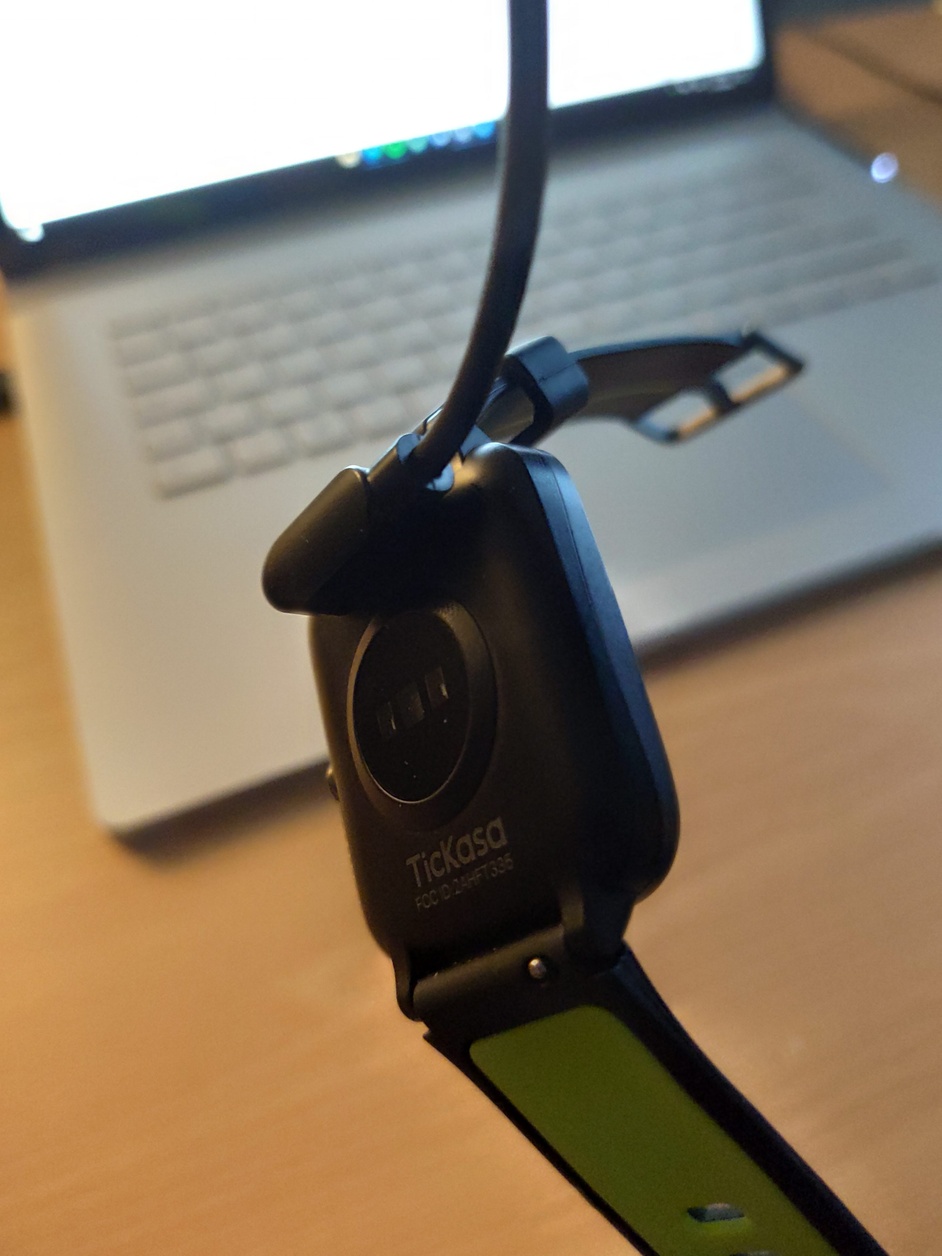 Der Akku hält laut Ulefone im Standby-Modus bis zu 45 Tage und im aktiven Modus, wenn man die Uhr täglich am Arm hat, bis zu 7 Tage. Den zweiten Wert kann ich im Großen und Ganzen bestätigen. Ich musste die Ulefone Watch GPS nach dem sechsten Tag mit knapp 10 Prozent an den Strom hängen, da ich ansonsten nicht mehr komplett durch den siebten Tag gekommen wäre. Aufgeladen wird die Uhr über den typischen 2-Pin-Konnektor, der magnetisch an der Uhr hält. Der Magnet ist relativ stark, weshalb man keine Angst haben muss, dass die Uhr eventuell nicht aufgeladen wird, weil sie nicht richtig angedockt ist. Der Prozess des Aufladens dauert ca. 2 ½ Stunden.