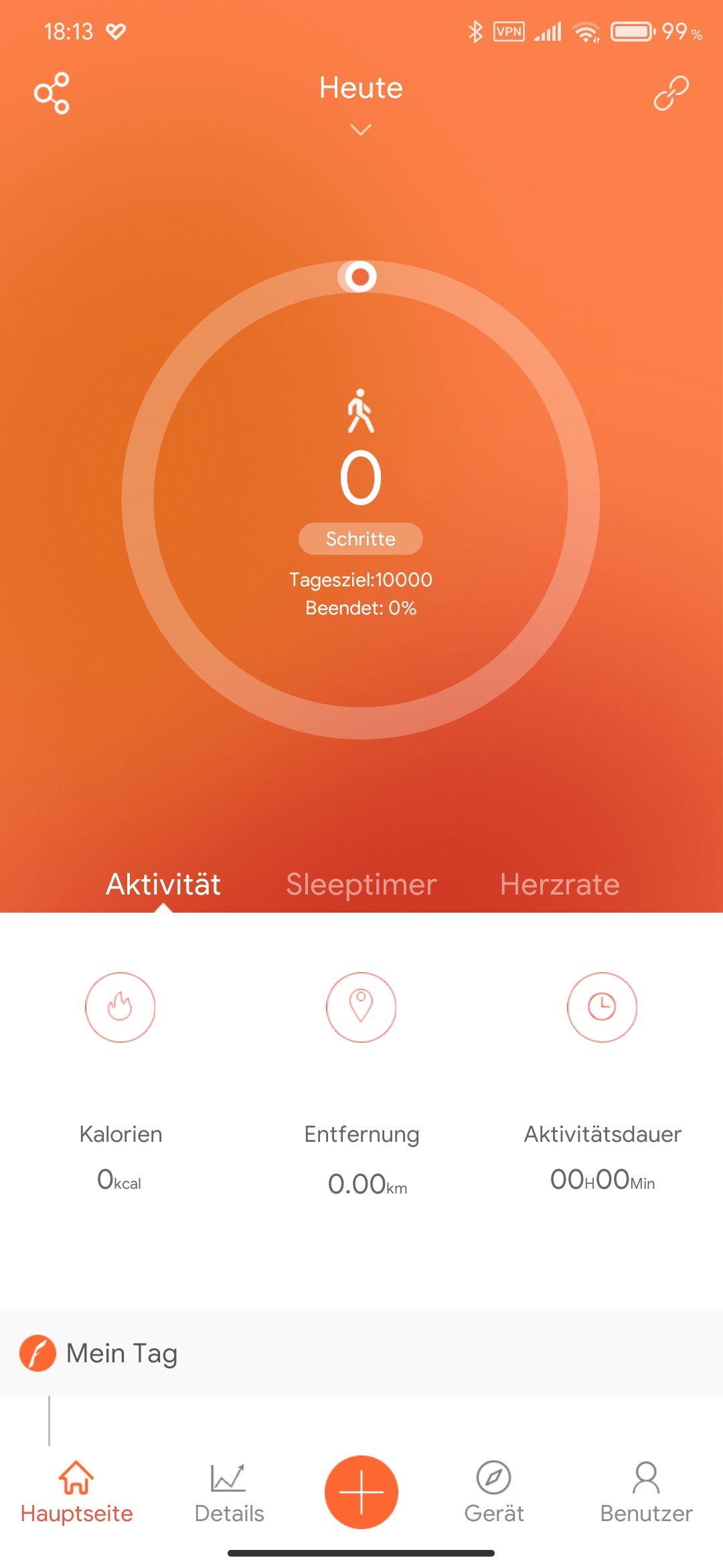 Die App namens VeryFitPro ist übersichtlich gestaltet und wirkt sehr modern. Im Grundaufbau unterscheidet sie sich wenig von anderen Fitness-Apps. Sobald man sie öffnet, wird man von einem Kreis begrüßt, der einem anzeigt, wie viel Schritte man am Tag gemacht hat und ob man seine Schrittziele erreicht hat. In der weiteren Übersicht werden einem die verbrannten Kalorien, die zurückgelegten Kilometer und die tägliche Aktivitätsdauer angezeigt. Zusätzlich kann man noch die Reiter „Sleeptimer“ und „Herzrate“ auswählen, in denen man dann eine ausführliche Analyse des eigenen Schlafes oder Details über die Herzfrequenz angezeigt bekommt. Über das „Plus-Symbol“ mittig in der unteren Menüleiste kann man die Aufzeichnung sportlicher Aktivitäten starten.