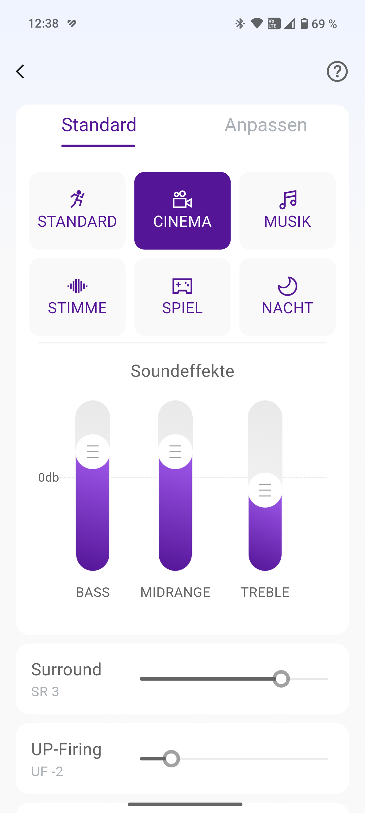 Das größte Problem der Soundbar ist das fehlende Volumen. Und so leid es mir tut: Das äußert sich in blechernem Sound, insbesondere bei Stimmen. Das wird Freunde von Serien oder normalem Fernsehen stören. In der Standardeinstellung ist der blecherne Klang recht ausgeprägt, aber ihr könnt ihn der Ultimea Skywave X40 bis zu einem gewissen Grad austreiben. Deaktiviert am besten den „Xupmix“-Sound-Verschlimmbesserer, reduziert die Höhen etwas und wechselt zum Modus „Cinema“. Dann ist die Wiedergabe von Stimmen deutlich angenehmer, wenn auch nicht so gut wie bei einem großen Center-Speaker.