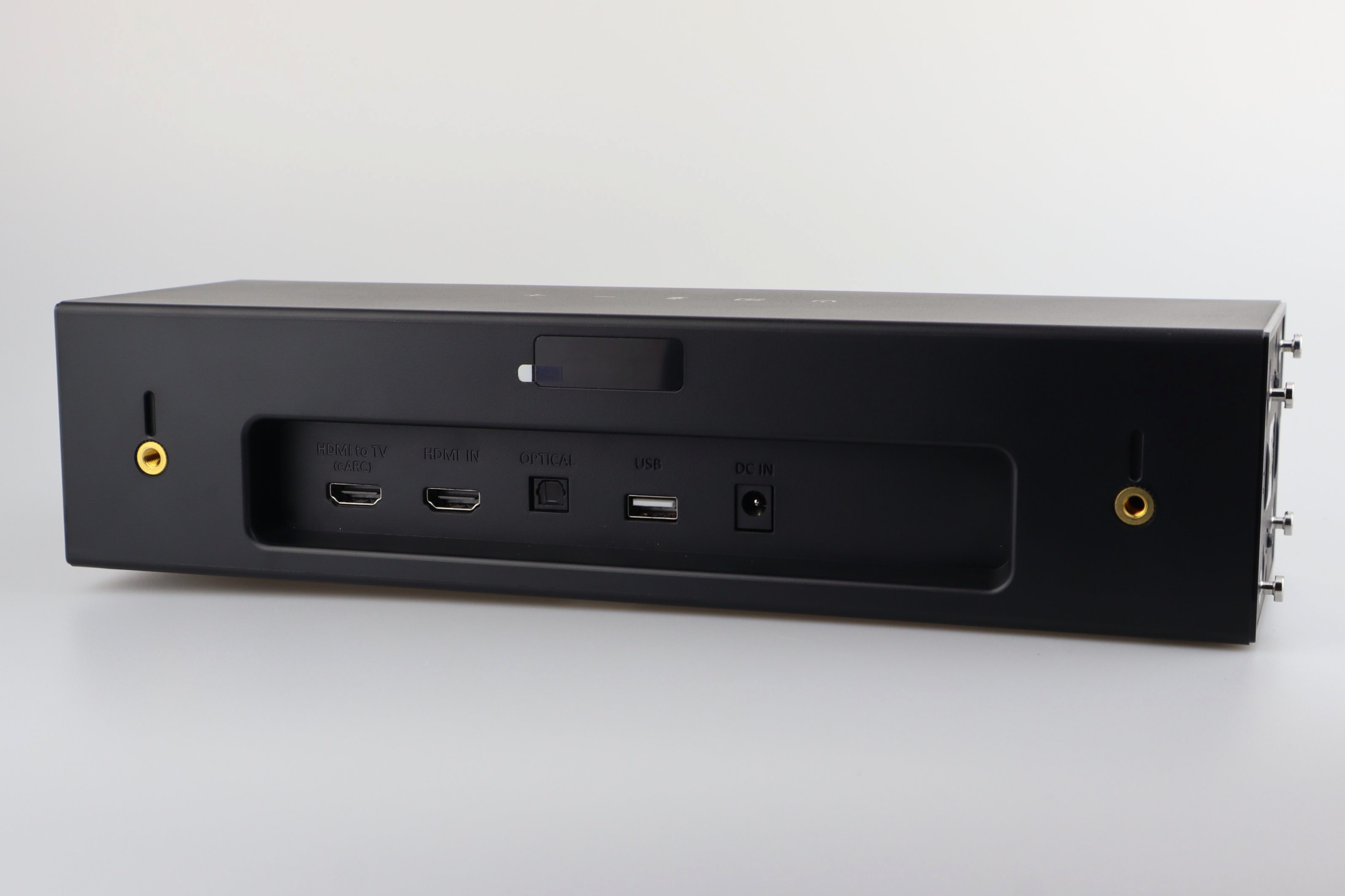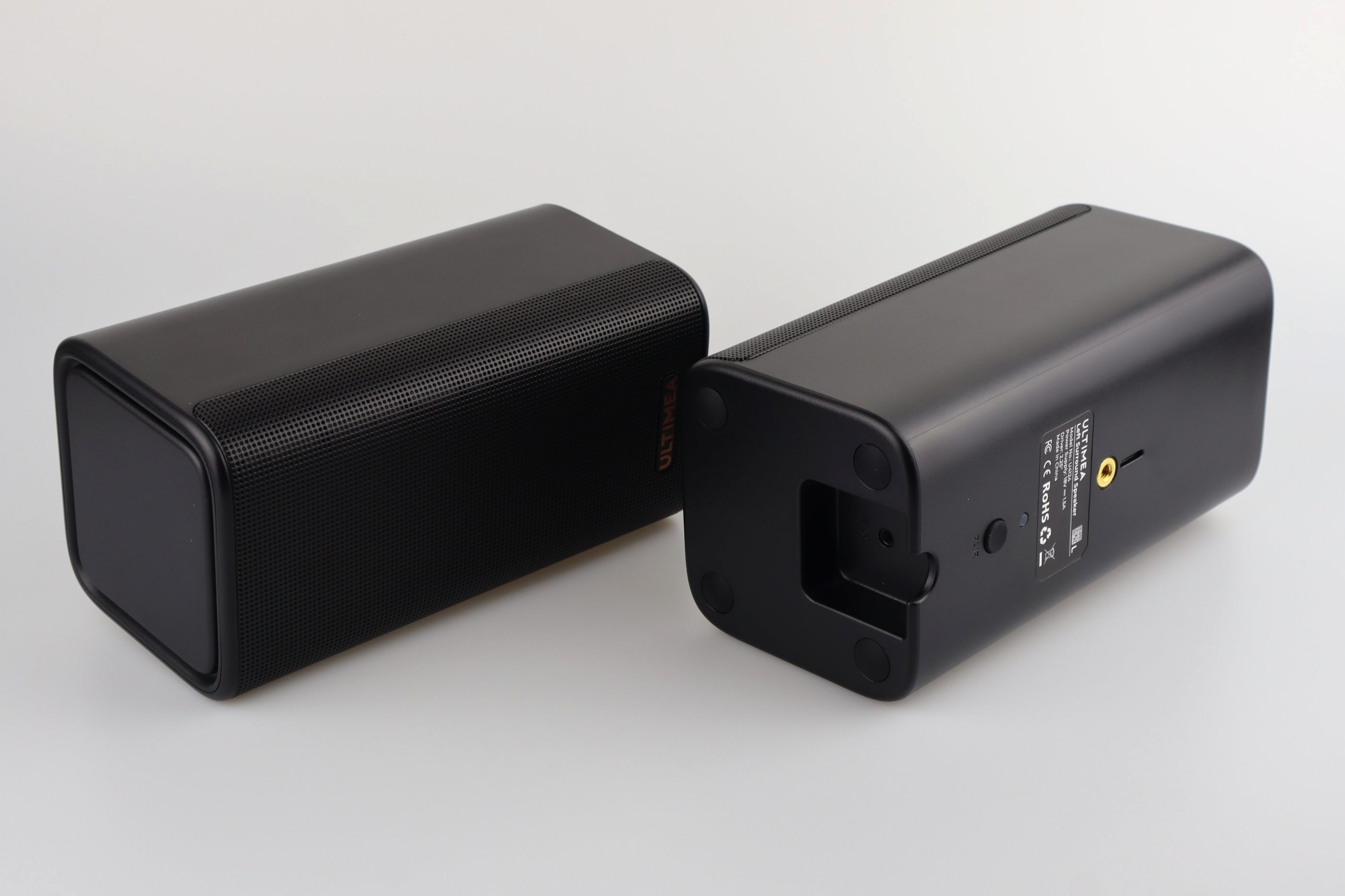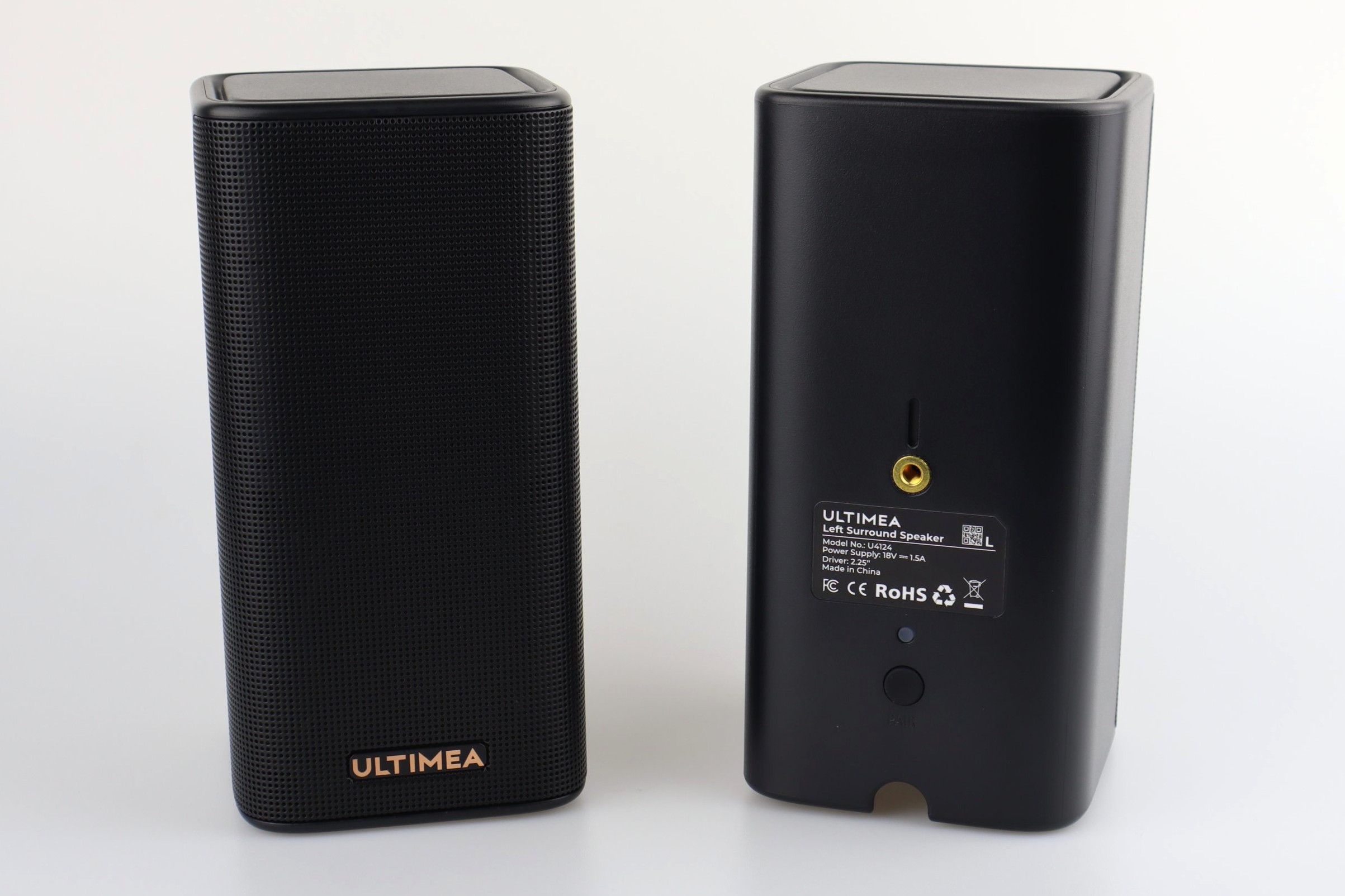 Die Soundbar ist zwar recht lang, aber die linken und rechten Kanäle werden nicht optimal bedient. Die Wiedergabe ist sehr auf den Center-Kanal ausgerichtet. Für die Optik und Platzierung ist das einteilige Design zwar gut, für den Klang jedoch nicht. Da die Anschlüsse bzw. Pins vorhanden sind, könnte Ultimea beim nächsten Modell vielleicht zwei Kabel beilegen, sodass Nutzer den rechten und linken Lautsprecher etwas weiter entfernt platzieren können.