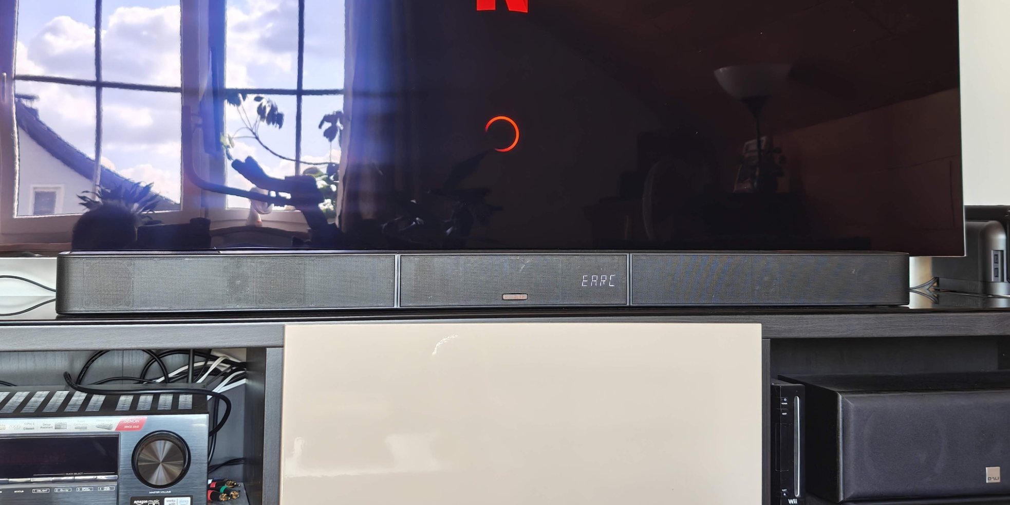 Wenn das Ultimea Soundsystem über HDMI mit eARC angeschlossen ist, funktioniert die Steuerung über die TV-Fernbedienung reibungslos. Das Ultimea-Soundsystem schaltet sich zuverlässig ein und aus und gibt dabei eine kleine Melodie von sich.