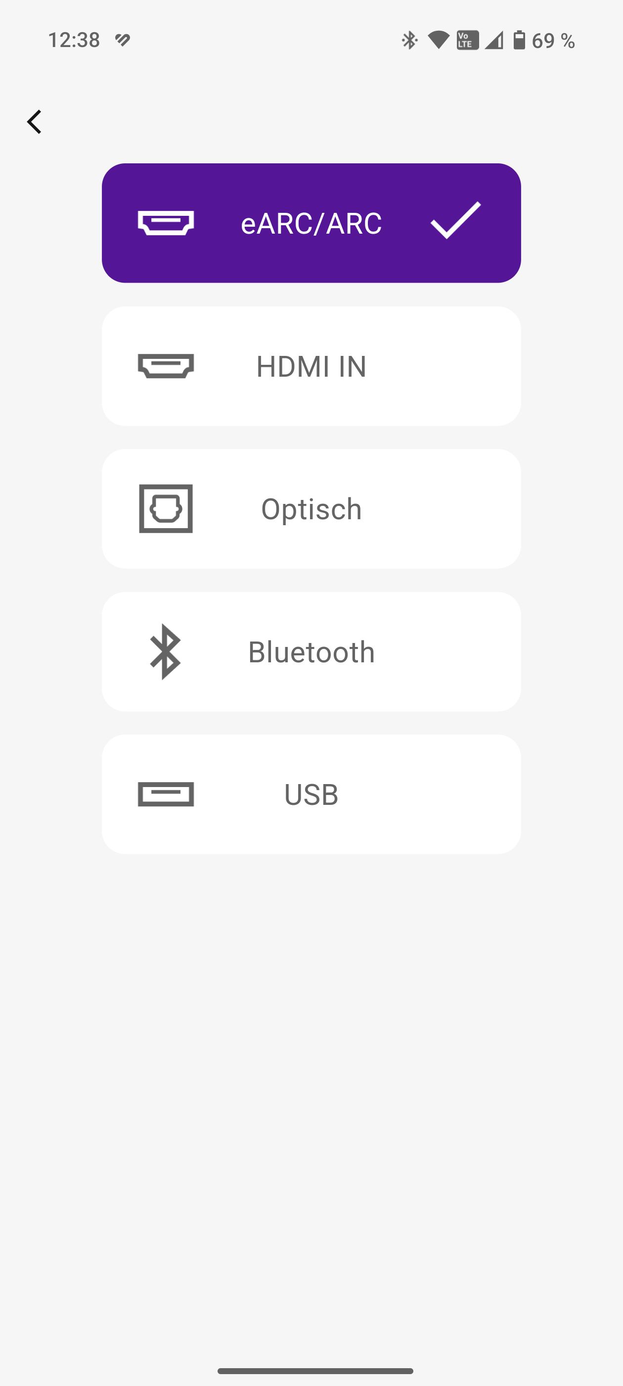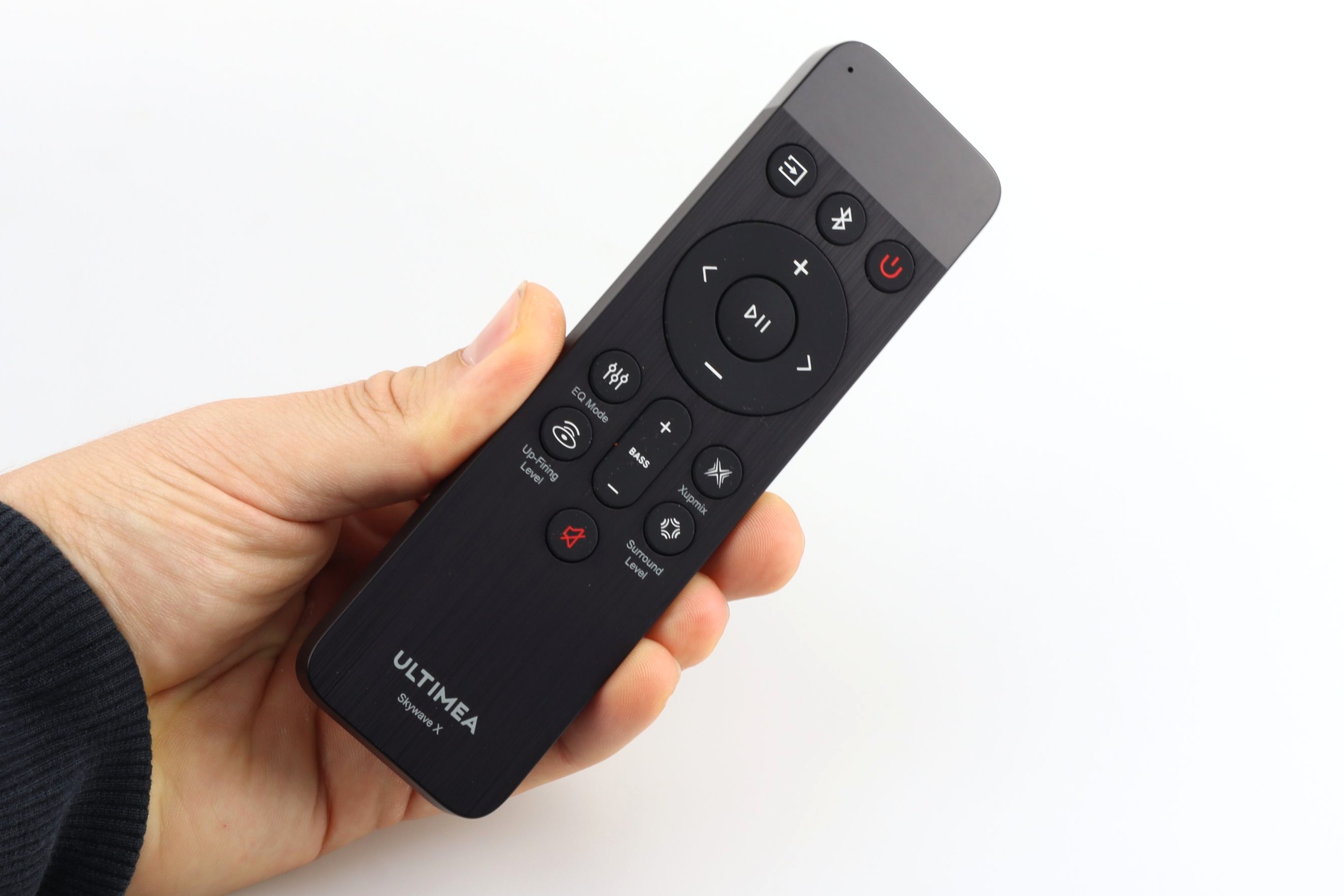 Die Fernbedienung ist ordentlich verarbeitet und wirkt hochwertig. Durch das zusätzliche Gewicht liegt sie gut in der Hand. Wenn das Soundsystem per HDMI-eARC verbunden ist, wird die Fernbedienung nur für Soundeinstellungen benötigt. Hier lässt sich beispielsweise schnell der Soundmodus wechseln oder die Bass- und Surround-Verstärkung einstellen. Zwei AAA-Batterien für die Fernbedienung sind nicht im Lieferumfang enthalten.