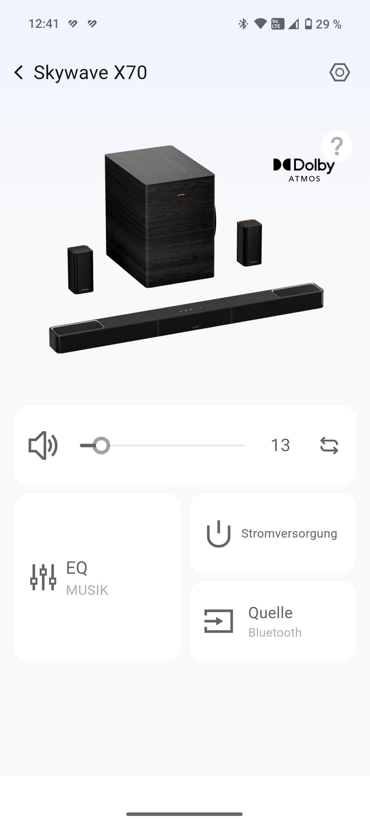 Für das Ultimea Skywave X70-System steht die Ultimea-App (hier im Play Store) bereit. Diese wird hauptsächlich für den 10-Band-Equalizer benötigt, um den Klang den persönlichen Vorlieben anzupassen. Zudem gibt es verschiedene Soundmodi. Der Funktionsumfang ist somit überschaubar.