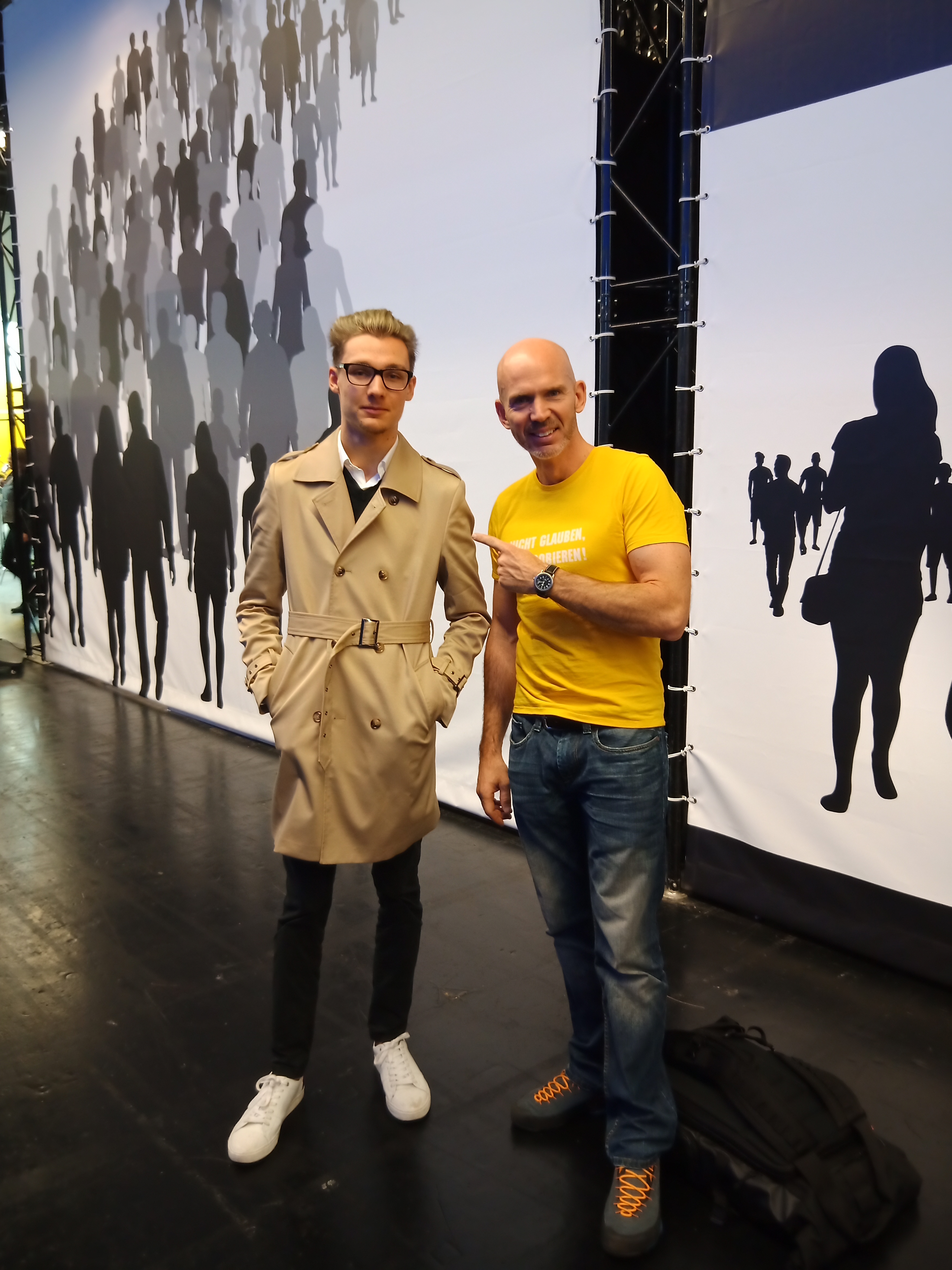 - Und das bin ich mit Stephan Wiesner. Vergleich mal die Schärfe mit der vom ersten Bild. Krass, wie viel ein bisschen weniger Licht ausmacht, oder?