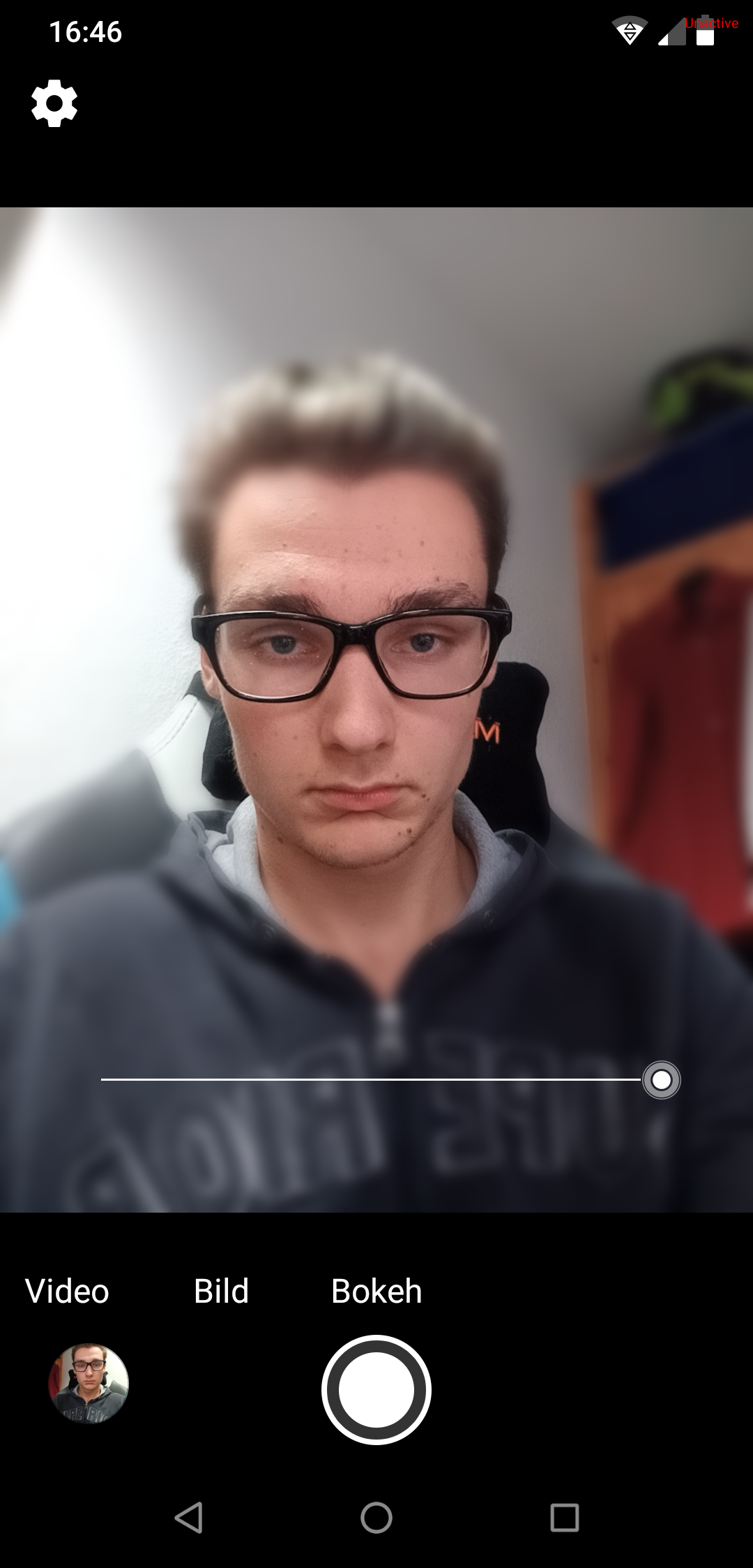 Der Bokeh-Modus ist irgendwie ein Paradoxon. In der Kamera-App wird nämlich ein (unglaublich schlechtes) Bokeh angezeigt, das abgespeicherte Foto ist dann aber ein ganz normales Bild ohne Bokeh-Effekt. Hier einmal kurz der Vergleich: