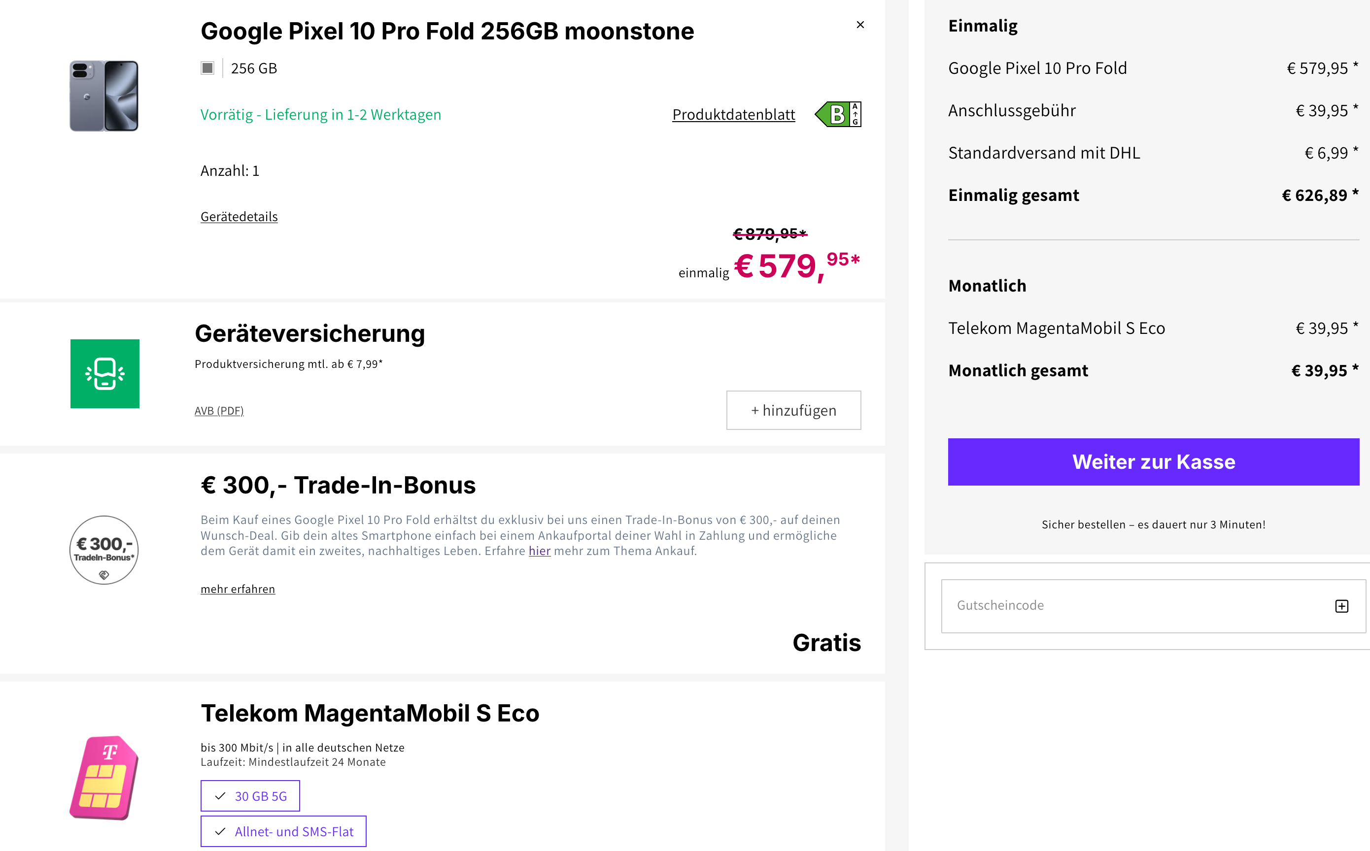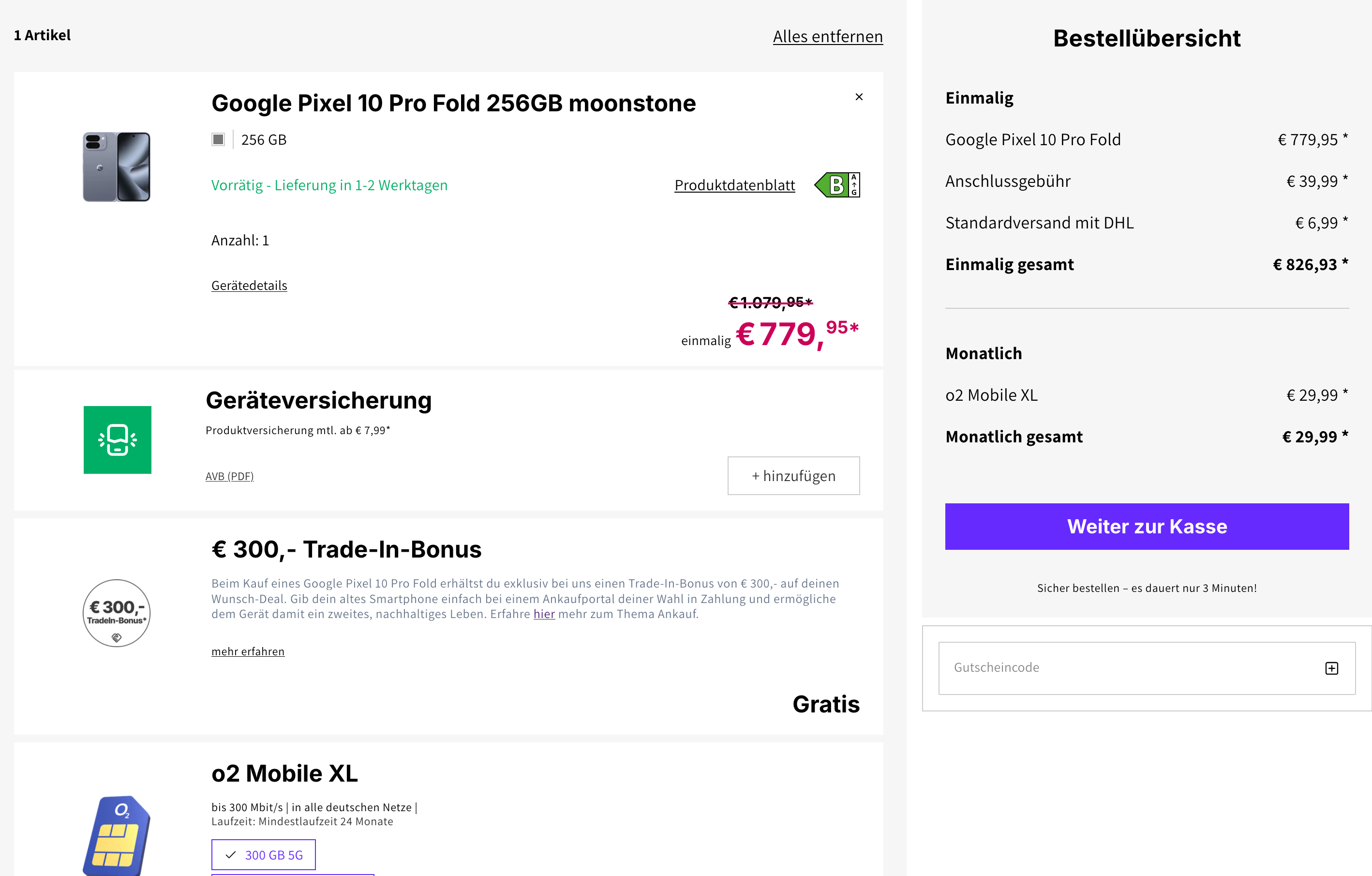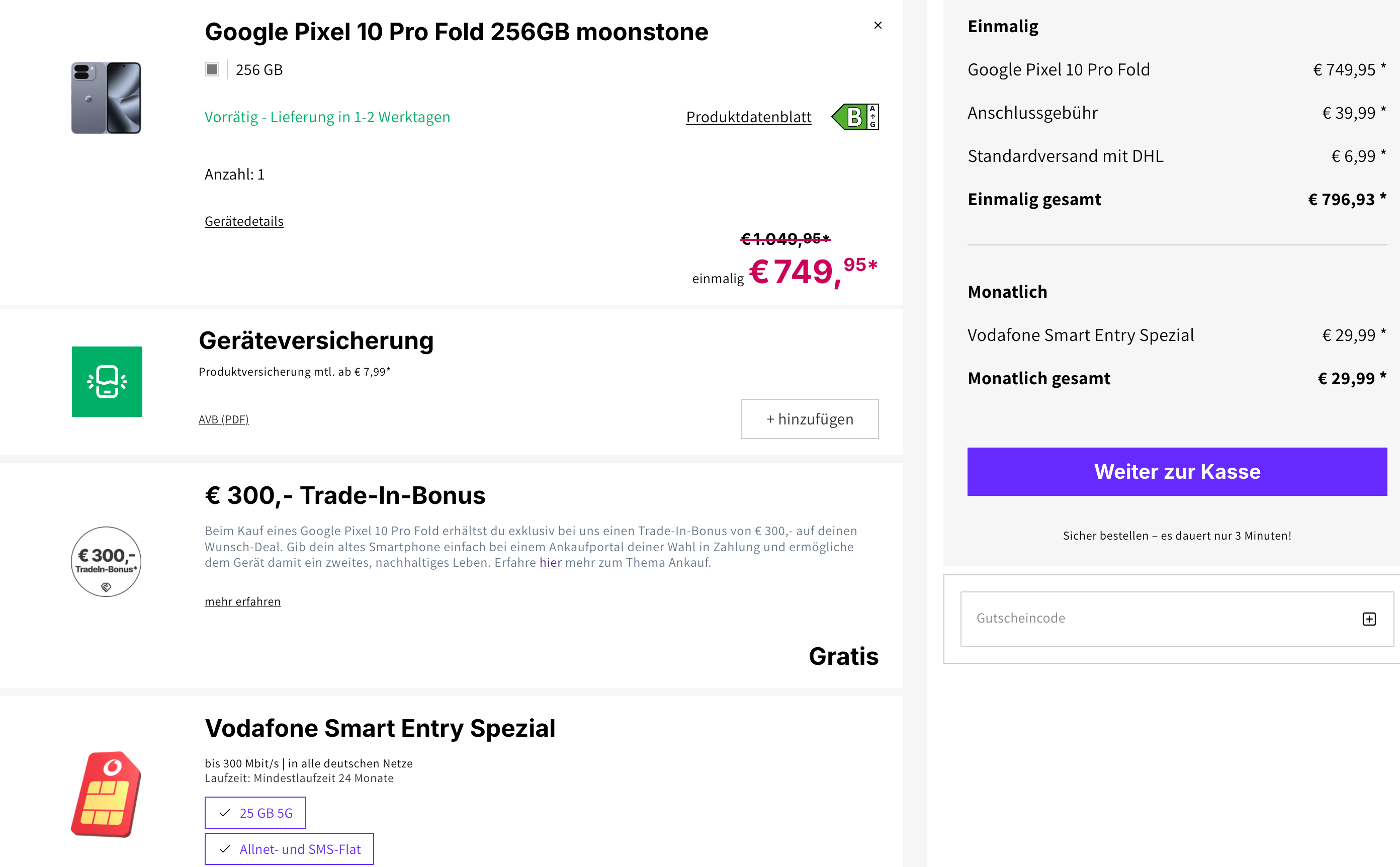 Verrechnen wir diese Gesamtkosten mit dem Neupreis für das Google Pixel 10 Pro Fold, ergibt sich folgendes Bild: