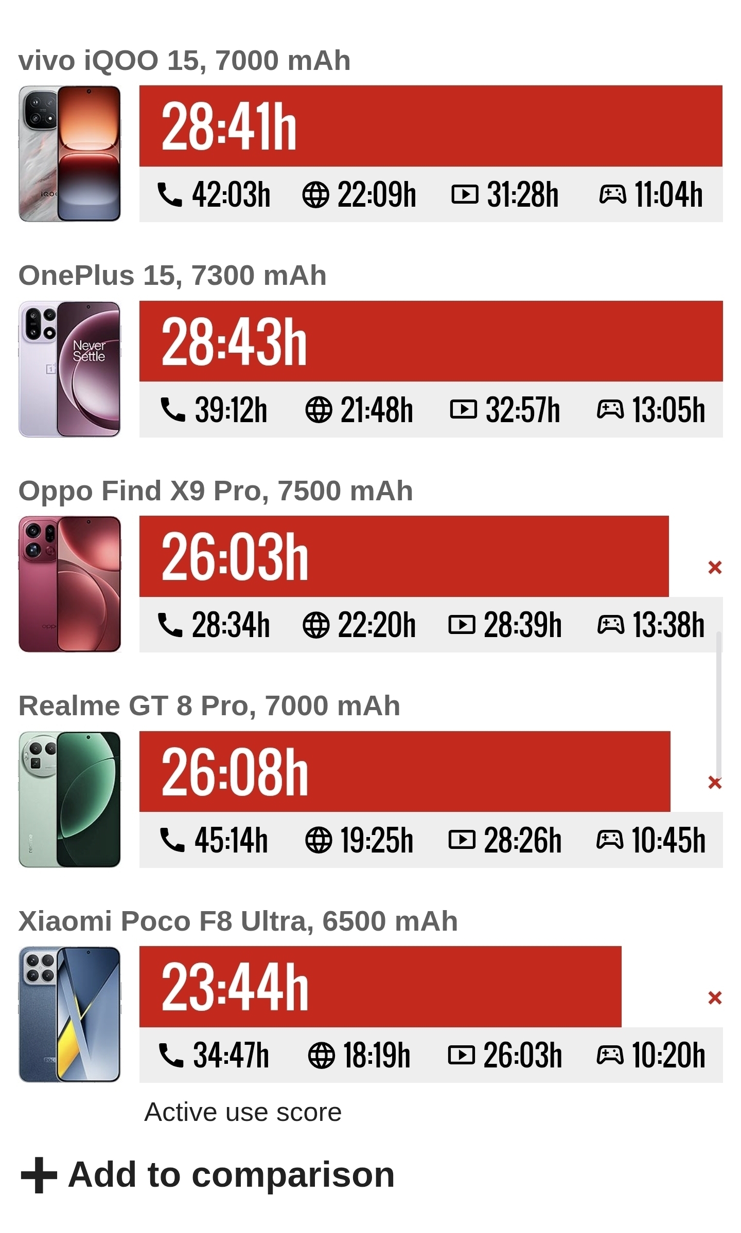 Iqoo15 kleinenster Akku und holt das meiste raus, laut GSMArena