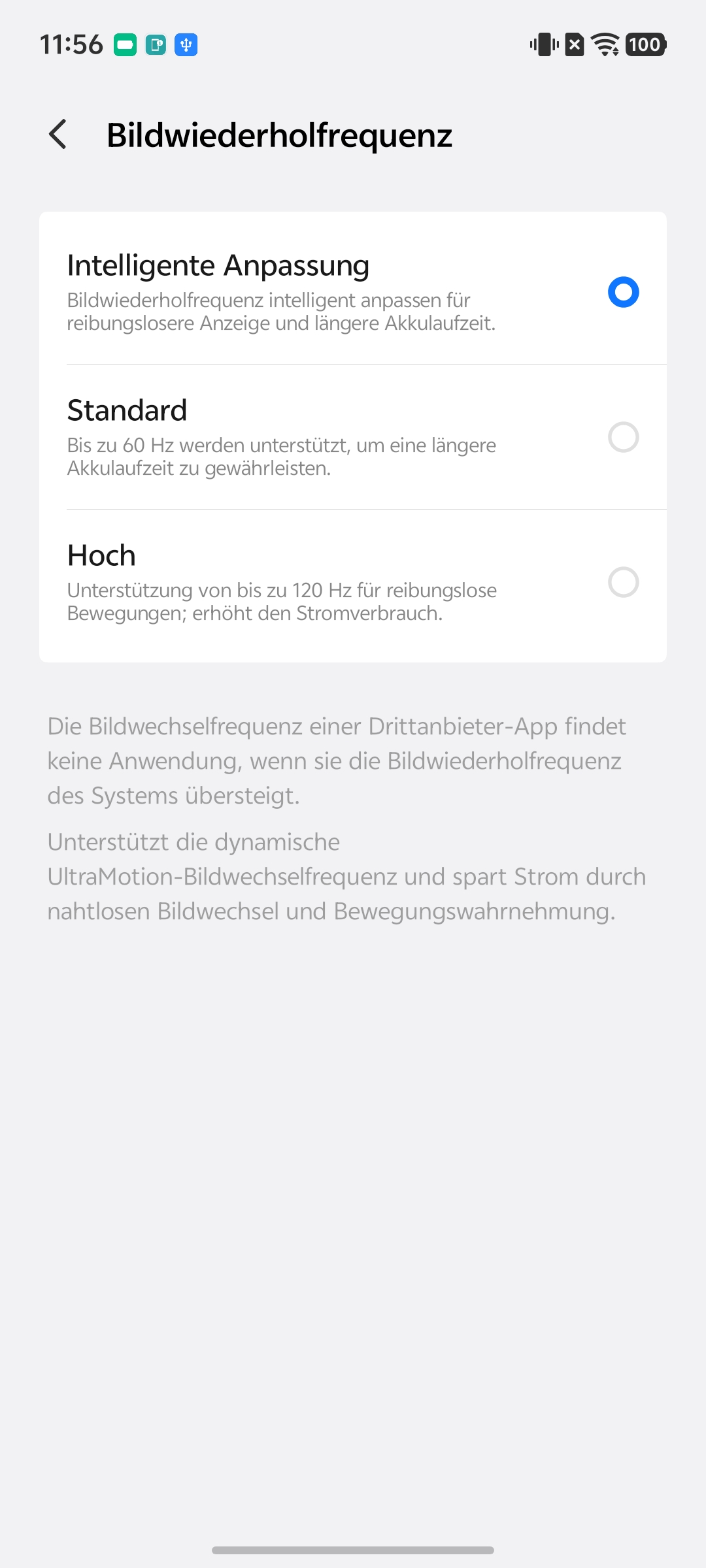 Im Vivo X300 Pro wurde ein 6,78 Zoll großes AMOLED-Panel mit 120 Hertz aus dem Hause BOE verbaut. Vivo setzt dabei auf ein LTPO-Panel, das zuverlässig und schnell zwischen 1 und 120 Hertz wechselt. Ihr könnt zwischen 2800 x 1260 Pixel und 2400 x 1080 Pixel wählen. Damit kommt ihr auf eine Pixeldichte von 453 bzw. 388 Pixel pro Zoll. Lasst die Einstellungen am besten auf Standard (intelligente Anpassung), denn im Alltag war die zusätzliche Schärfe nicht wirklich ersichtlich. Bei der Helligkeit verspricht Vivo 4.500 Lux Peak-Helligkeit. Bei unseren Messungen kamen wir jedoch nur auf max. 2.100 Lux. Diese werden auch nur sehr kurz erreicht. Durchschnittlich waren es 1.700–1.900 Lux.