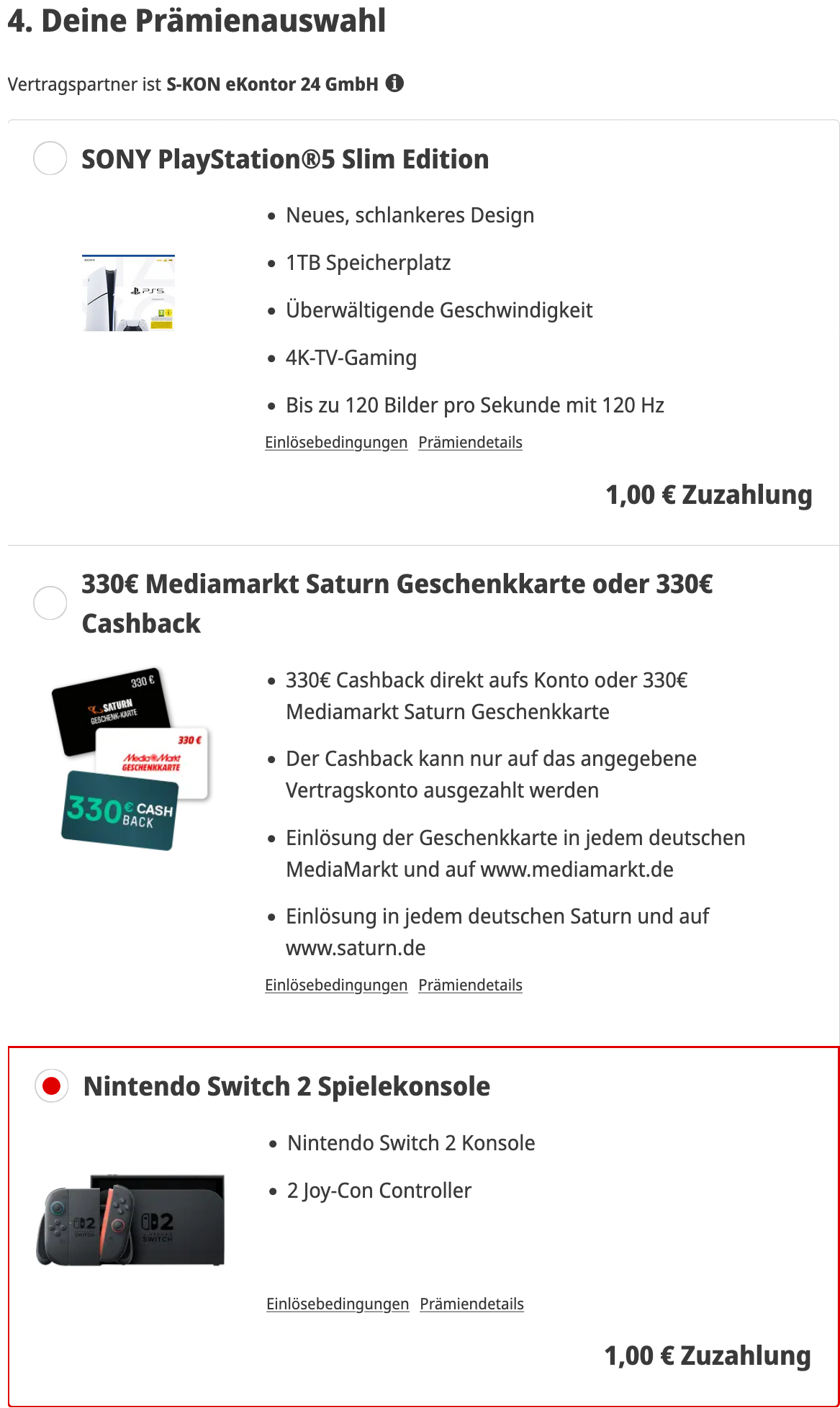Die alternativen Prämien – zum Beispiel eine Apple Watch 11 oder ein iPad Wi-Fi – fallen nicht ganz so attraktiv aus wie beim 600er-Tarif.