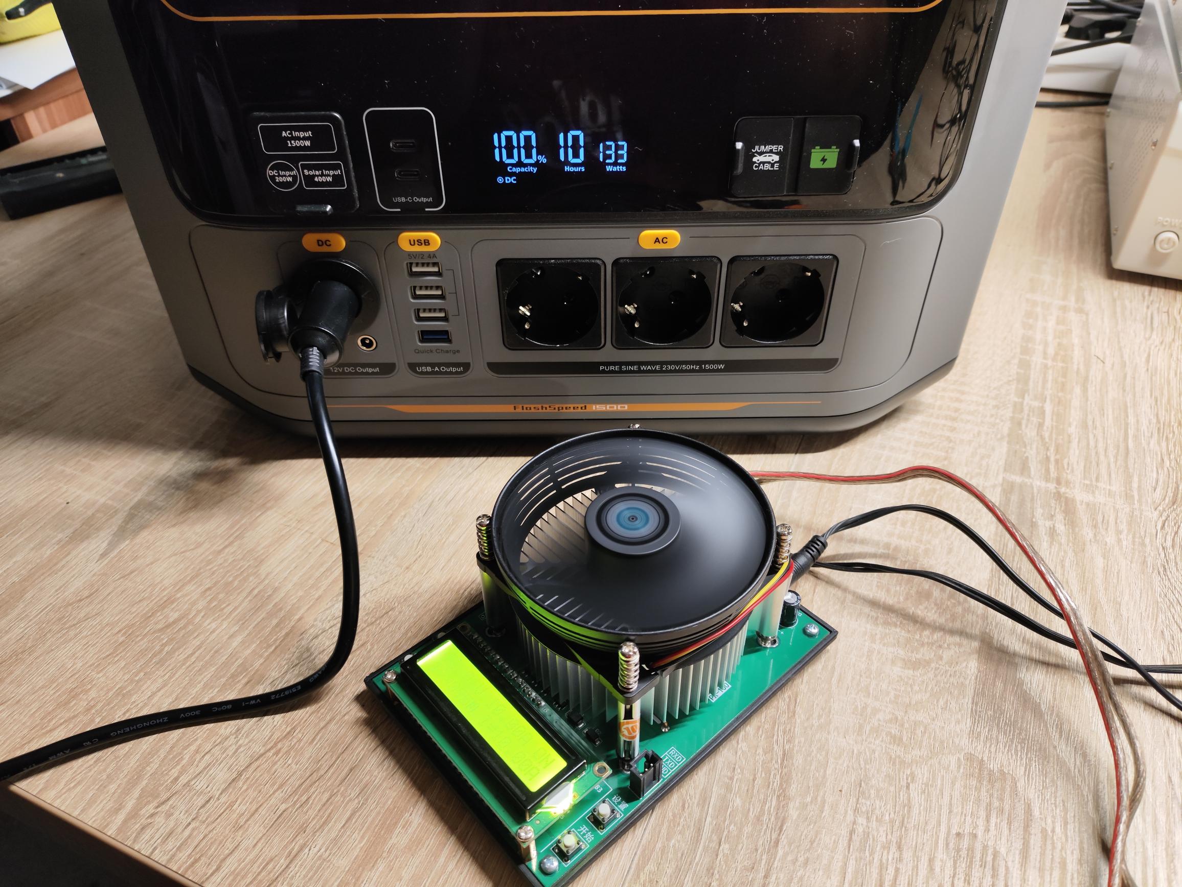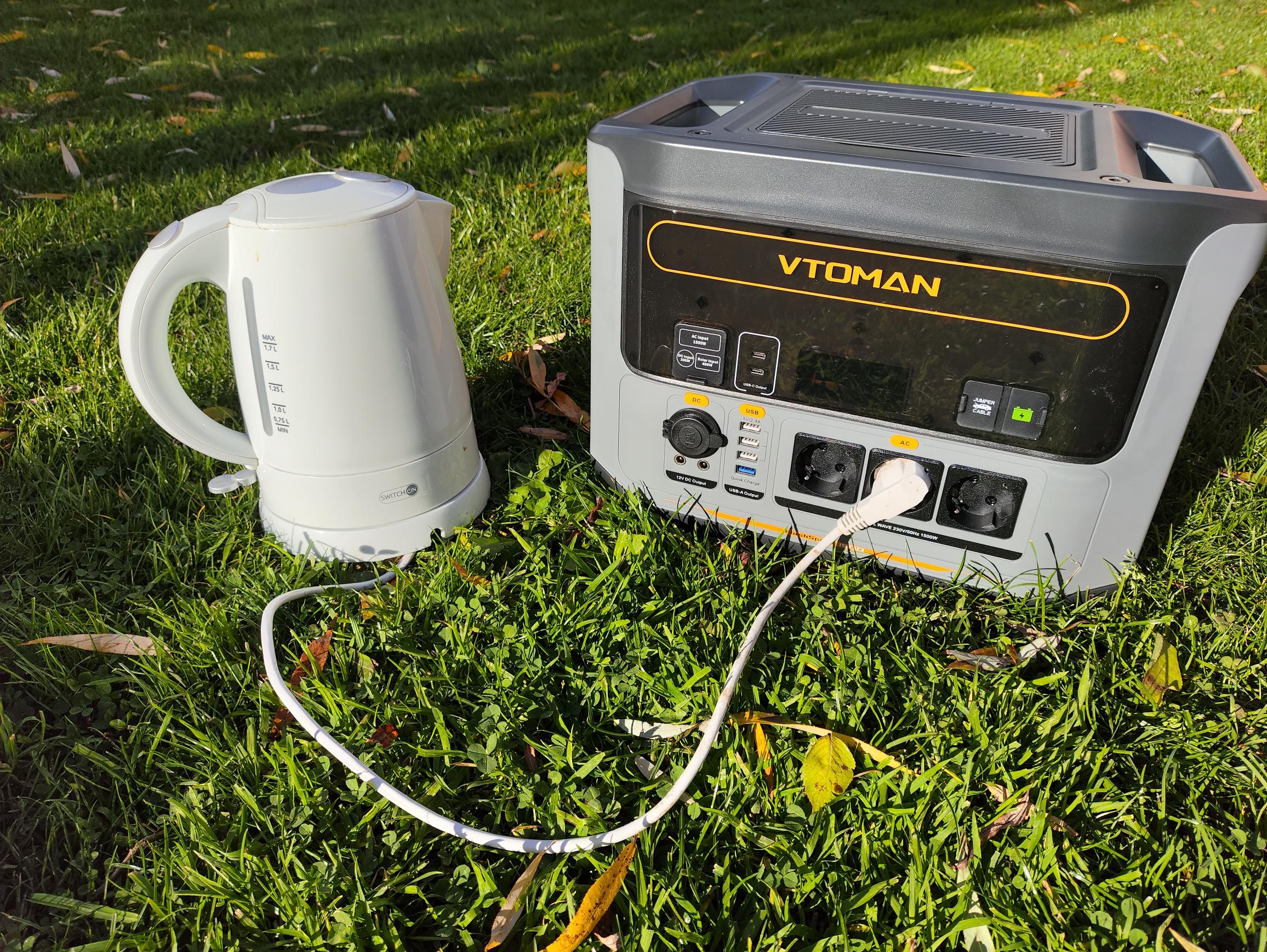 Die hohe Dauerleistung von 1.500W ermöglicht es, fast alle haushaltsüblichen Geräte zu versorgen. Selbst Geräte mit hohem Anlaufstrom (Kompressor, Trennschleifer, Kühlschränke) wurden anstandslos versorgt. Kurzzeitig (1-2 Sekunden) sind Spitzenleistungen von bis zu 3.000W möglich. Somit läuft auch unsere Gartenpumpe mit 1.800W Startleistung zuverlässig an. Wird die Ausgangsleistung von 1.500W überschritten, schaltet die Powerstation nicht ab. Sie belässt die Ausgangsleistung auf maximal 1.530W und versorgt eure Geräte mit reduzierter Ausgangsspannung weiter. Dieser Modus funktioniert mit allen einfachen, ungeregelten Geräten (vornehmlich Wärmeerzeuger). Somit kocht unser 2.000W Wasserkocher mit reduzierter Leistung und benötigt lediglich etwas mehr Zeit. Geräte mit 230V Schaltnetzteil, die auf eine stabile Eingangsspannung angewiesen sind, sollten nicht im Überlast-Betrieb verwendet werden.