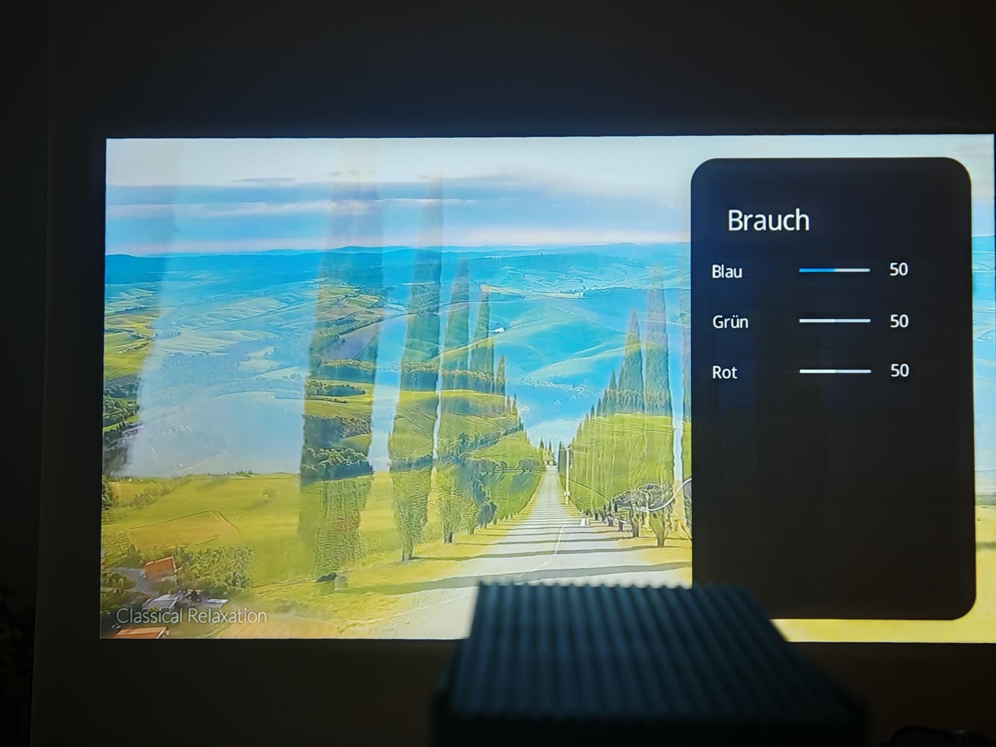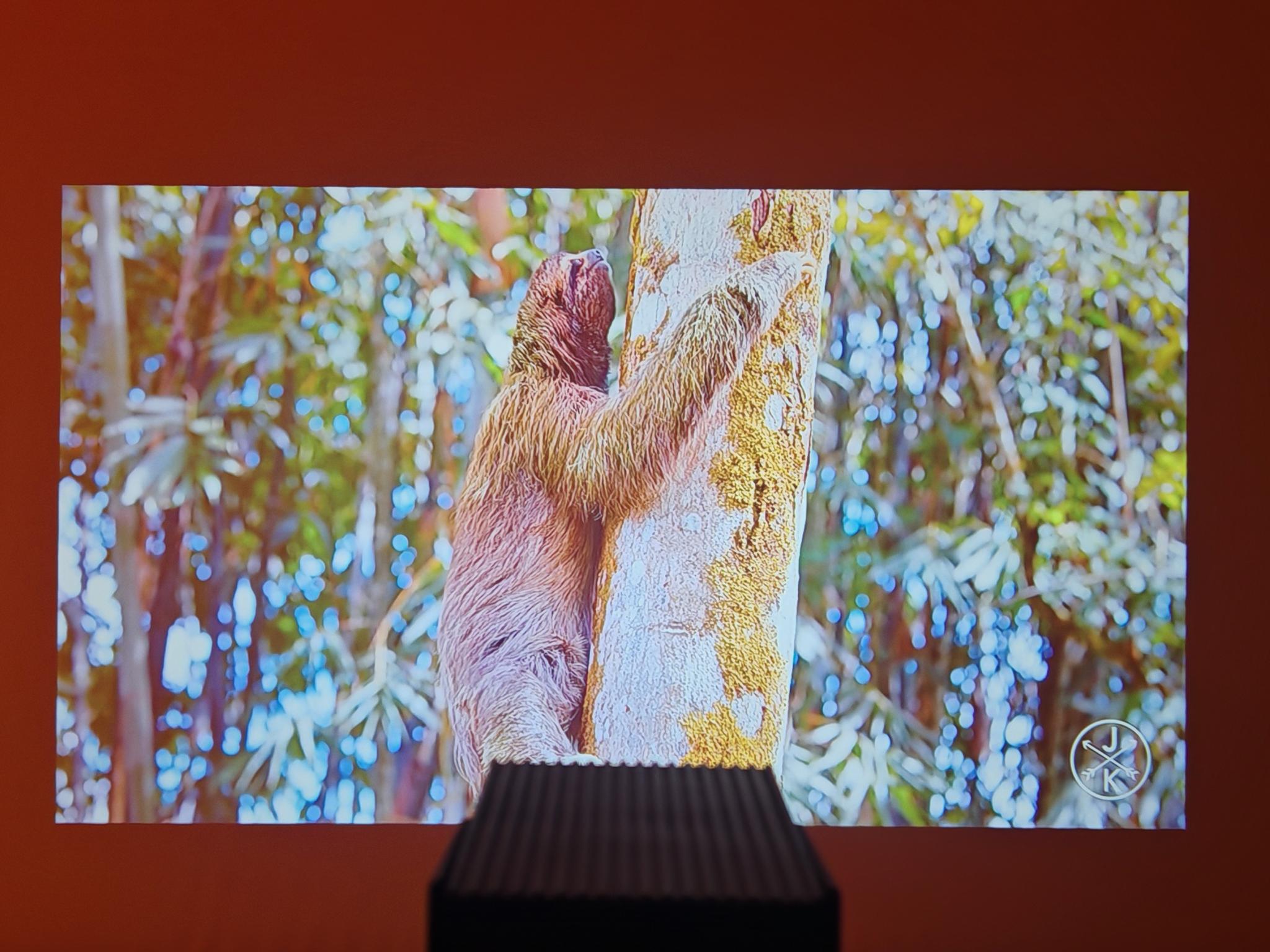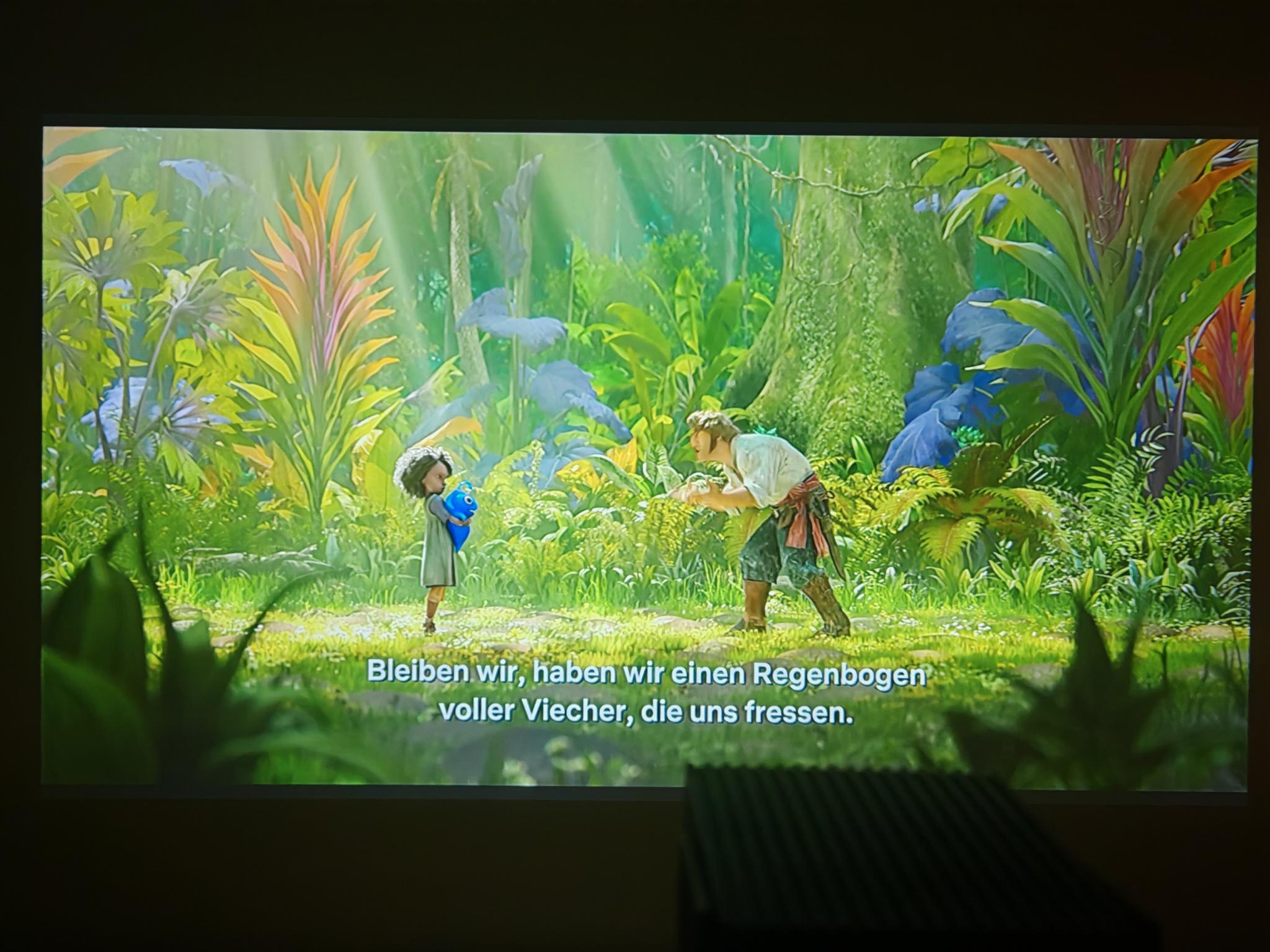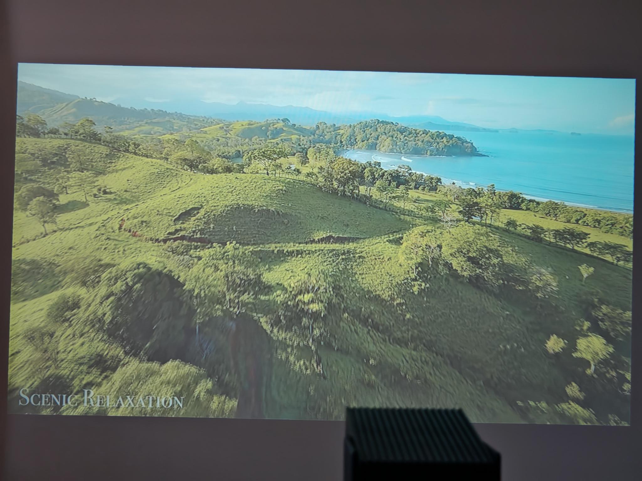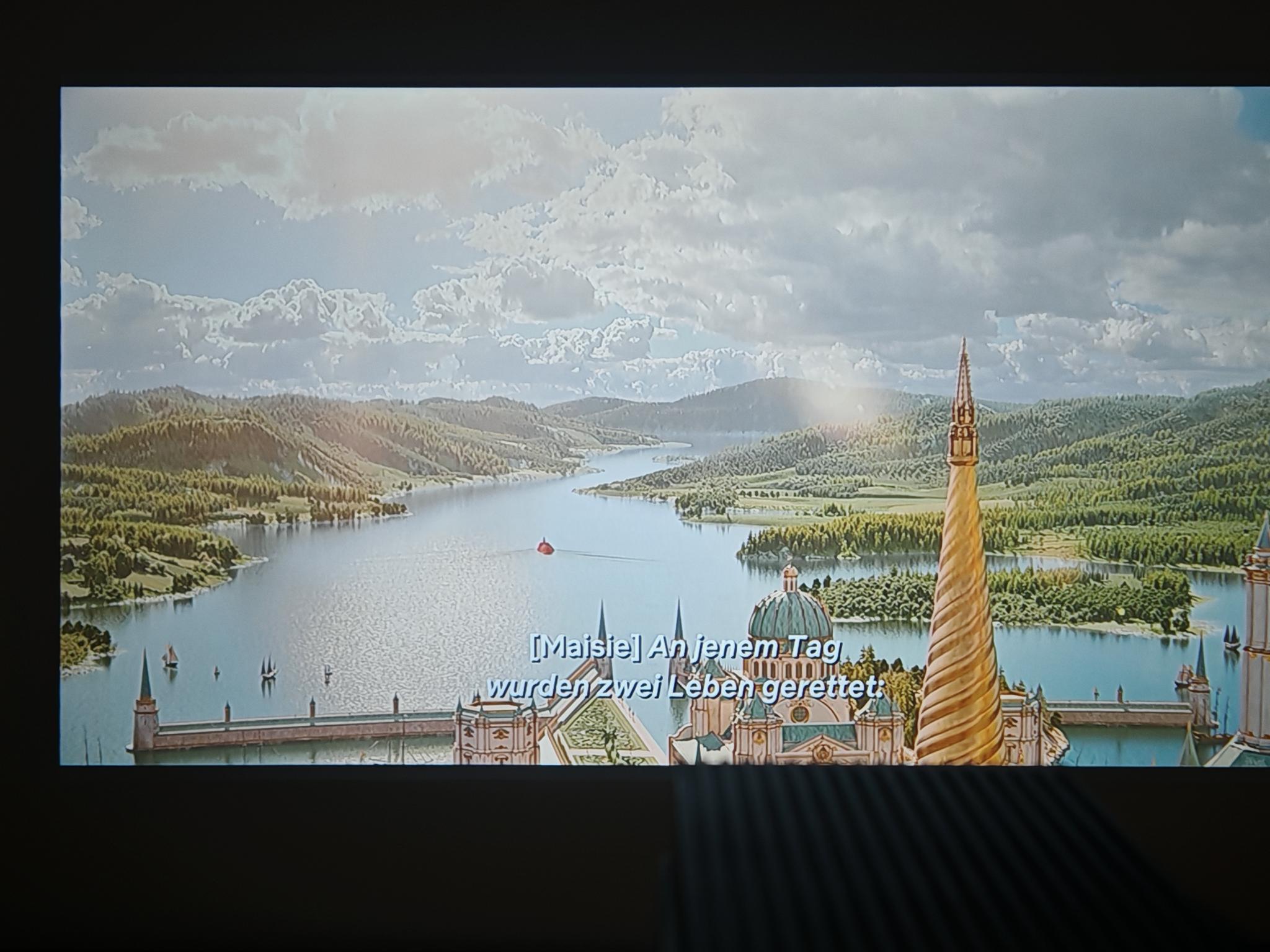 Nach der Bildeinstellung liefert der Wanbo Cube 2 Pro eine recht lebendige, helle und ansehnliche Projektion. Bei dunklen Bereichen schafft der Beamer es leider nicht, ein sattes Schwarz darzustellen. Ungünstigerweise sieht man bei Videos in heller Umgebung, dass das Bild recht ungleichmäßig ausgeleuchtet ist. Dies fällt erst auf, wenn ihr die Ecken im Vergleich zur Bildmitte genauer betrachtet. Sollten euch die Farbeinstellungen des Beamers nicht gefallen, könnt ihr über Farbprofile und die manuelle Einstellung noch einiges nachregeln. Ich persönlich fand die „Standard“-Bildeinstellung beim Cube 2 Pro am natürlichsten.