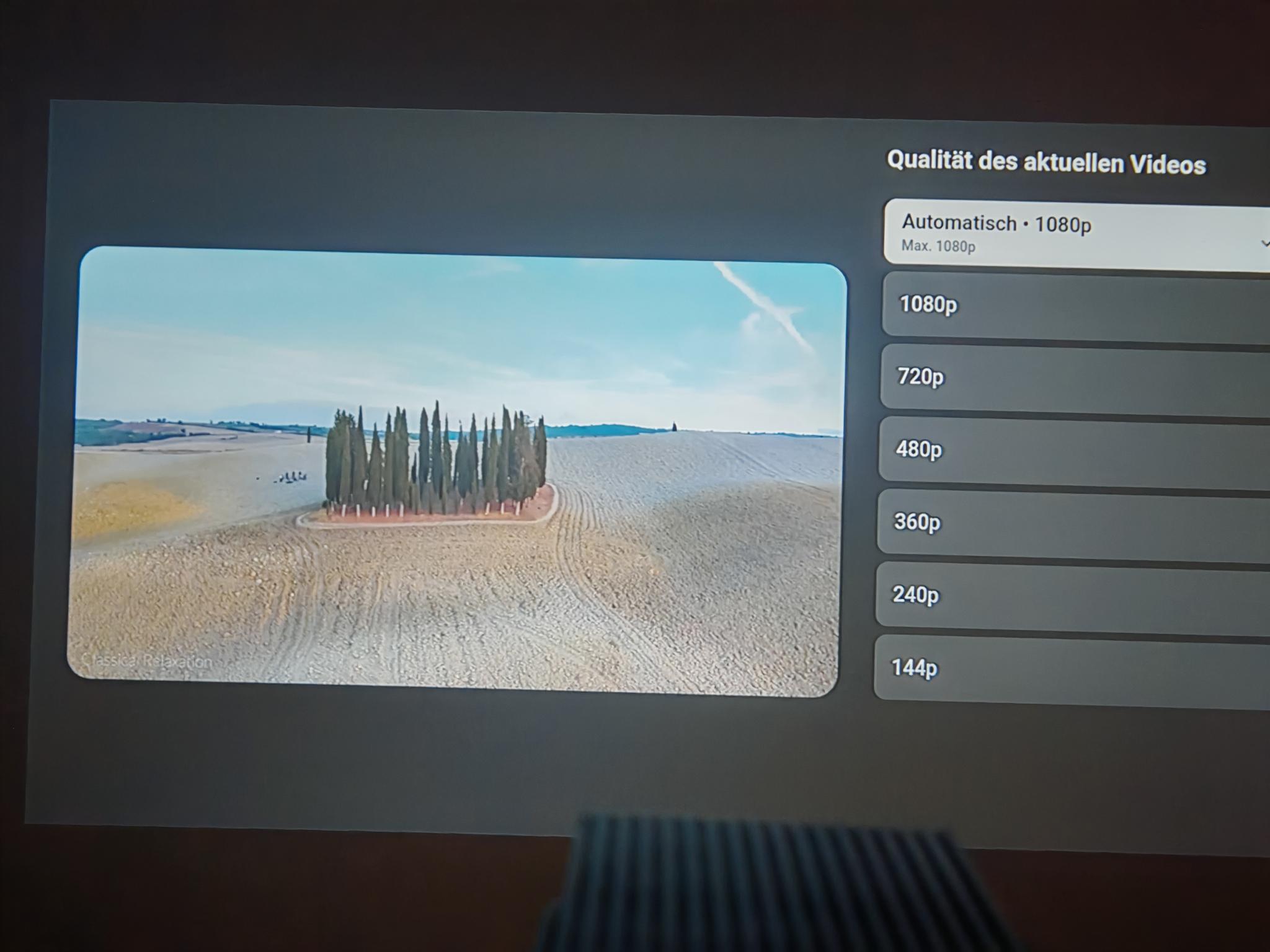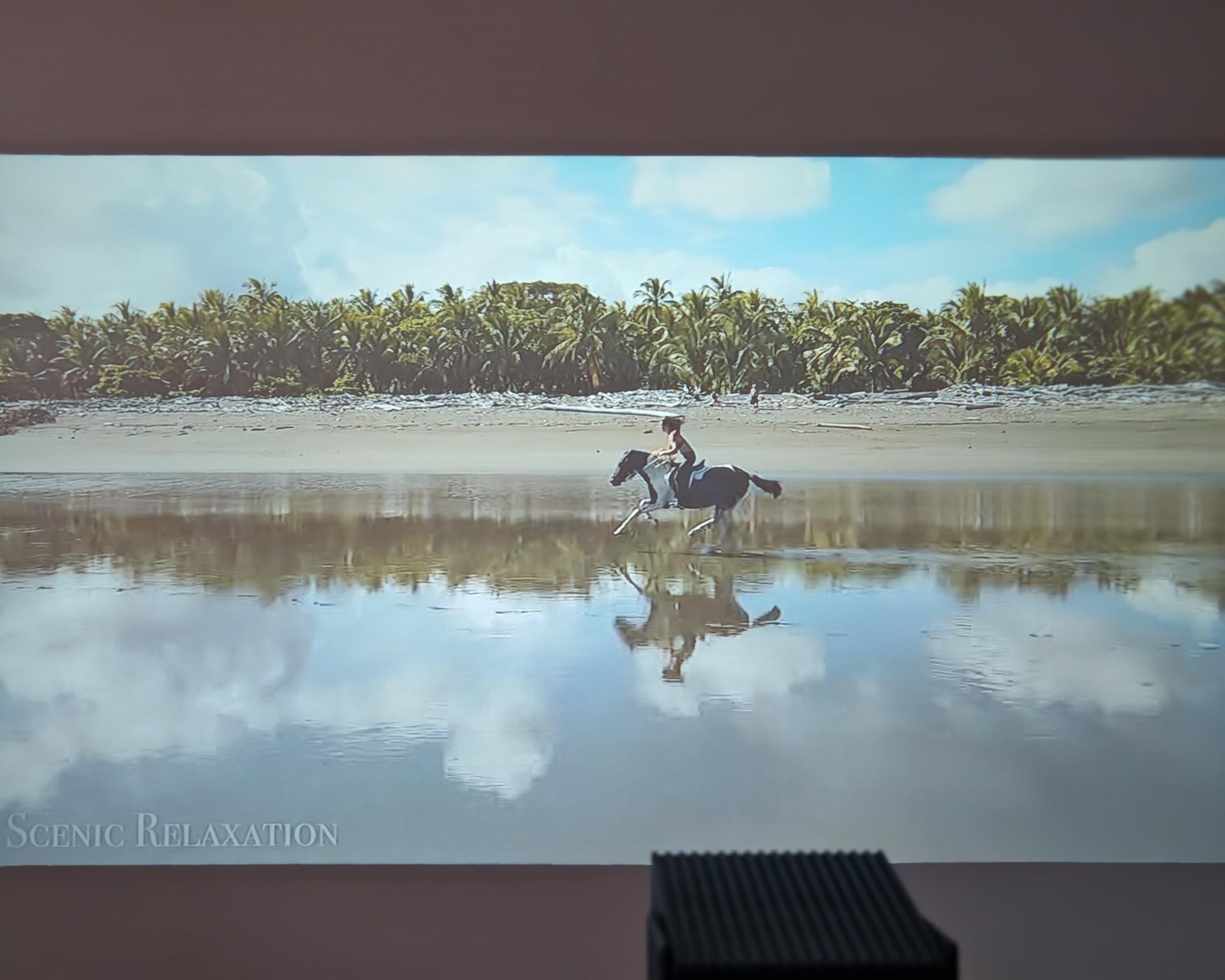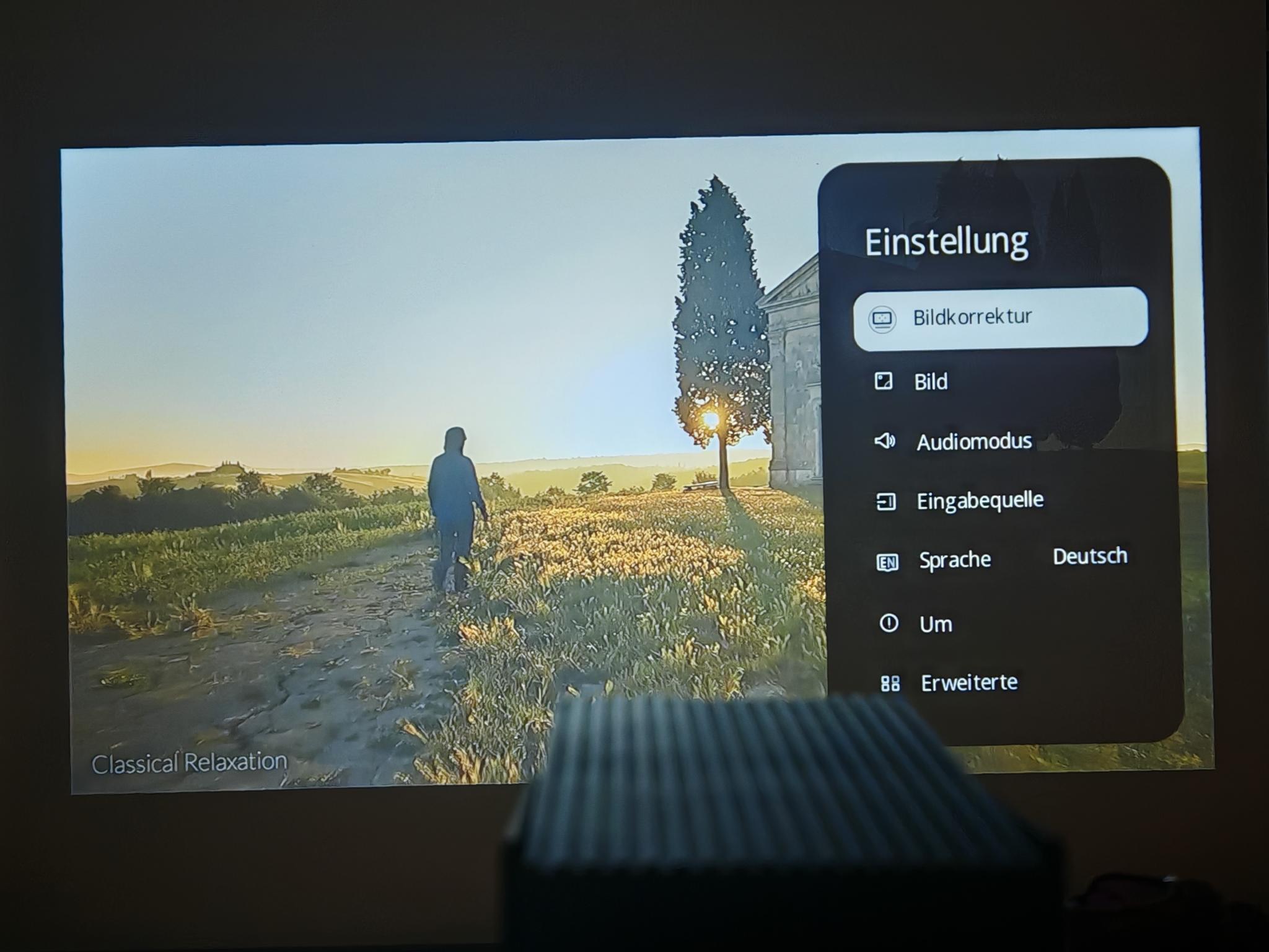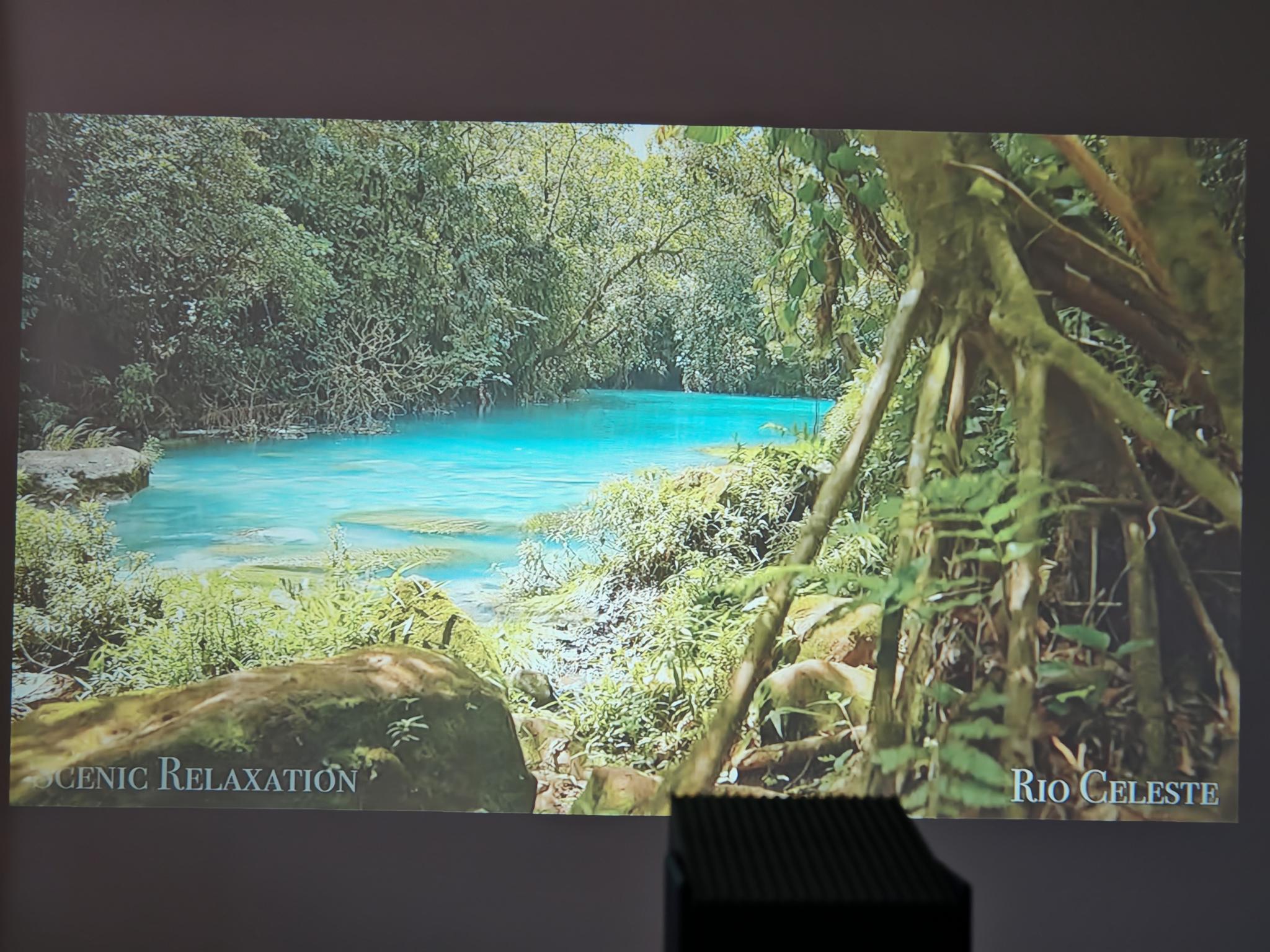Nach der Bildeinstellung liefert der Wanbo Cube 2 Pro eine recht lebendige, helle und ansehnliche Projektion. Bei dunklen Bereichen schafft der Beamer es leider nicht, ein sattes Schwarz darzustellen. Ungünstigerweise sieht man bei Videos in heller Umgebung, dass das Bild recht ungleichmäßig ausgeleuchtet ist. Dies fällt erst auf, wenn ihr die Ecken im Vergleich zur Bildmitte genauer betrachtet. Sollten euch die Farbeinstellungen des Beamers nicht gefallen, könnt ihr über Farbprofile und die manuelle Einstellung noch einiges nachregeln. Ich persönlich fand die „Standard“-Bildeinstellung beim Cube 2 Pro am natürlichsten.
