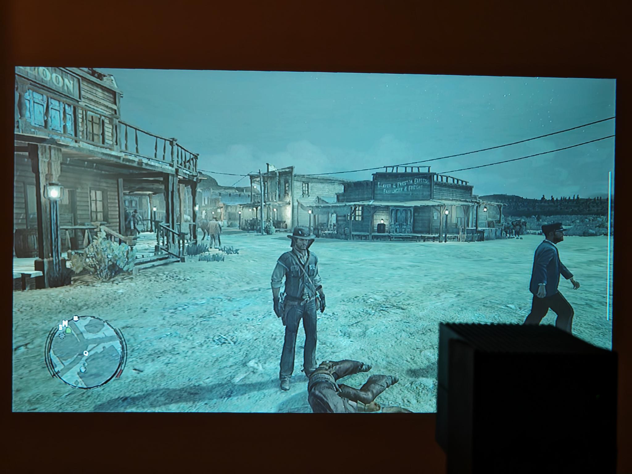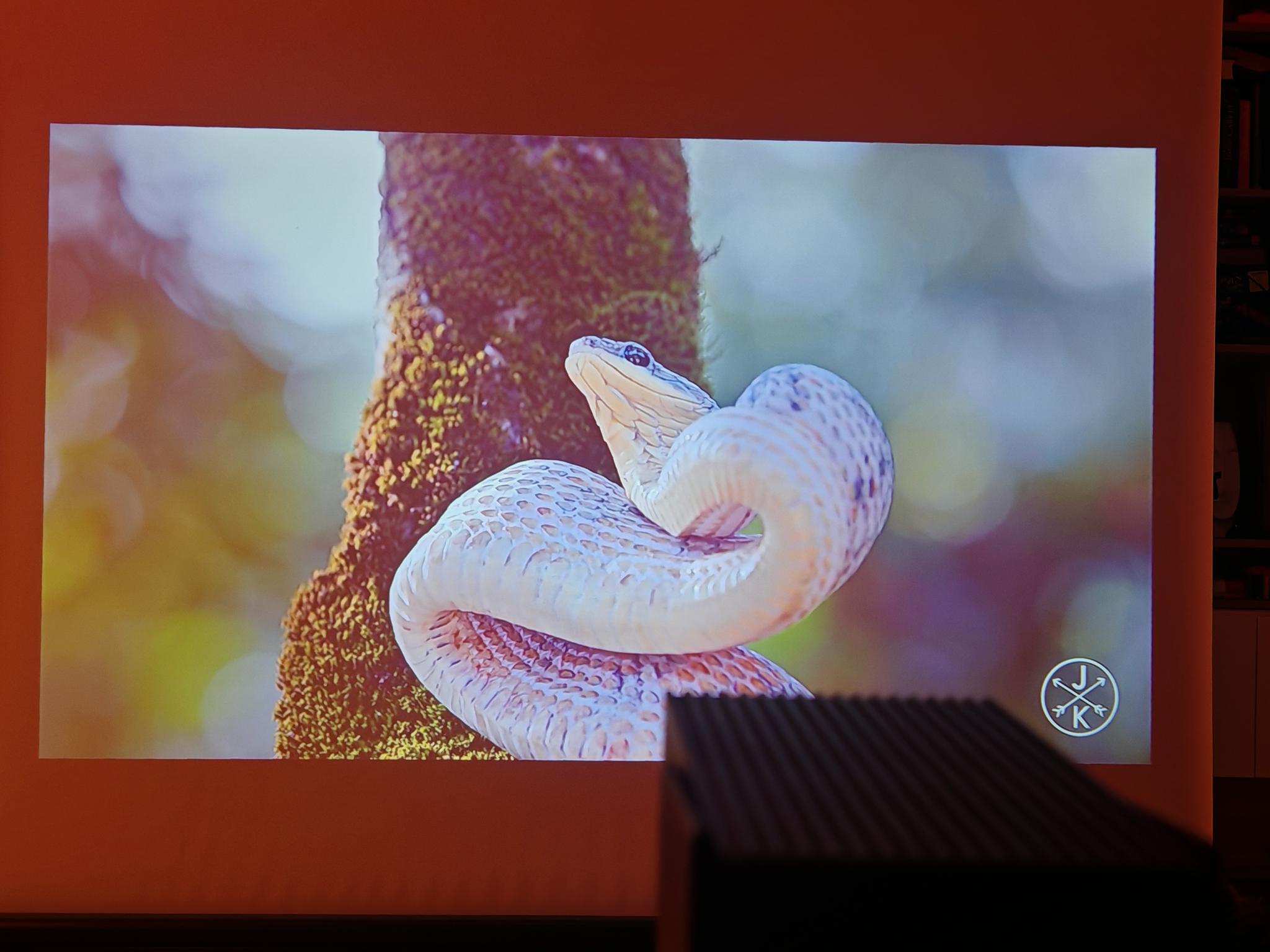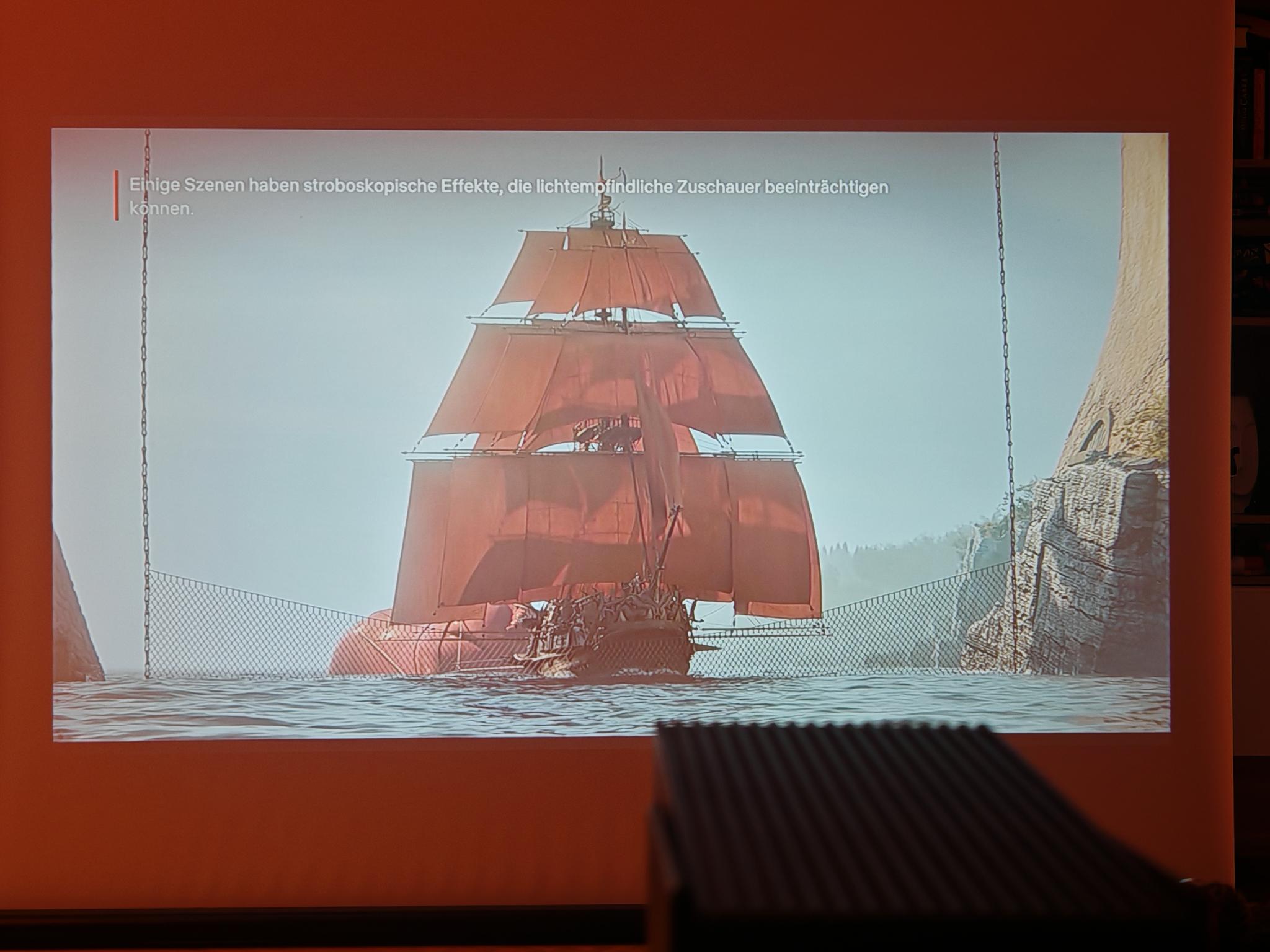 Bei Tageslicht kann ich den Beamer jedoch nicht empfehlen, es sei denn, ihr benötigt ihn für eine behelfsmäßige 50-Zoll-Projektion. Je heller der Raum ist, desto mehr zeigen sich die Probleme des Beamers mit der recht ungleichmäßigen Ausleuchtung.