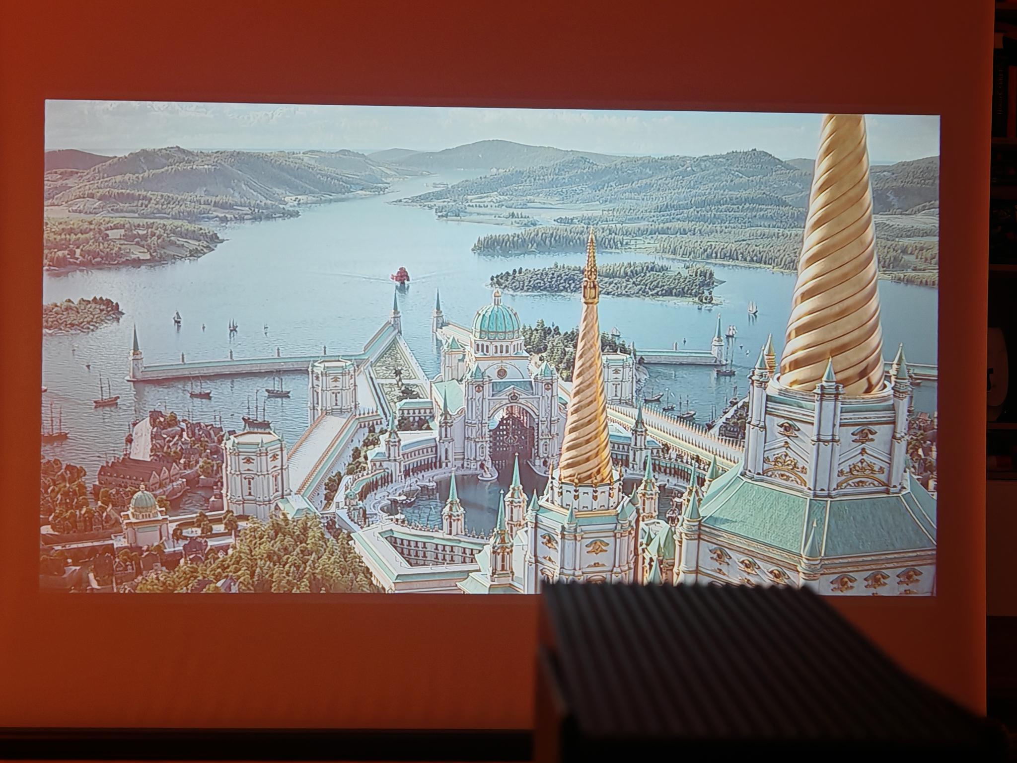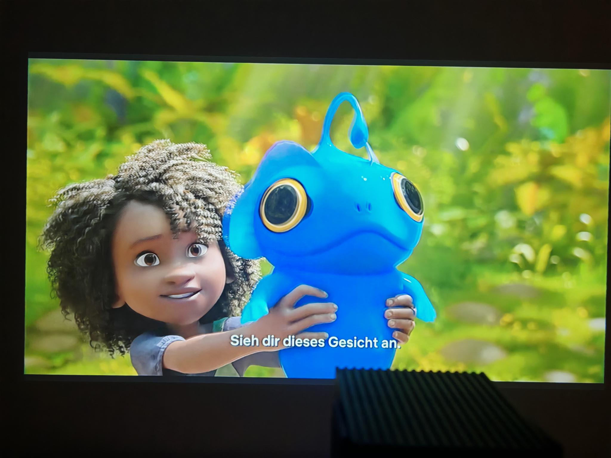 Der Wanbo Cube 2 Pro hat eine spürbare Eingabeverzögerung, wenn der „Gaming“-Modus nicht aktiviert ist. Schaltet ihr diesen an, werden Kamerafahrten oder schnellere Bewegungen schön flüssig ausgegeben. Dadurch eignet sich der Beamer auch für Spiele von anderen Endgeräten.