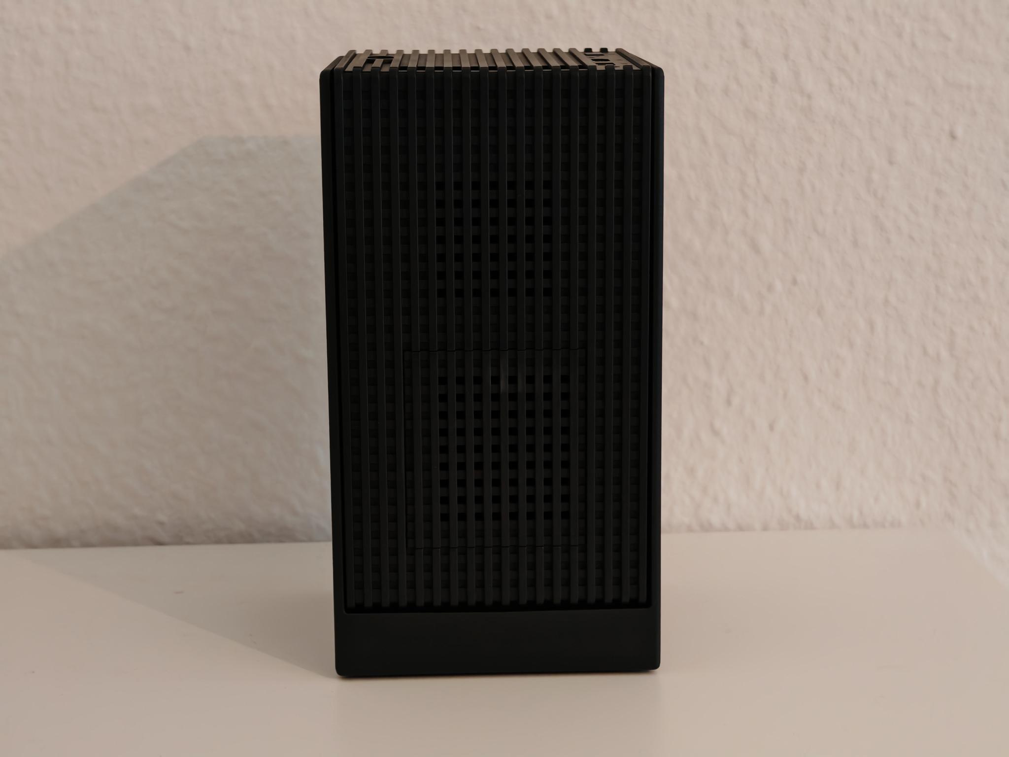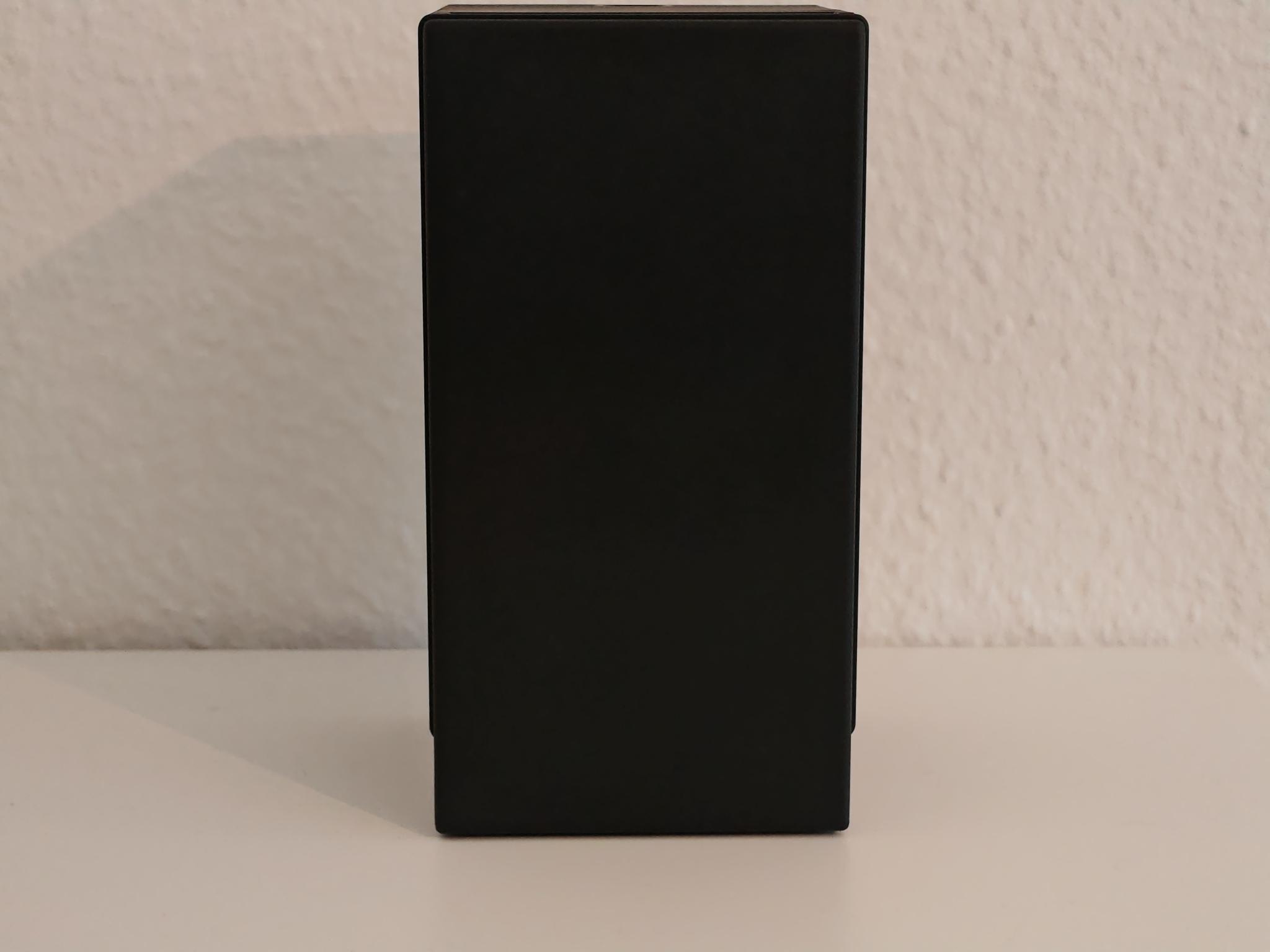 Die Abluft leitet das Gerät gezielt nach hinten ab. So bläst warme Luft Zuschauer hinter dem Beamer an. Die Seiten des Beamers sind weitestgehend unauffällig. Rechts befindet sich der Wanbo-Slogan „Enjoy The Unlimited“. Den 8W-Lautsprecher und die Anschlüsse verbaut Wanbo beim Cube 2 Pro auf der Rückseite (im ausgeklappten Zustand). Dort befinden sich ein Netzanschluss, ein Power-Button, eine Status-LED, ein HDMI-Eingang, ein USB-A-Port und ein Kopfhörerausgang. Ein Betrieb mit Powerbank ist durch den Netzanschluss leider nicht möglich. Auf der Unterseite des Beamers befinden sich ein 1/4-Zoll-Gewinde und vier Gummifüße.