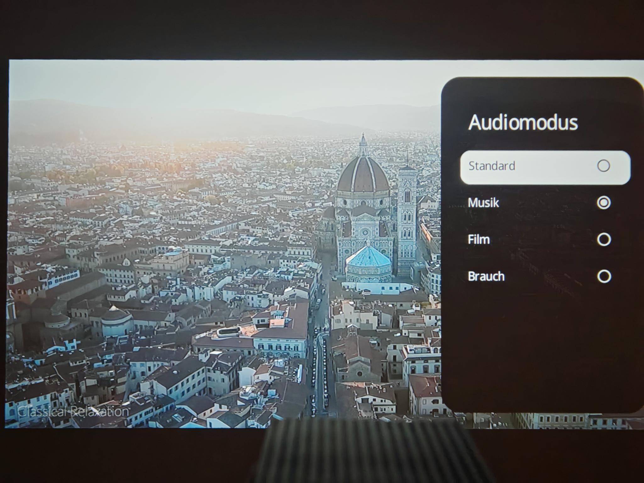 Beim Cube 2 Pro wirbt Wanbo mit einem 8W-Vollspektrumlautsprecher. Dieser klingt in der Standard-Einstellung für die Beamergröße bereits ganz gut, hat aber wenig Tiefe. Das ändert sich jedoch mit dem Soundmodus „Musik“. Dann klingen die Tiefen und Höhen etwas besser. Dennoch solltet ihr keine zu hohen Erwartungen an den Lautsprecher des Cube 2 Pro haben. Er ist für kurze Videos brauchbar, für Filmabende würde ich aber einen Bluetooth-Lautsprecher empfehlen.