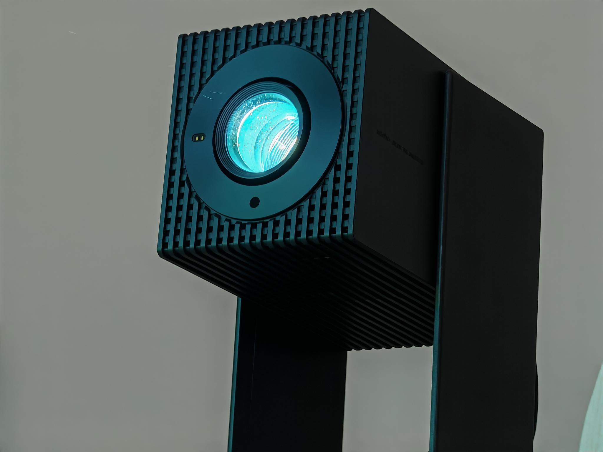 Das Design des Wanbo Cube 2 Pro bestimmt vor allem das eckige, streifige Stativ. Der Ständer ist, wie bei der XGIMI MoGo 3- und 4-Reihe, rotierbar, sodass die Linse im Gegensatz zum Wanbo T2 Ultra durch das Gehäuse geschützt ist. Durch das drehbare Design sind sogar Deckenprojektionen möglich. Mit Abmessungen von 113 x 111 x 212 Millimeter und einem Gewicht von 1,4 Kilogramm ist der Beamer recht handlich und lässt sich locker mit einer Hand tragen. Er ist in den Farbvarianten Nachtschwarz, Beigegrün und Weiß erhältlich. Im Werbevideo präsentiert Wanbo zwei weitere Farben, die (noch) nicht bestellbar sind: Orange und Pink.