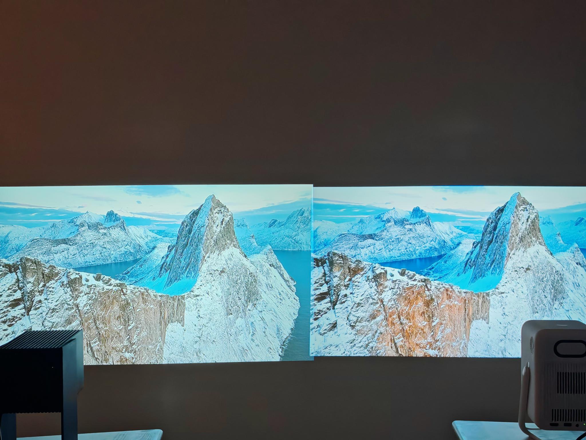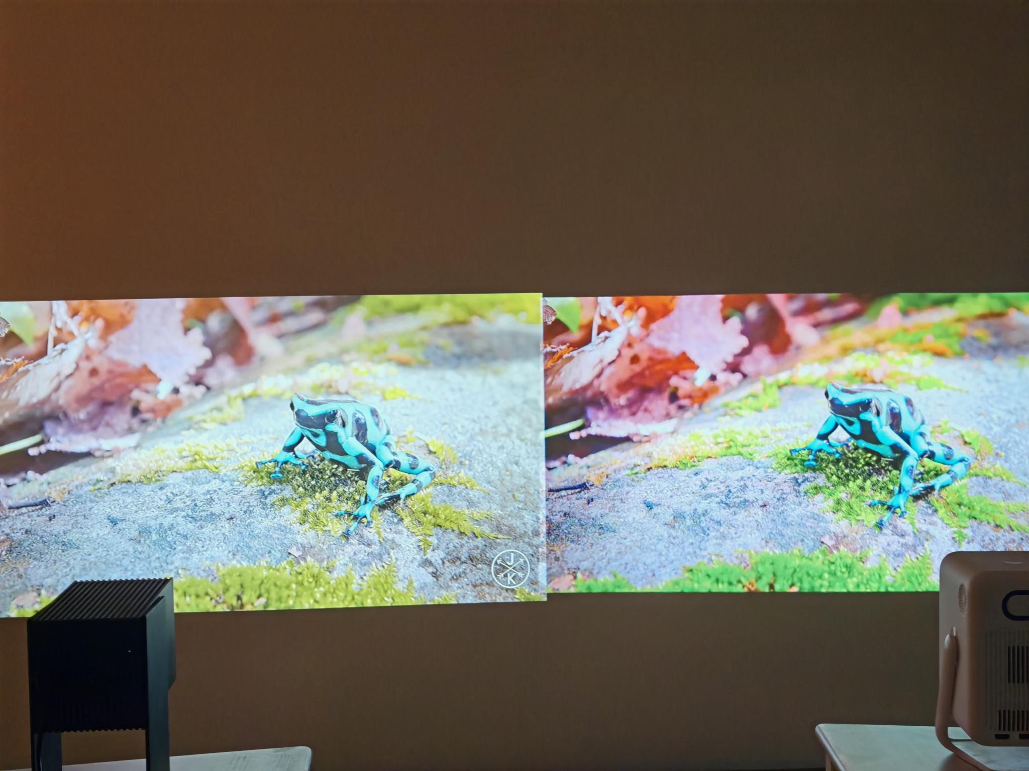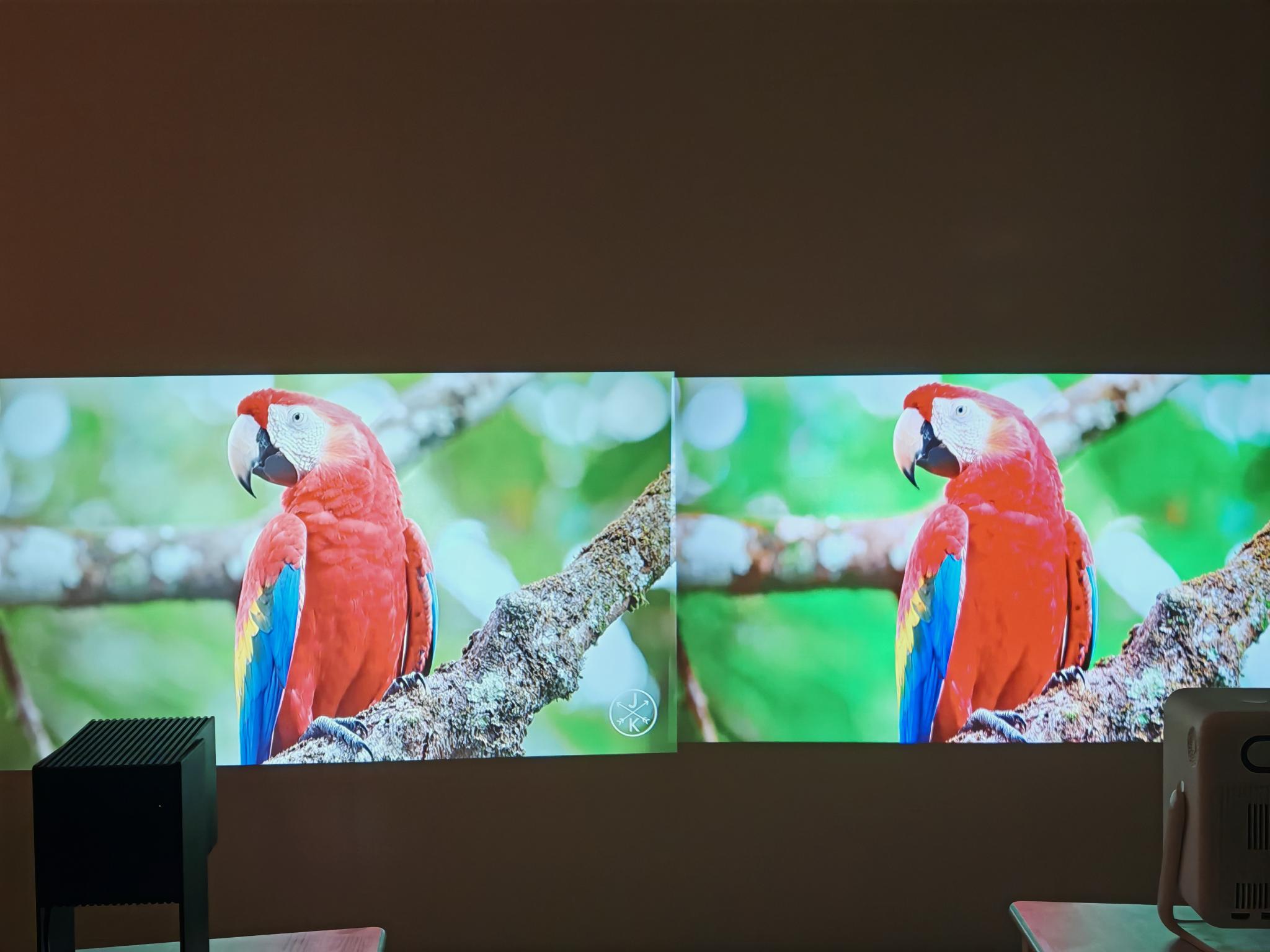 Im Vergleich des kürzlich getesteten, etwas teureren und weniger kompakten Wanbo T2 Ultra mit dem Cube 2 Pro zeigt sich, dass das Vergleichsmodell nach wie vor der Preis-Leistungs-Sieger unter den kompakten Beamern bis 200€ bleibt. Die Projektion des T2 Ultra wirkt von den Farben her natürlicher, viel gesättigter und etwas schärfer. Bei der Helligkeit liegen die Beamer gleichauf (Wanbo T2 Ultra mit angegebenen 500 ANSI-Lumen – gemessen: 250 ANSI-Lumen). Gelegentlich wirkten Objekte beim Wanbo T2 Ultra etwas überbelichtet. Auch bei Schwarzwerten und bei hohen Kontrasten wirkt das Bild des Cube 2 Pro schwächer.