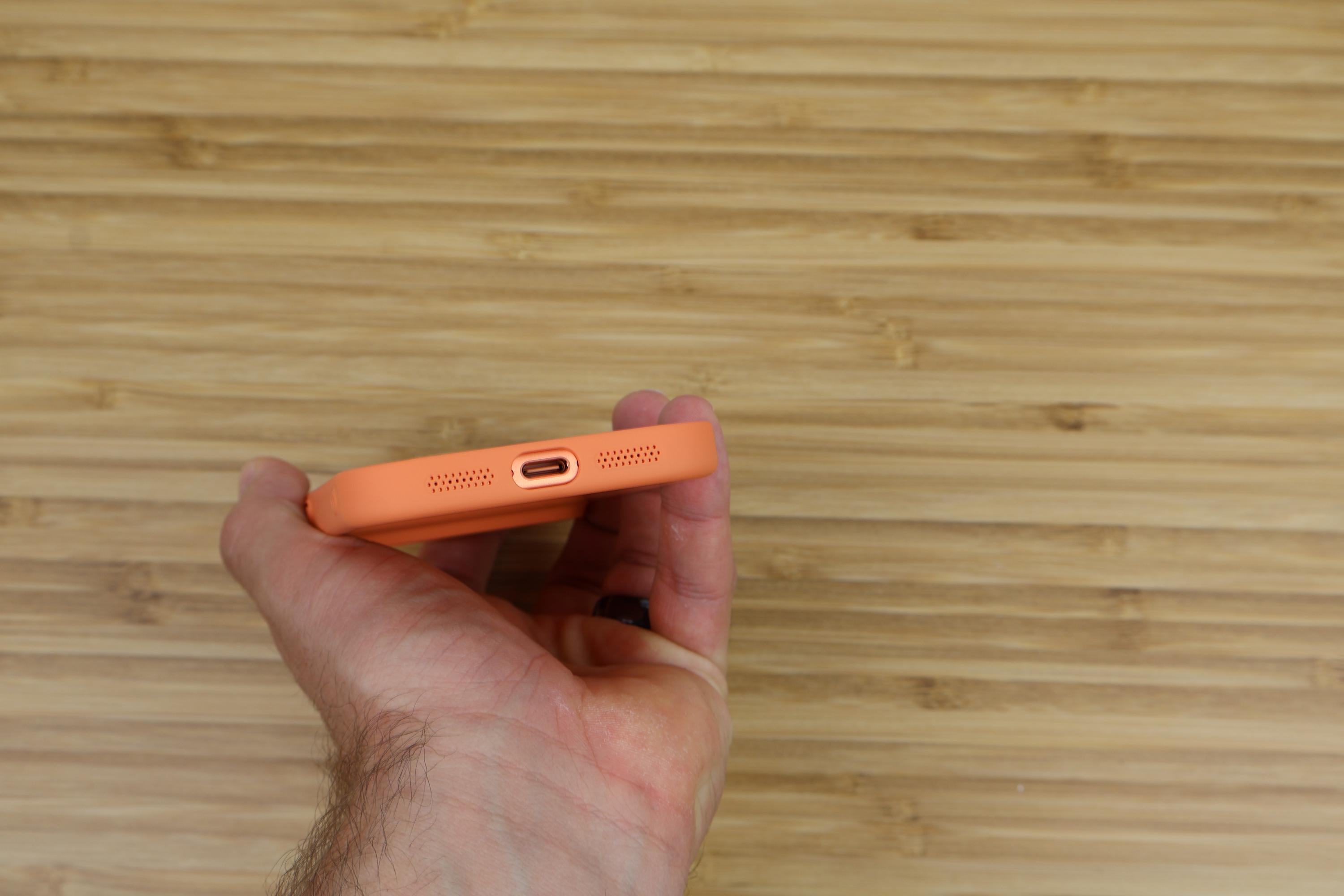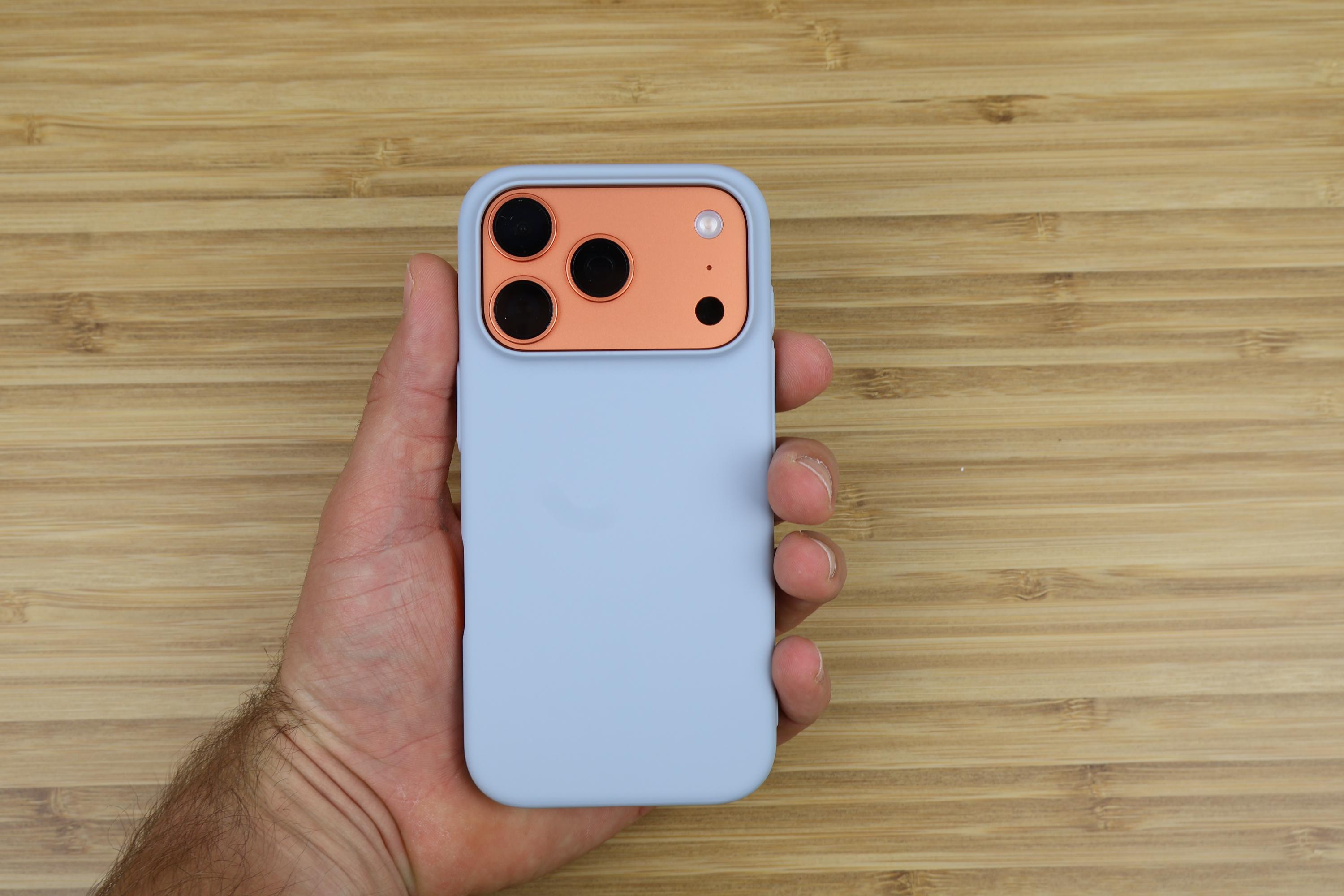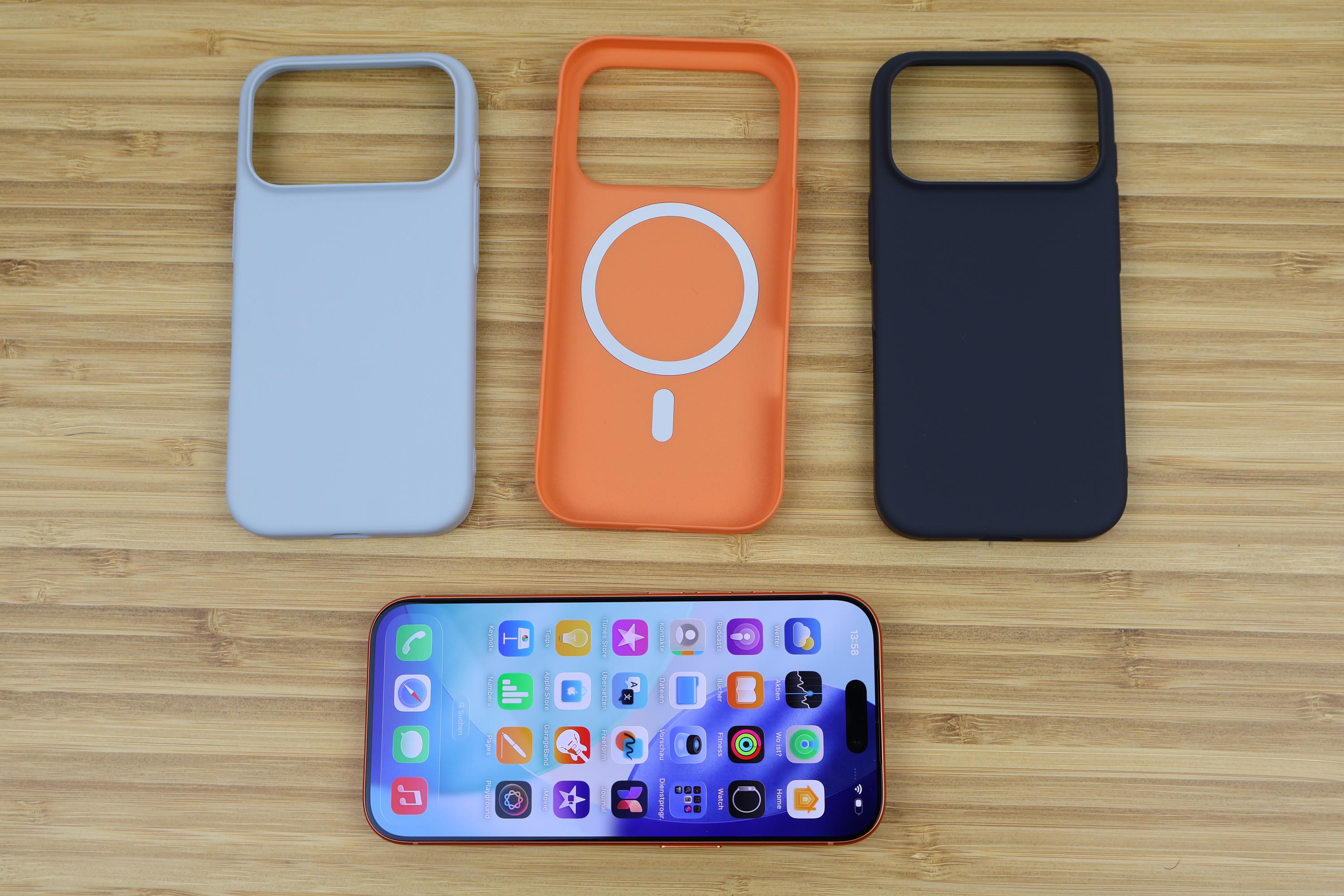 Gemessen haben wir 8,7mm Gerätehöhe ohne Hülle und 10,0mm mit Hülle, was einem Auftragsmaß von etwa 1,3mm entspricht. Das iPhone bleibt dadurch schlank und liegt angenehm in der Hand. Die Oberfläche ist matt-seidig und wirkt wertig; verfügbar sind folgende 3 Farben: