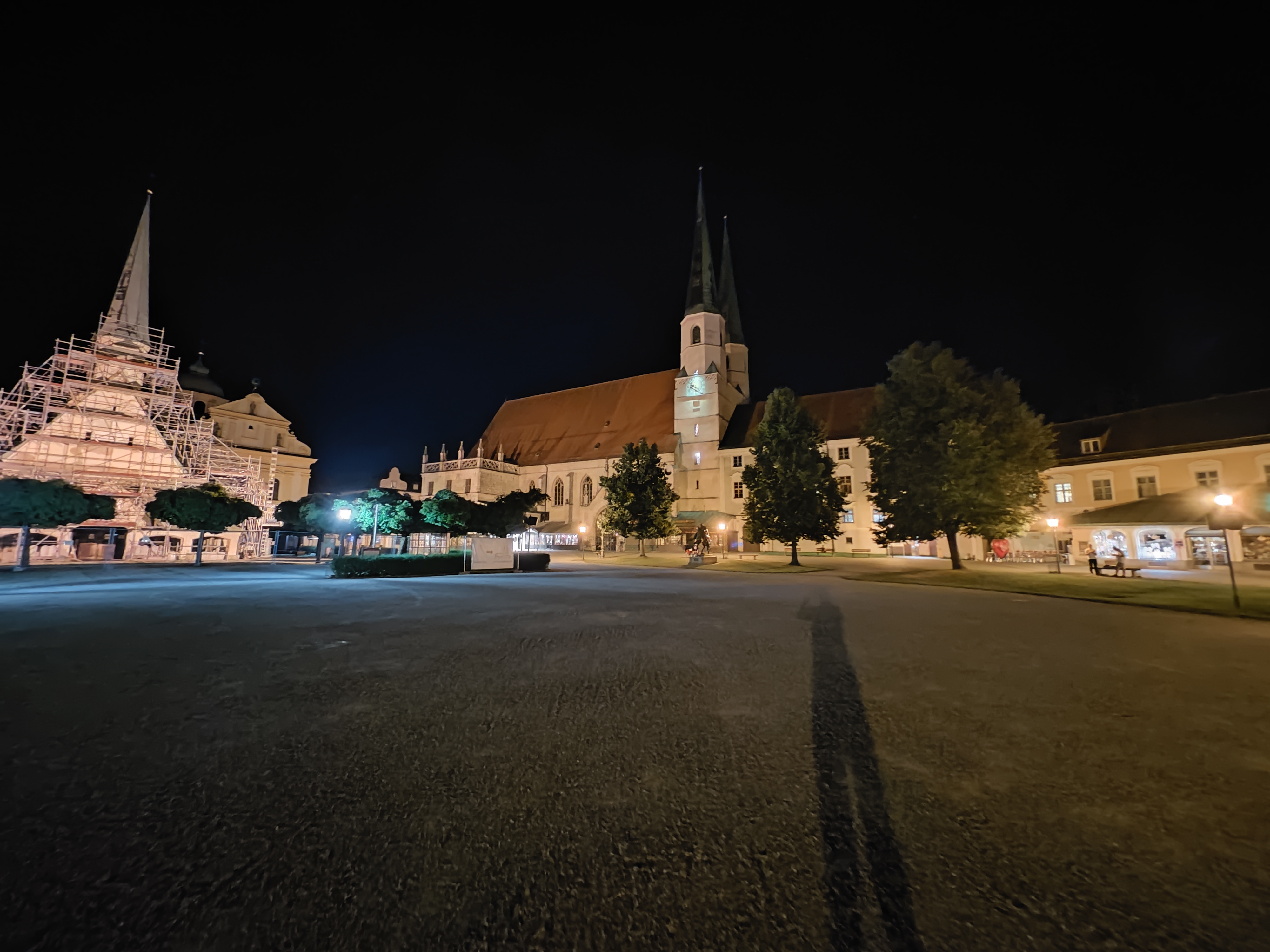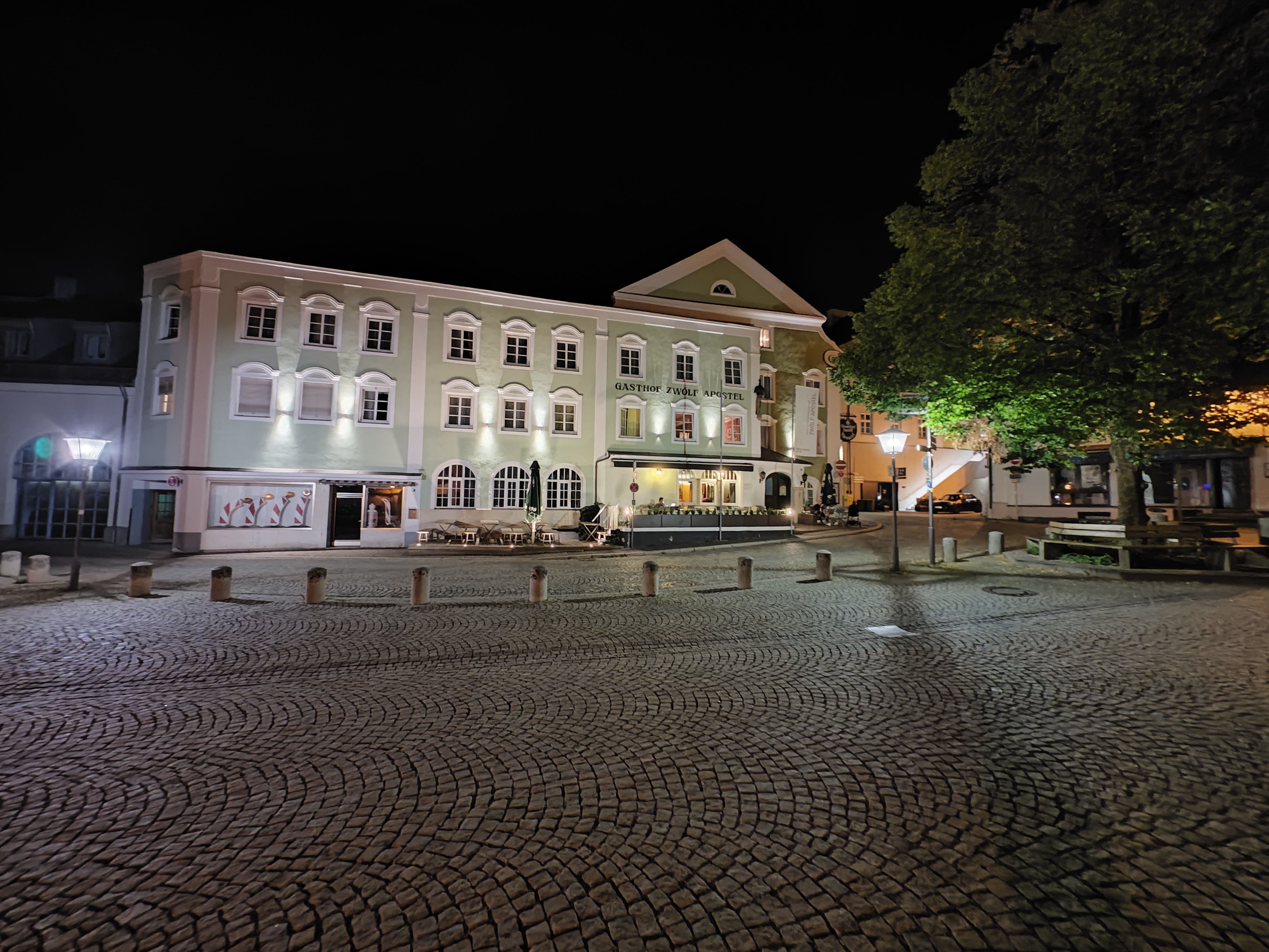 Natürlich kann man bei Nacht auch wieder die UWW- und Zoom-Kamera nutzen. Das geht allerdings definitiv mit einem deutlichen Qualitätsverlust einher. Bei der UWW-Kamera zeigen sich an den Rändern eine deutliche Unschärfe und die Details nehmen rapide ab. Auch farblich passen die Aufnahmen gar nicht mehr zur Hauptkamera und verlieren an Sättigung.