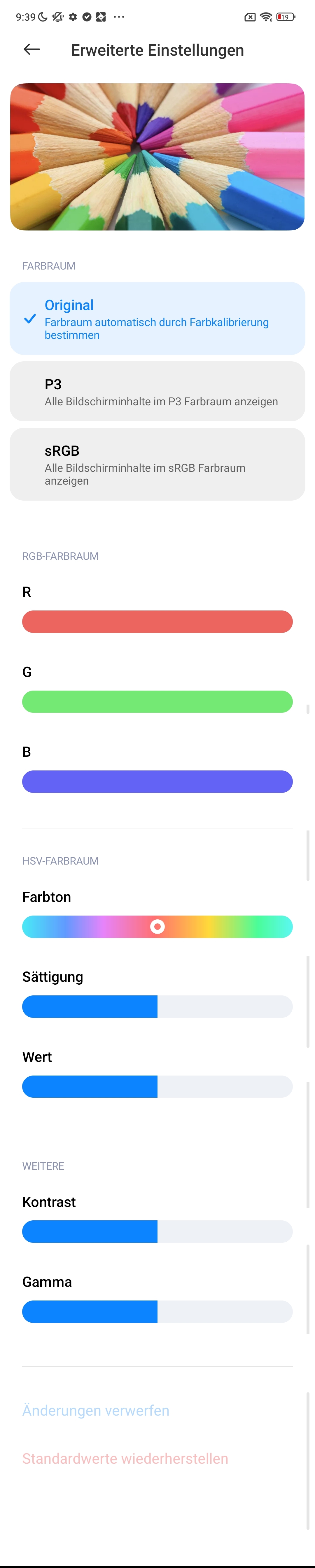 - Farbeinstellungen