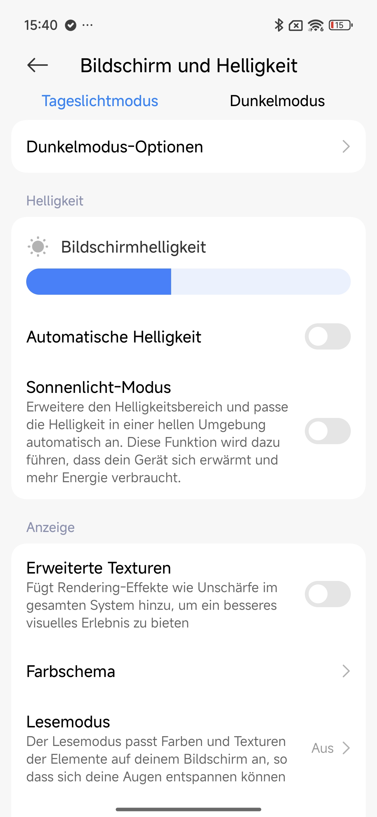 Bei den Software-Einstellungen bleiben kaum Wünsche offen: Die Farbwiedergabe lässt sich individuell anpassen, ein Lese- und Dunkelmodus sind vorhanden und das Always-On-Display könnt ihr vollumfänglich, also auch dauerhaft oder zeitlich begrenzt, nutzen. Lediglich eine Option zum Reduzieren der Auflösung fehlt im Einstellungsmenü.